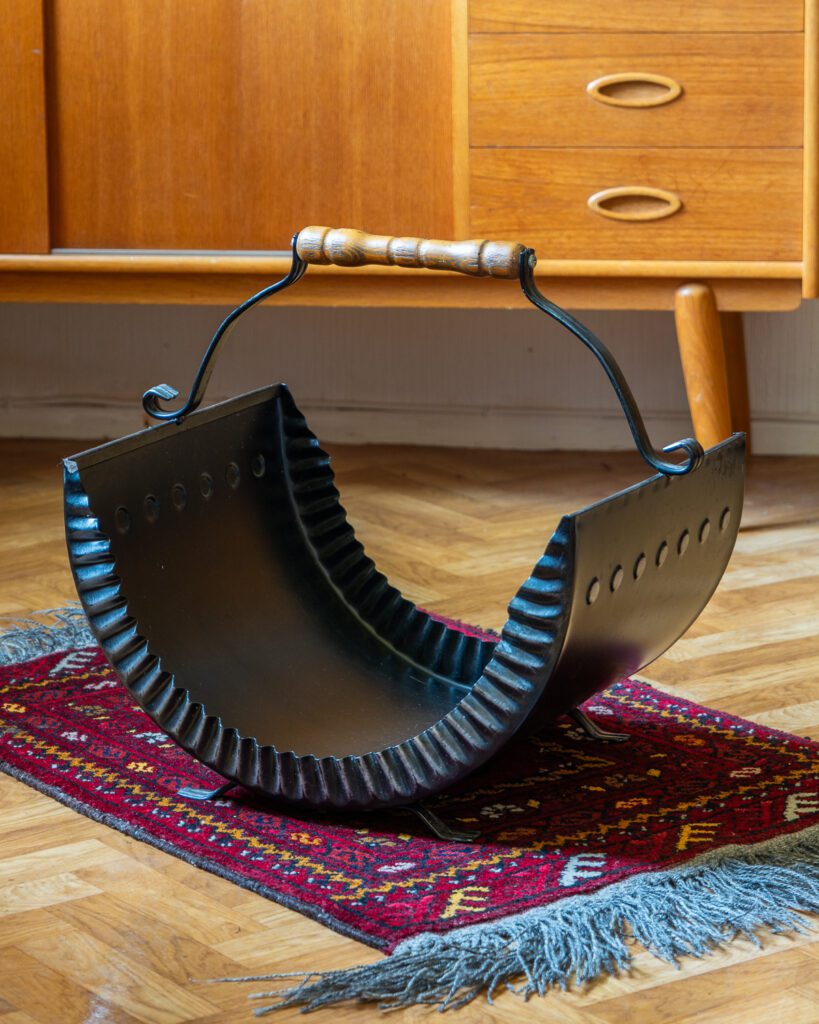 Wooden basket, metal