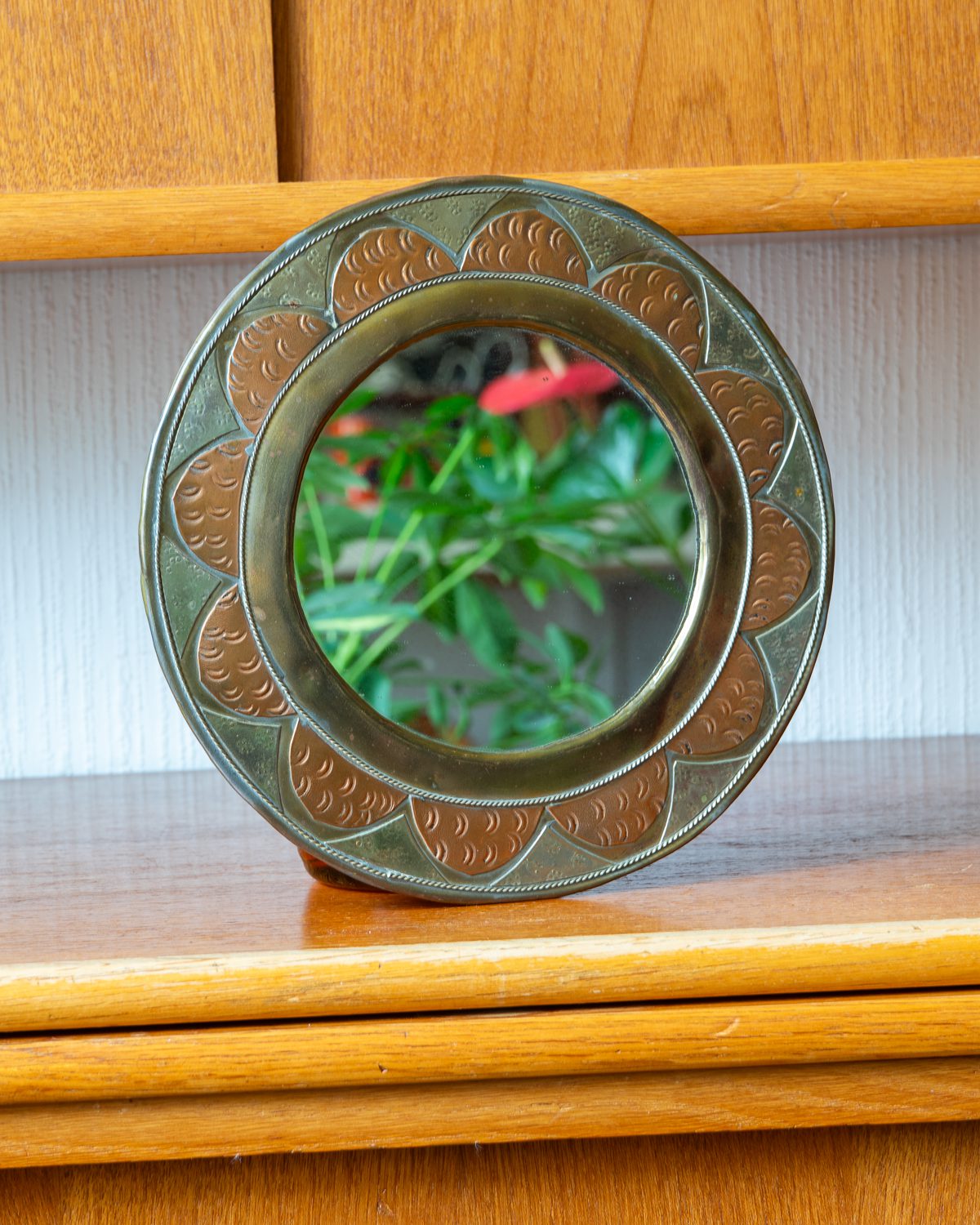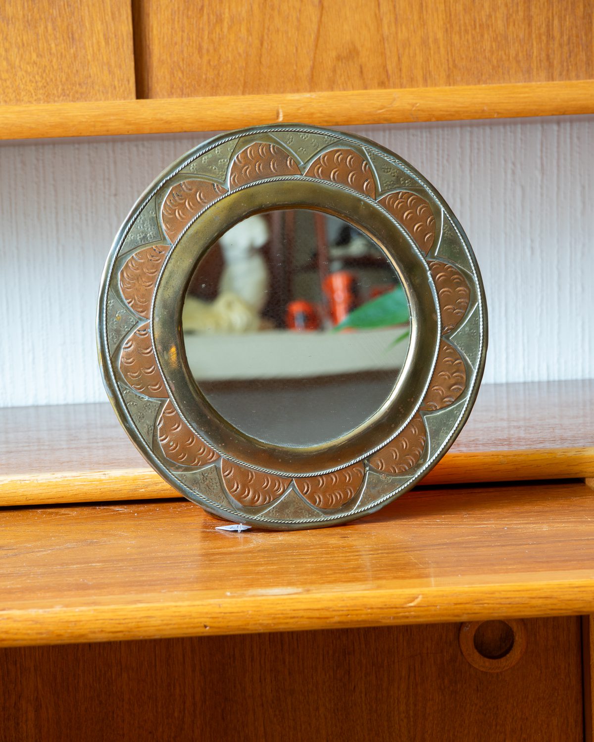 Decorative wall mirror made of various metals from Morocco from the second half of the last century. The mirror is in vintage condition, giving the item a dignified appearance.