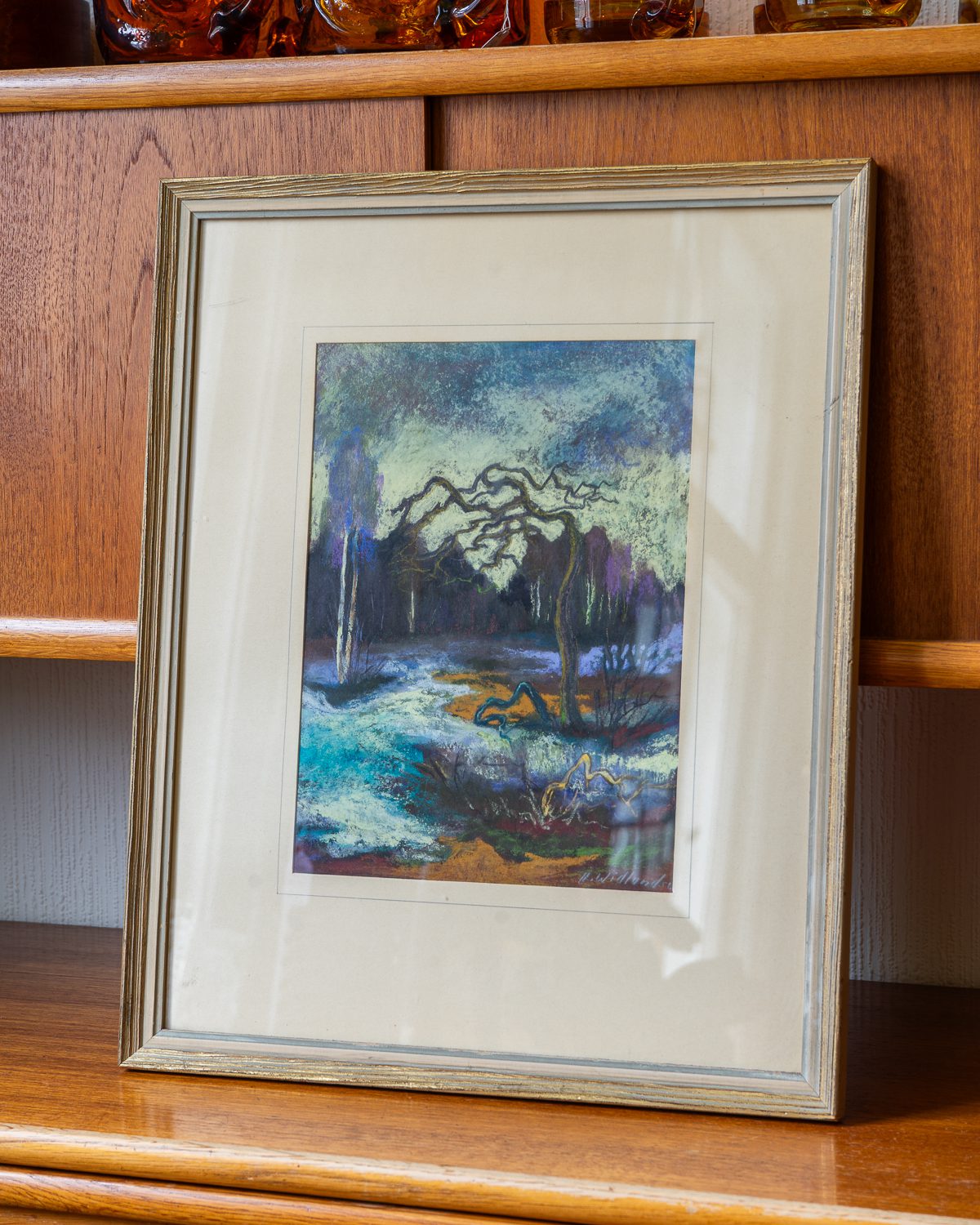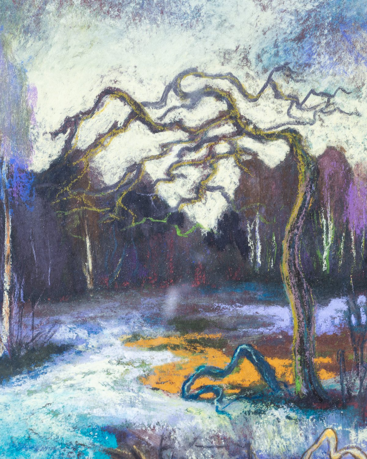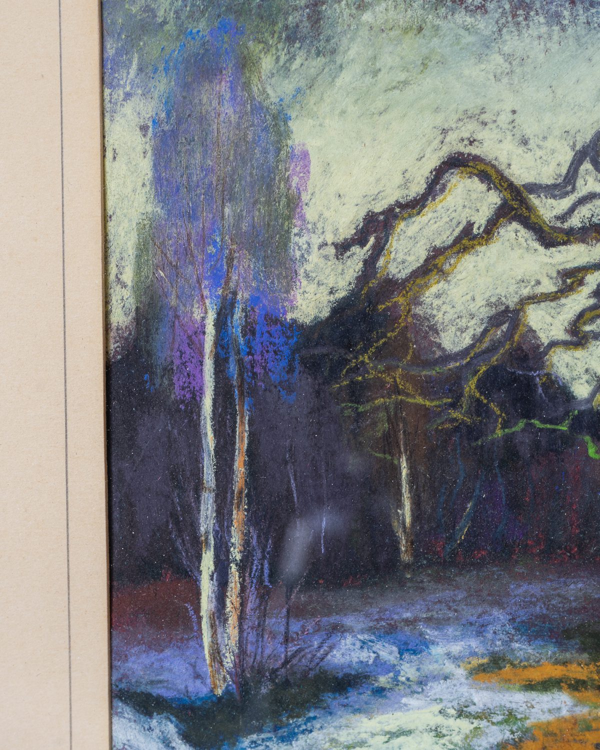 Tundmatu kunstniku poolt loodud atmosfäärne ja signeeritud pastellmaal, millel on kujutatud talvist või varakevadist loodusvaadet. Maal on raamitud kuldse puidust raamiga, millel esineb kerget kulumist.
