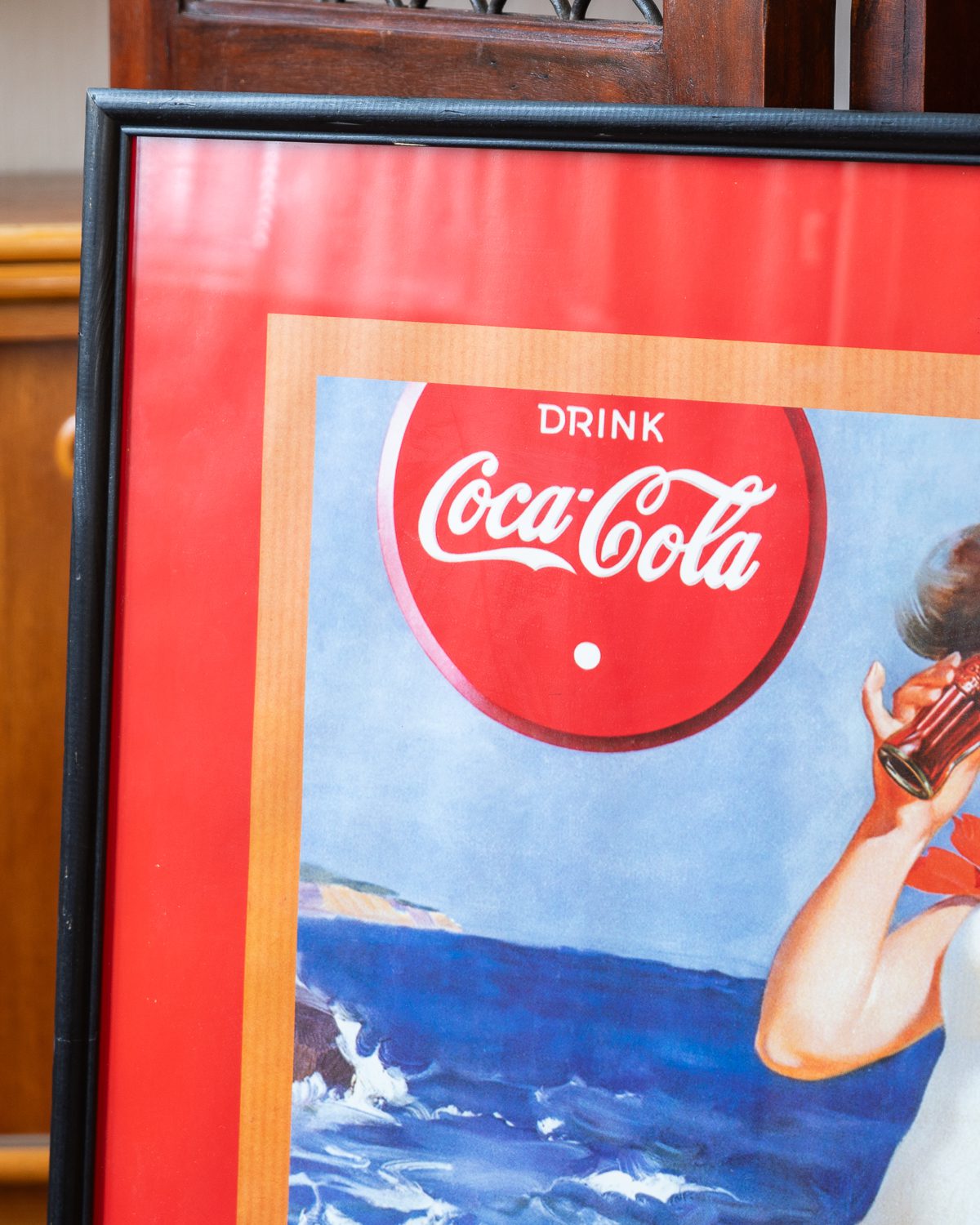 Raamitud retro 1950ndate Ameerika hõnguga Coca-Cola reklaamplakat. Nii raam kui ka pilt on heas korras.