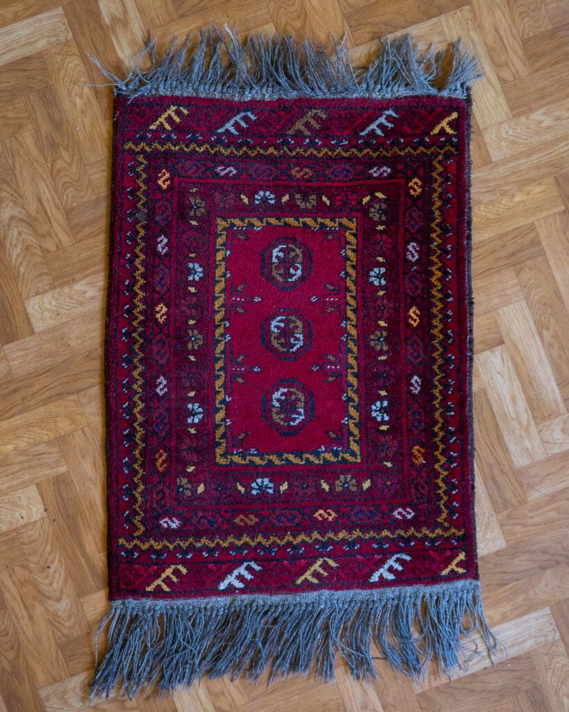 Erksates toonides Kasahhi villane käsitöövaip. Heas vintage seisukorras, esineb loomulikku kulumist. Pesumajas märgpuhastatud.