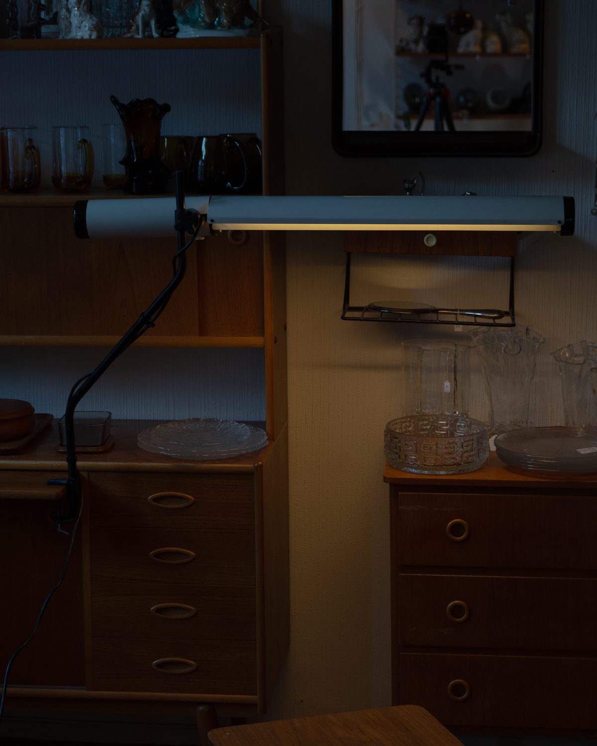 IKEA 1980-1990ndate valikust pärit lauaklambriga arhitektilamp. Lambi kõrgus ning lambivarju suund on reguleeritavad. Lamp on tehtud metallist ja plastikust ning on väheste kasutusjälgedega.