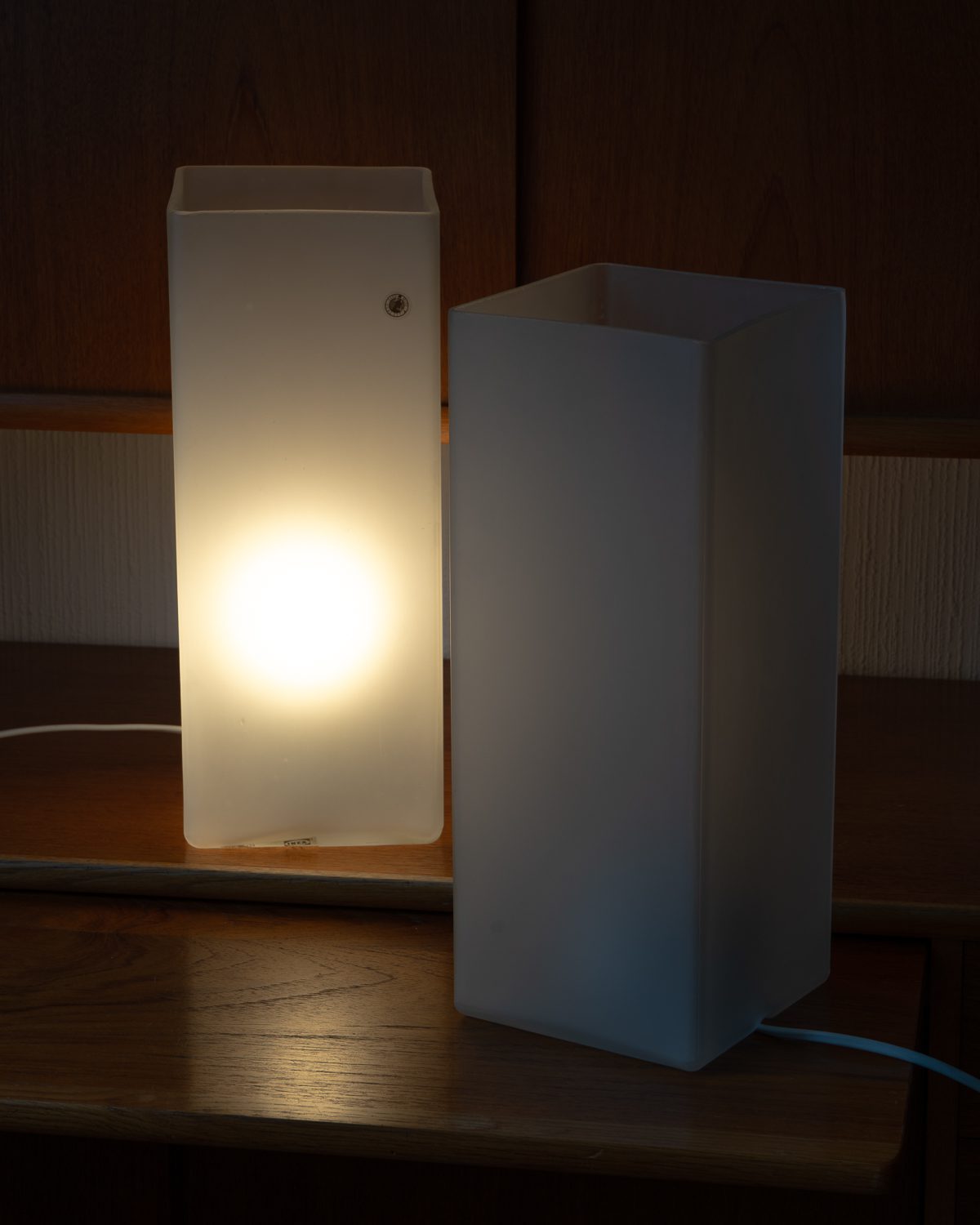A 1990s “GRÖNÖ” series frosted glass mood lamp, manufactured by IKEA. The surface of the lamp has some scratches, otherwise in good condition. There are two lamps in total, the price is for one product. The lamps have a switch and work with an E27 bulb.