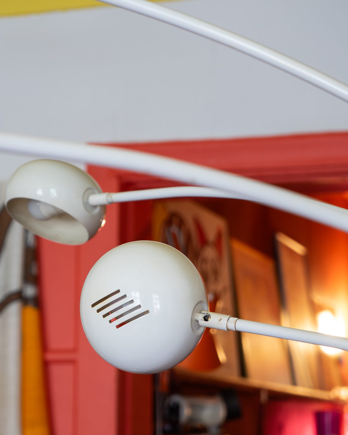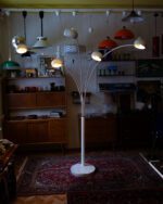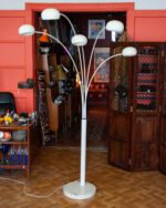 A large, five-domed, striking floor lamp from the 1970s to 1990s. The lamp has five white metal arms and domes and a sturdy marble base. A stylish and timeless eye-catcher that adds character to any interior. In very good vintage condition.