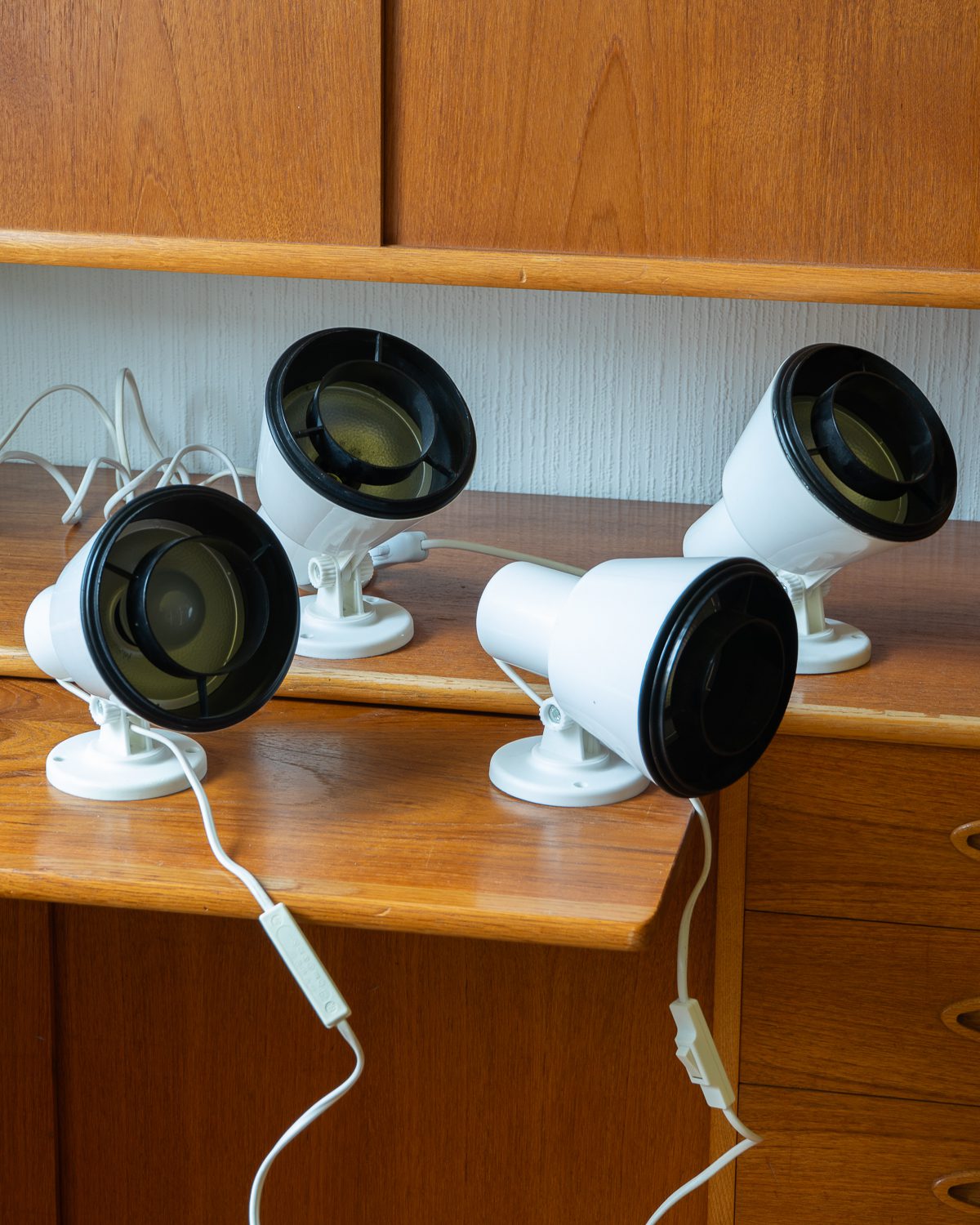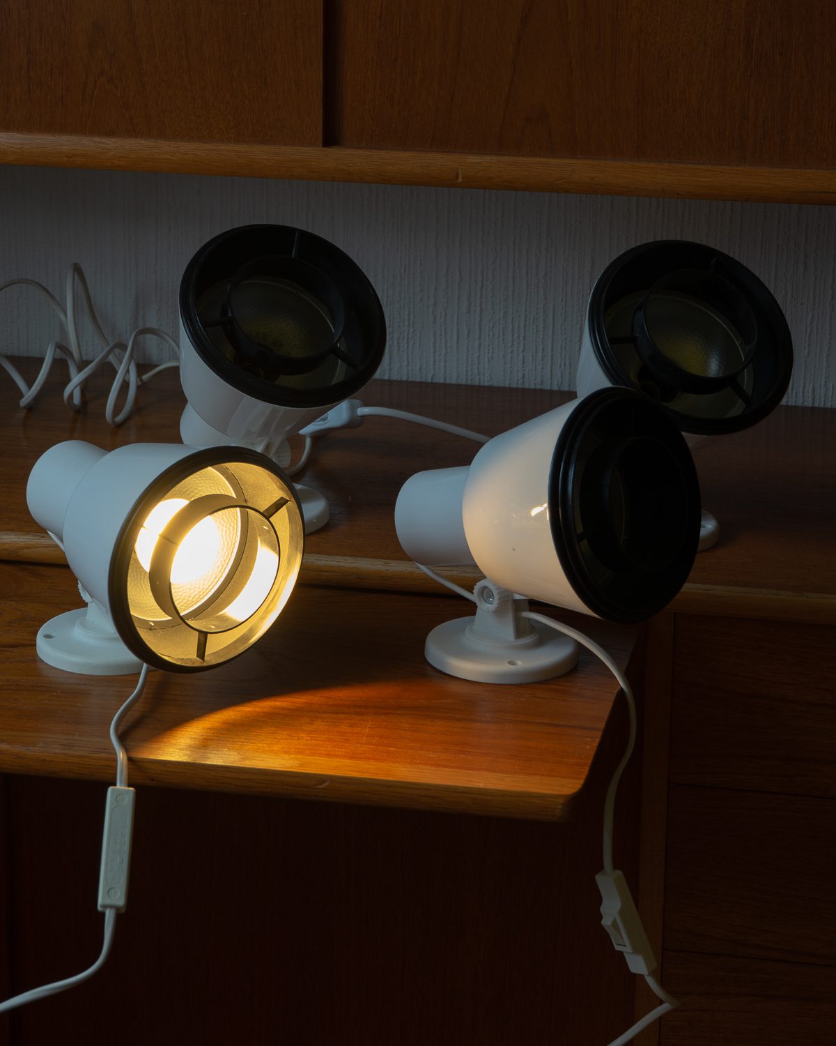 Rootsi tootja Elenco poolt 1970/1980. aastatel toodetud nelja plastikust seinalambi komplekt. Lambide kupli ees on plastikust difuuser, mis jaotab valgust ühtlasemalt ja pehmemalt. Kupleid on võimalik suunata nii üles- kui ka allapoole. Valgustid on väga heas seisukorras.