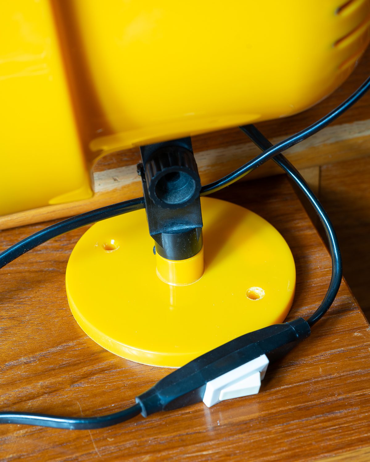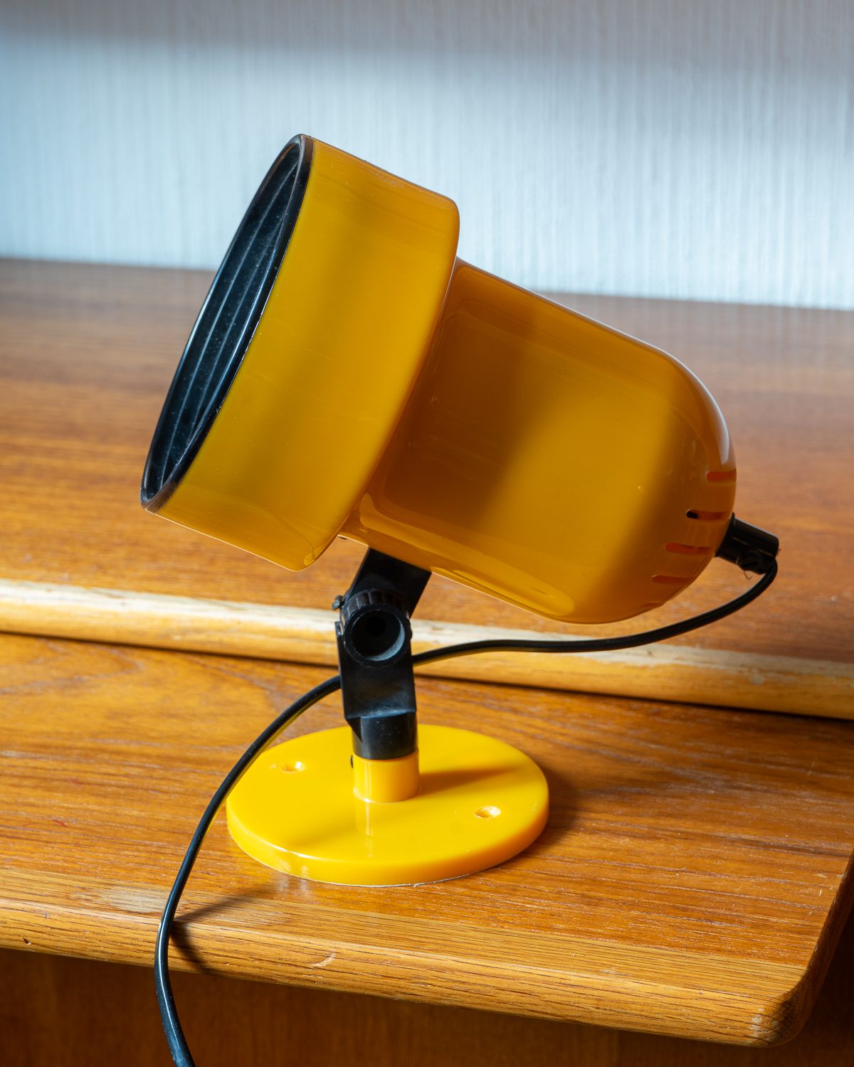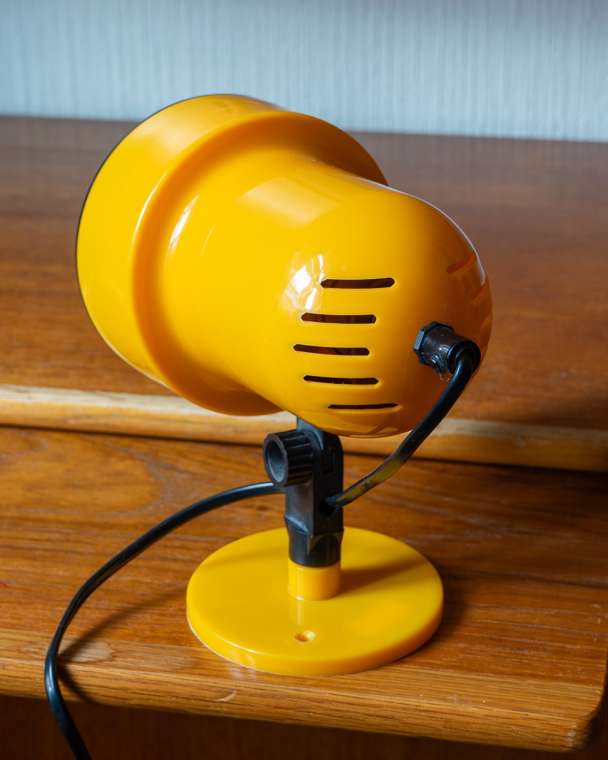 Taani tootja Abo Randers 1970ndatest pärit plastikust valgusti. Lambi kuplit on võimalik suunata nii üles- kui ka allapoole. Valgusti on silmapaistvalt tibukollast värvi ning väga heas korras.