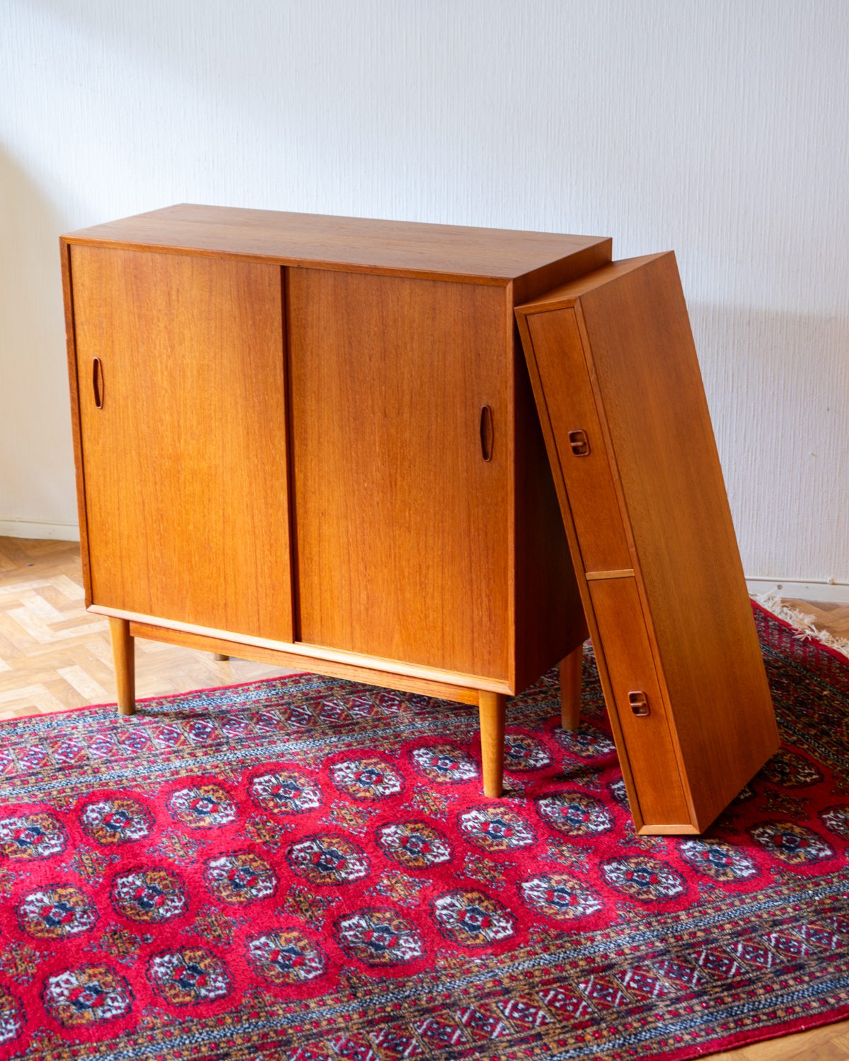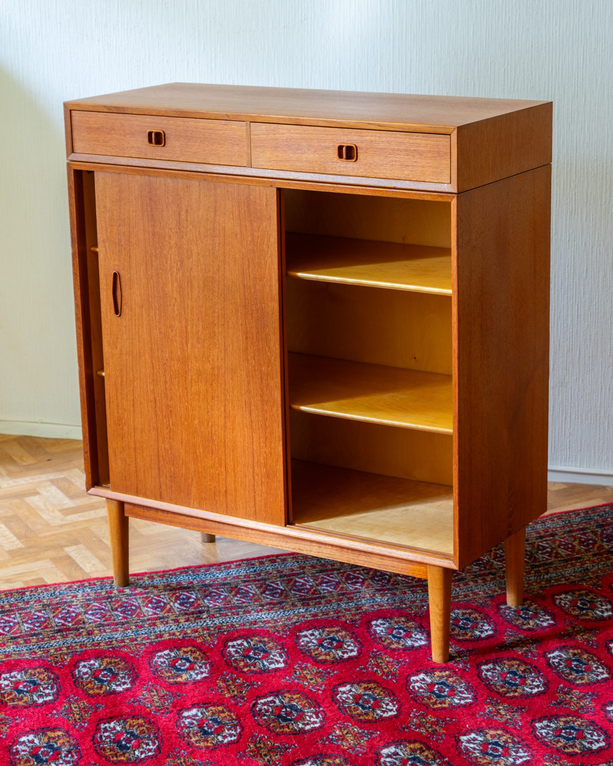 1960ndate Rootsi kõrge tiigipuust kummut disainerilt Nils Jonsson, tootja Hugo Troeds. Ülemine osa käib kummutilt ära ja kahte osa on võimalik kasutada eraldi. Kapp on restaureeritud ja heas korras.