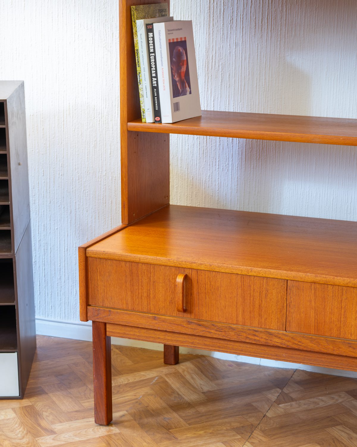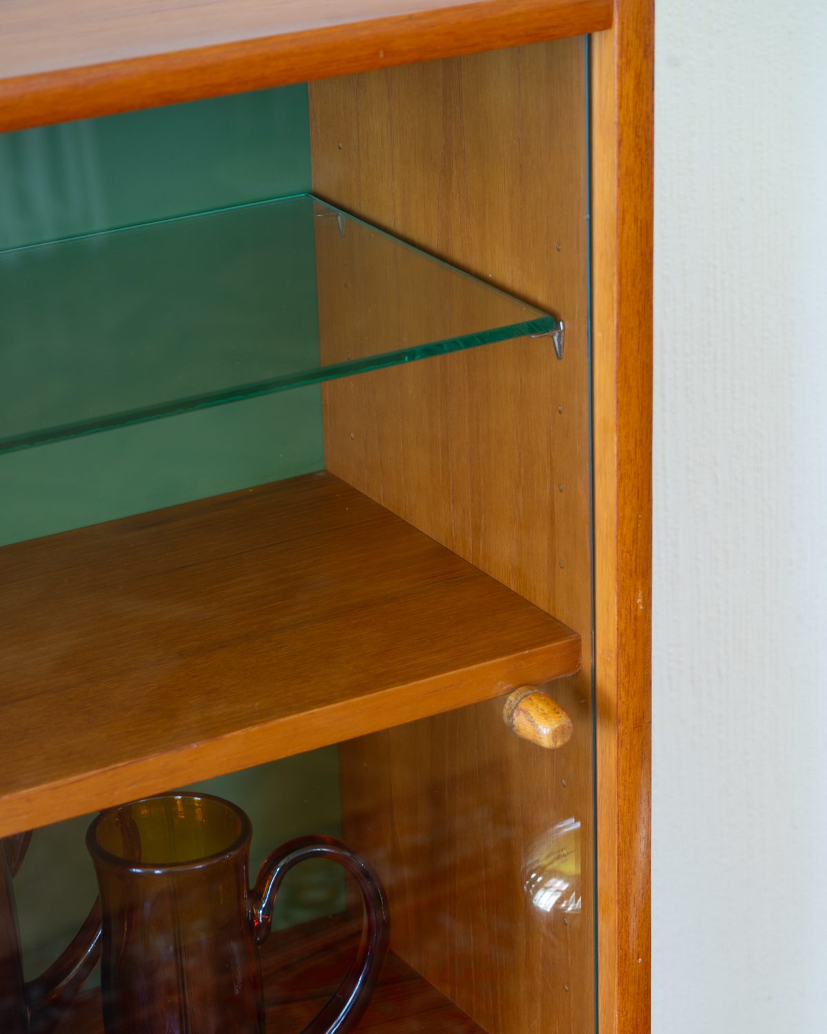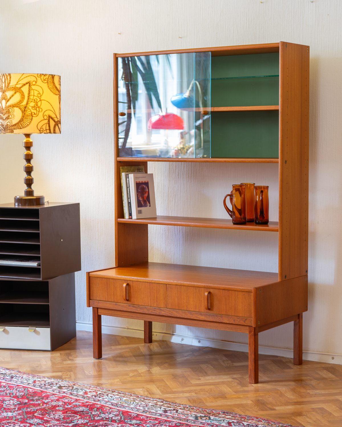 Tiigipuu spooniga riiulkapp tootjalt Bodafors, Rootsi 1960ndad. Heas korras. Kõrgus 140, sügavus 45, laius 90 cm