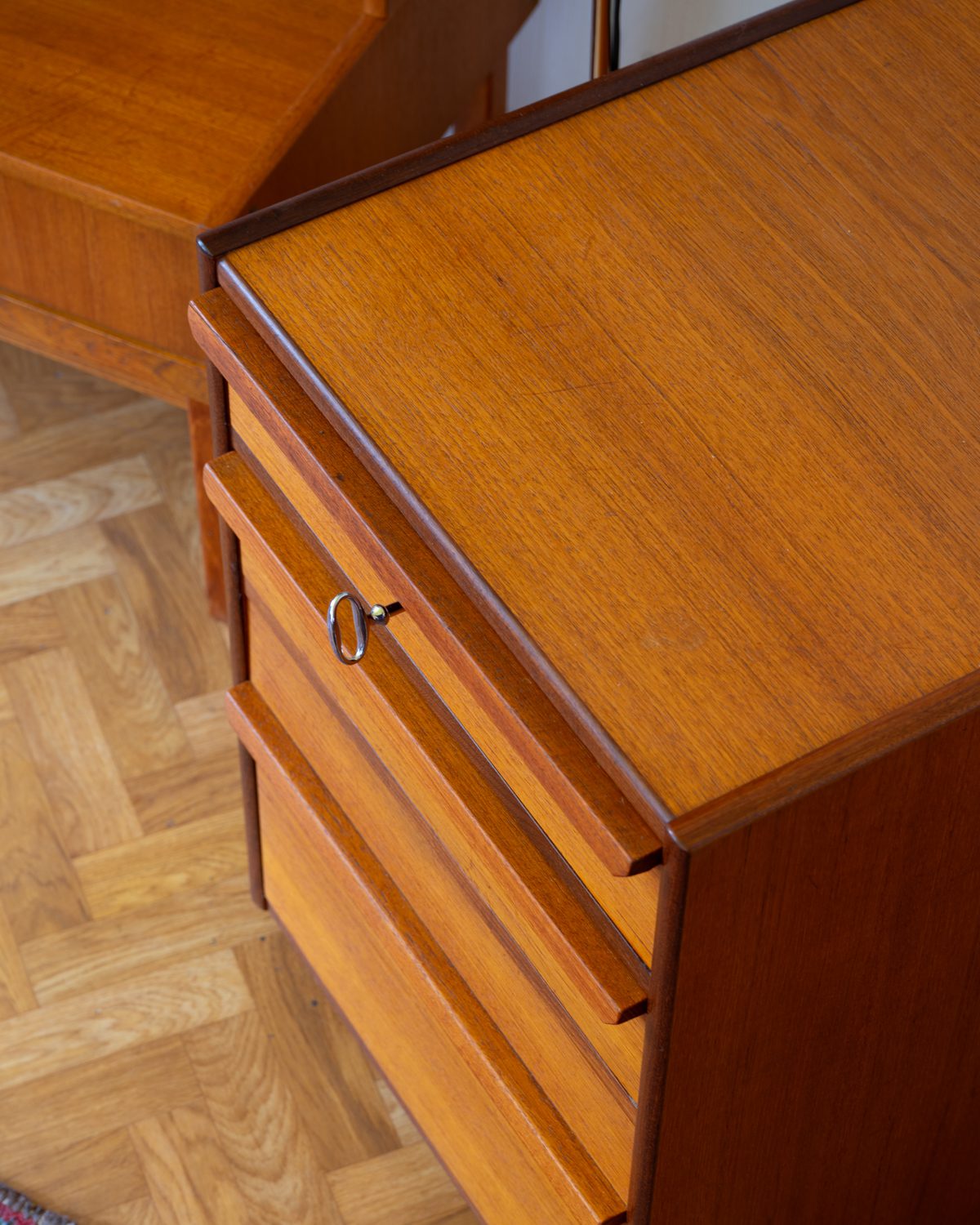 Tiigipuu spooniga sahtliboks 1960ndatest. Sahtliboksil on tagaküljel rattad lihtsamaks liigutamiseks. Heas korras, kaasa võti.