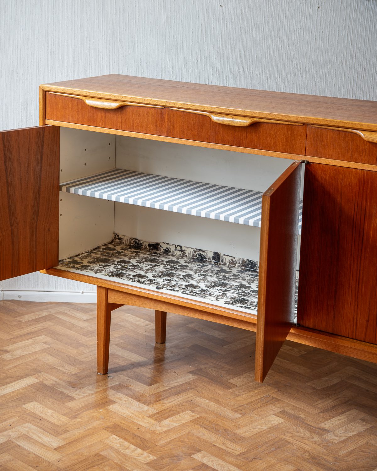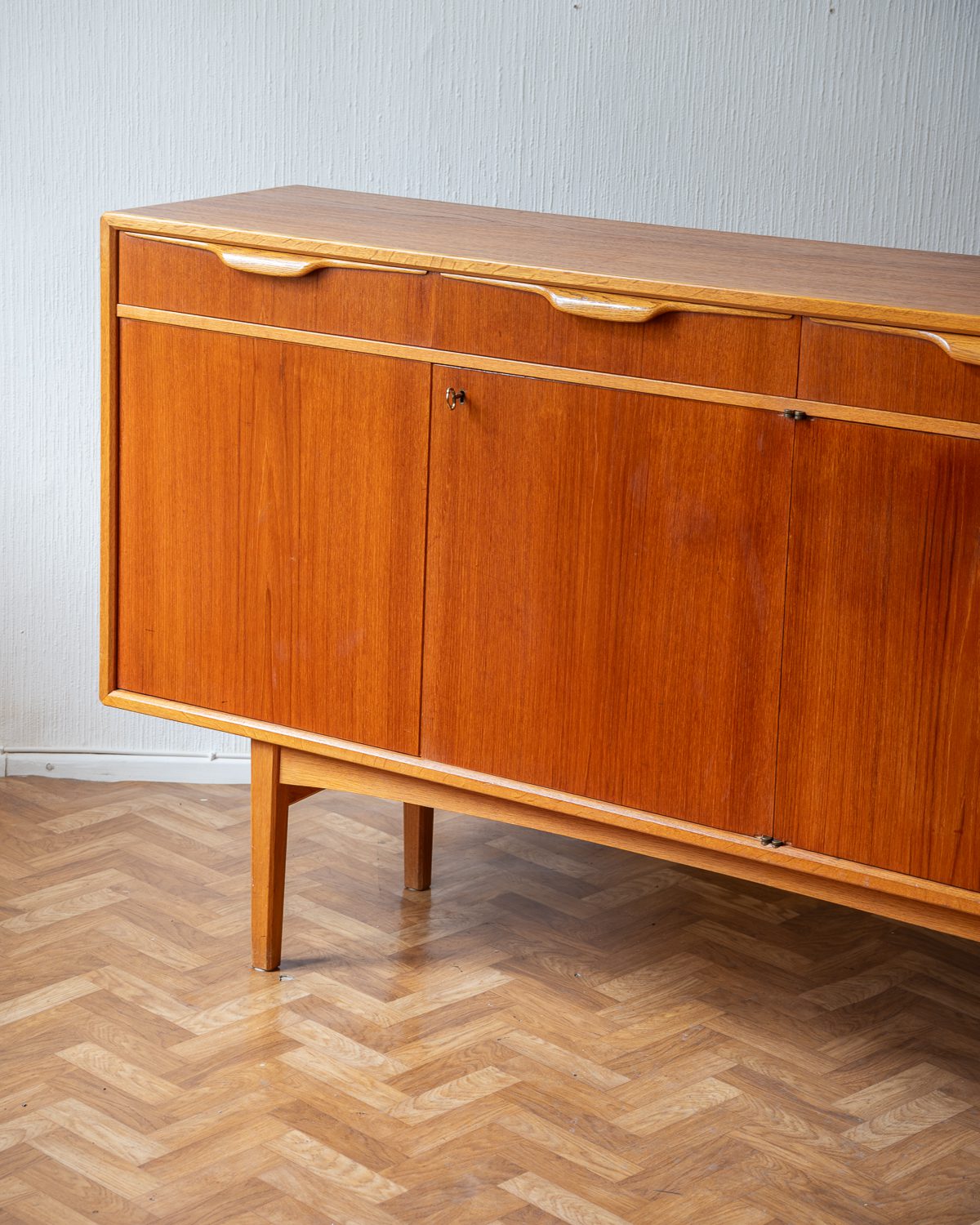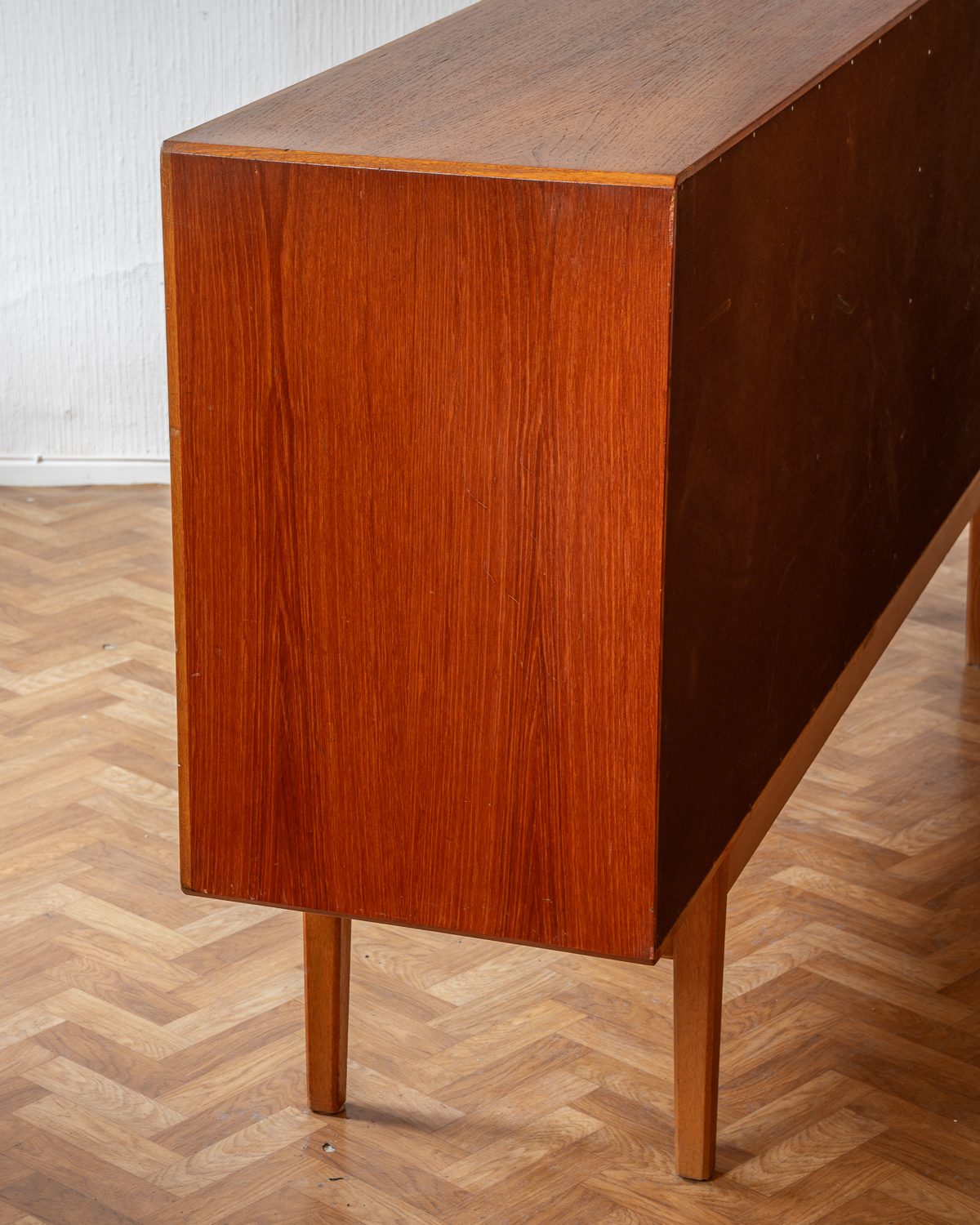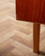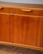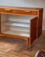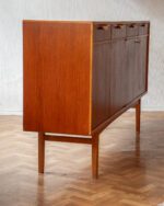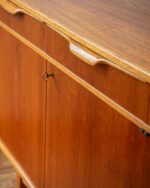 1960ndate Rootsi sideboard, disainis Bertil Fridhagen Bodaforsile. Heledamast puidust valmistatud käepidemed ja ääreliistud tekitavad ilusa kontrasti. Restaureerimata.