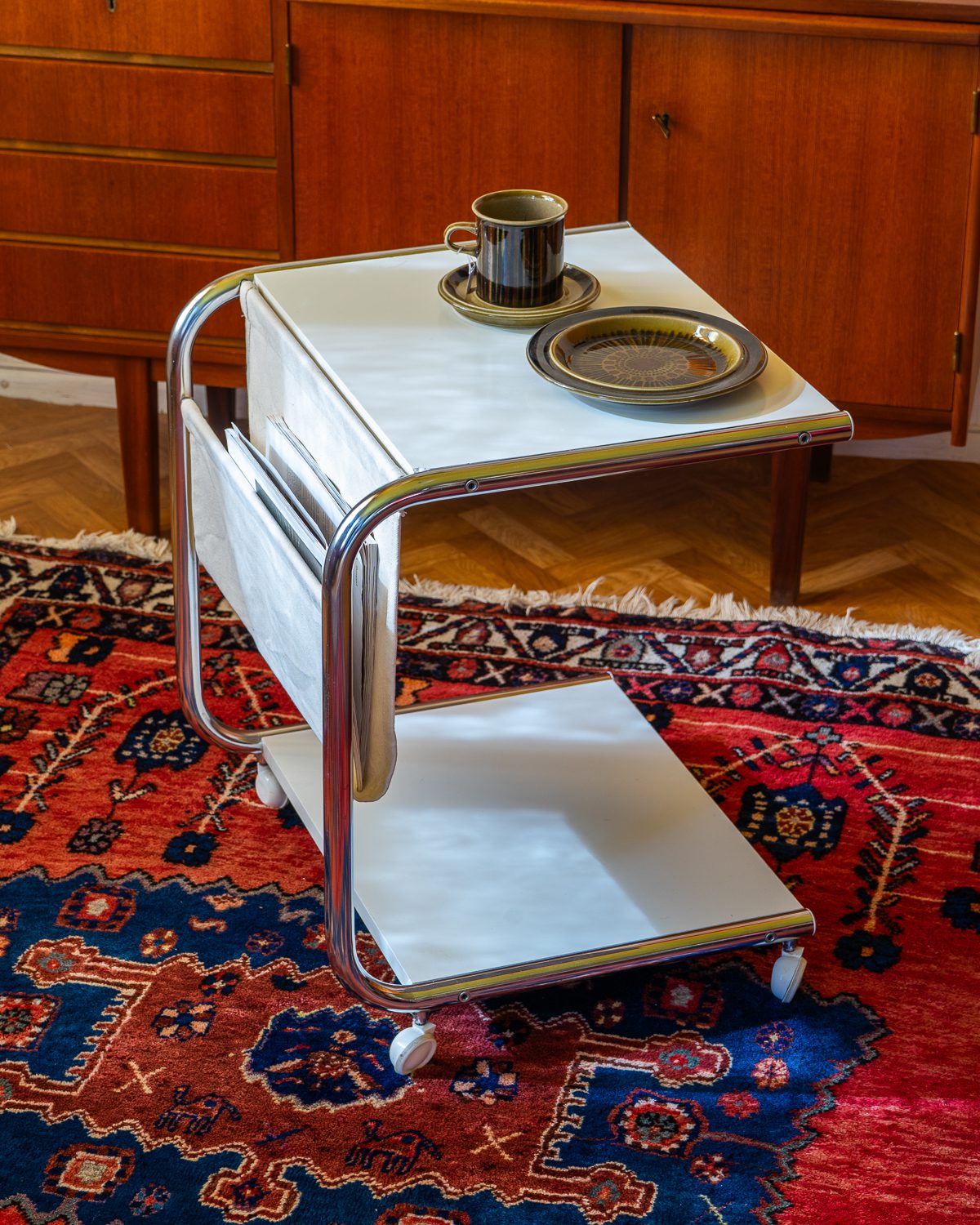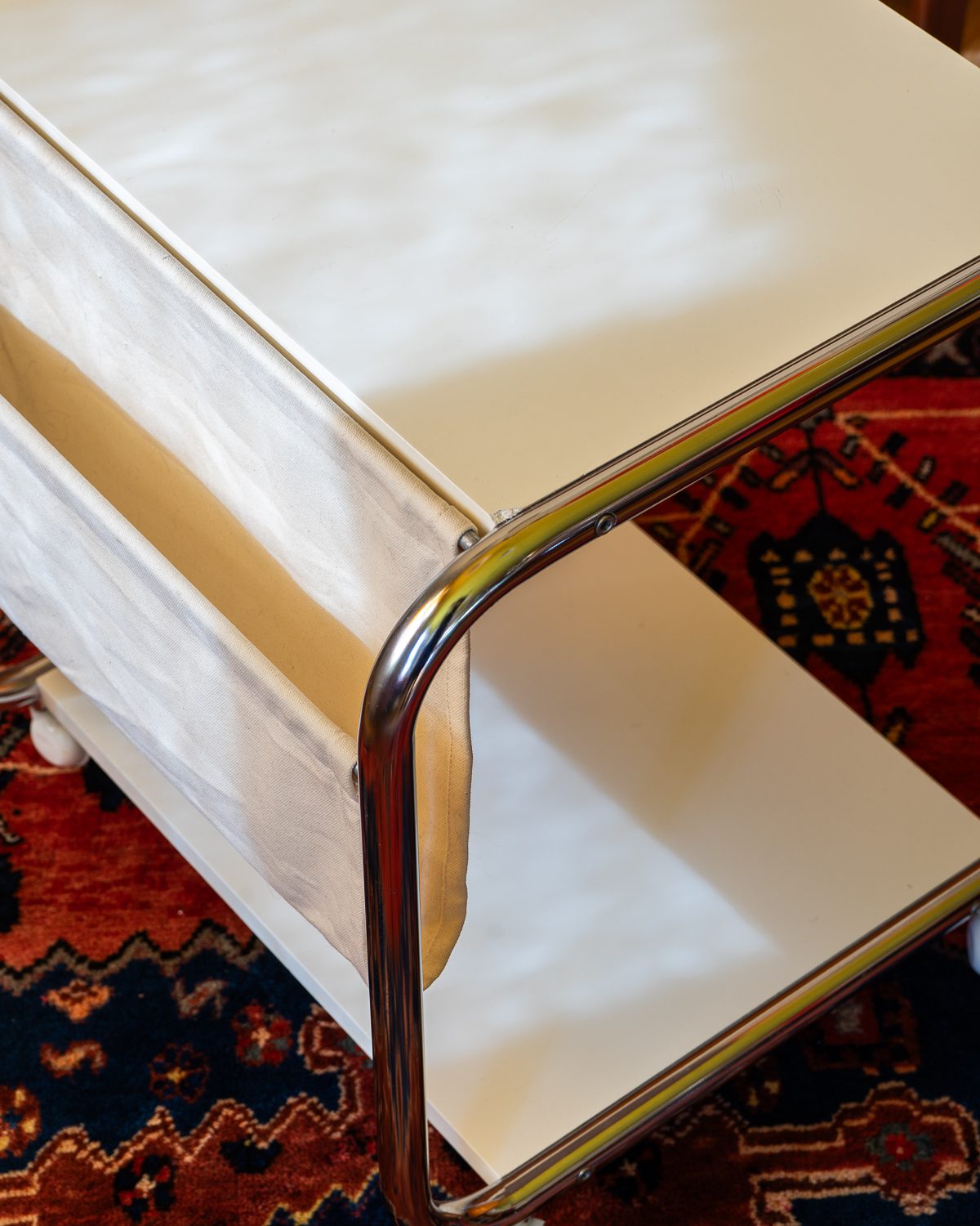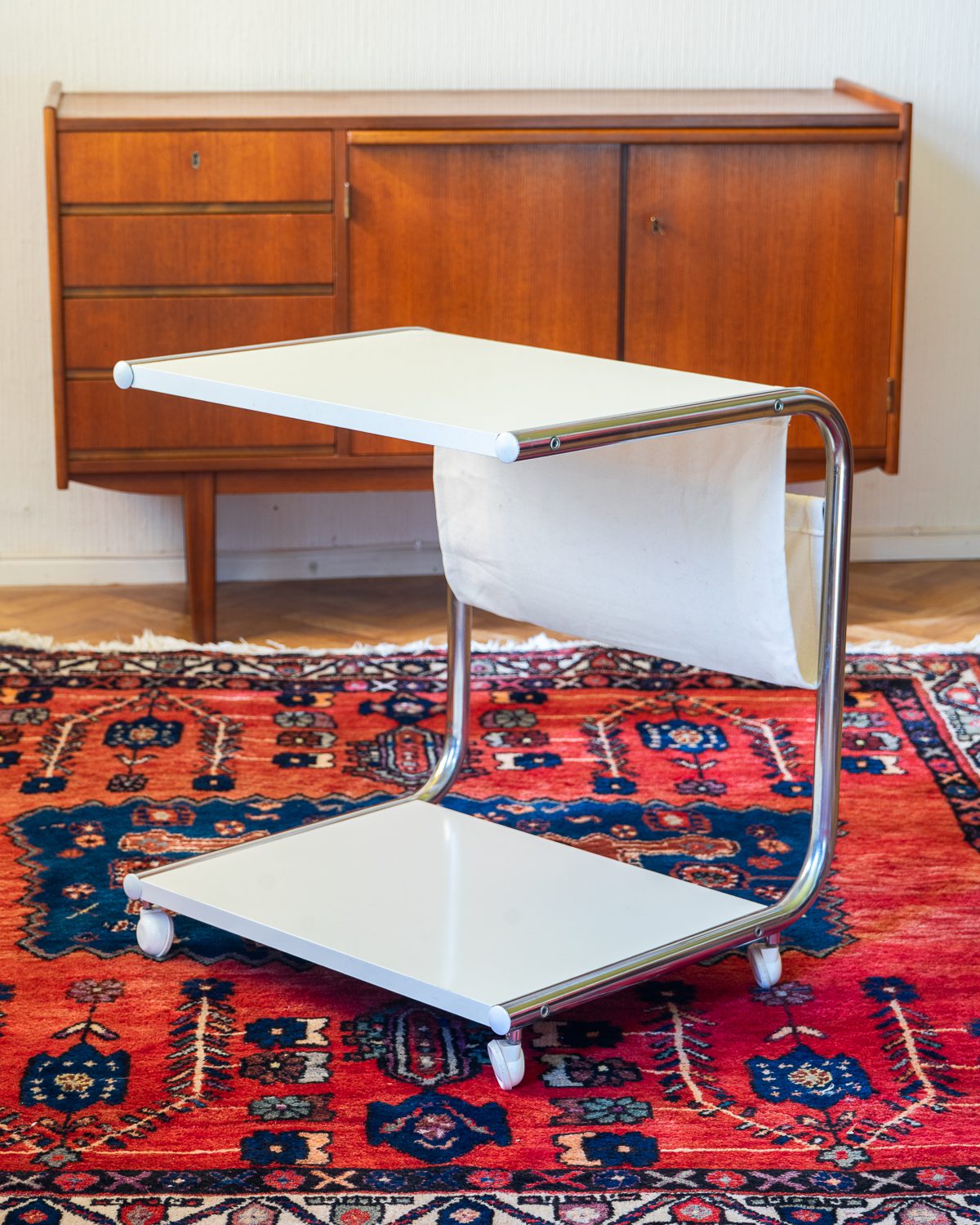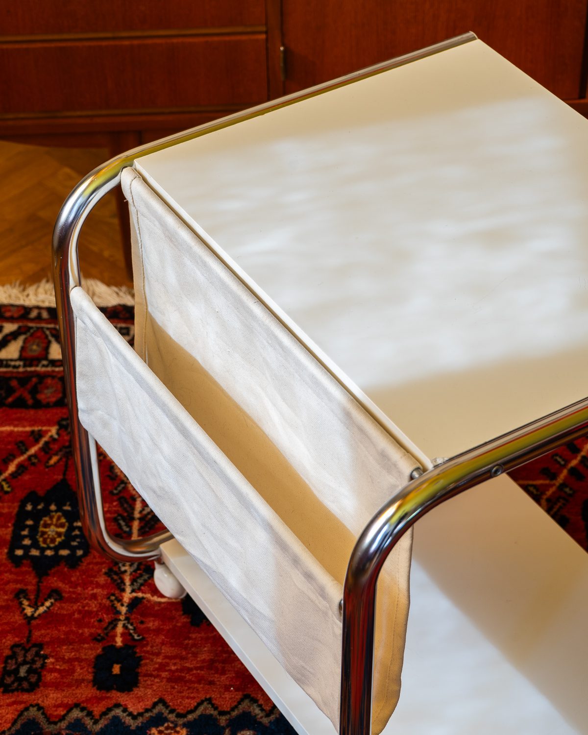 Thomas Jelineki poolt 1975. aastal IKEA-le loodud abilaud “STRAJK”. Bauhausi stiilist inspireeritud disain on minimalistlik ja funktsionaalne, pakkudes mitmekülgset kasutust. Laual on kroomitud terastorudest raam, kangast ajakirjahoidja ja lamineeritud riiluplaadid. Heas vintage seisukorras.