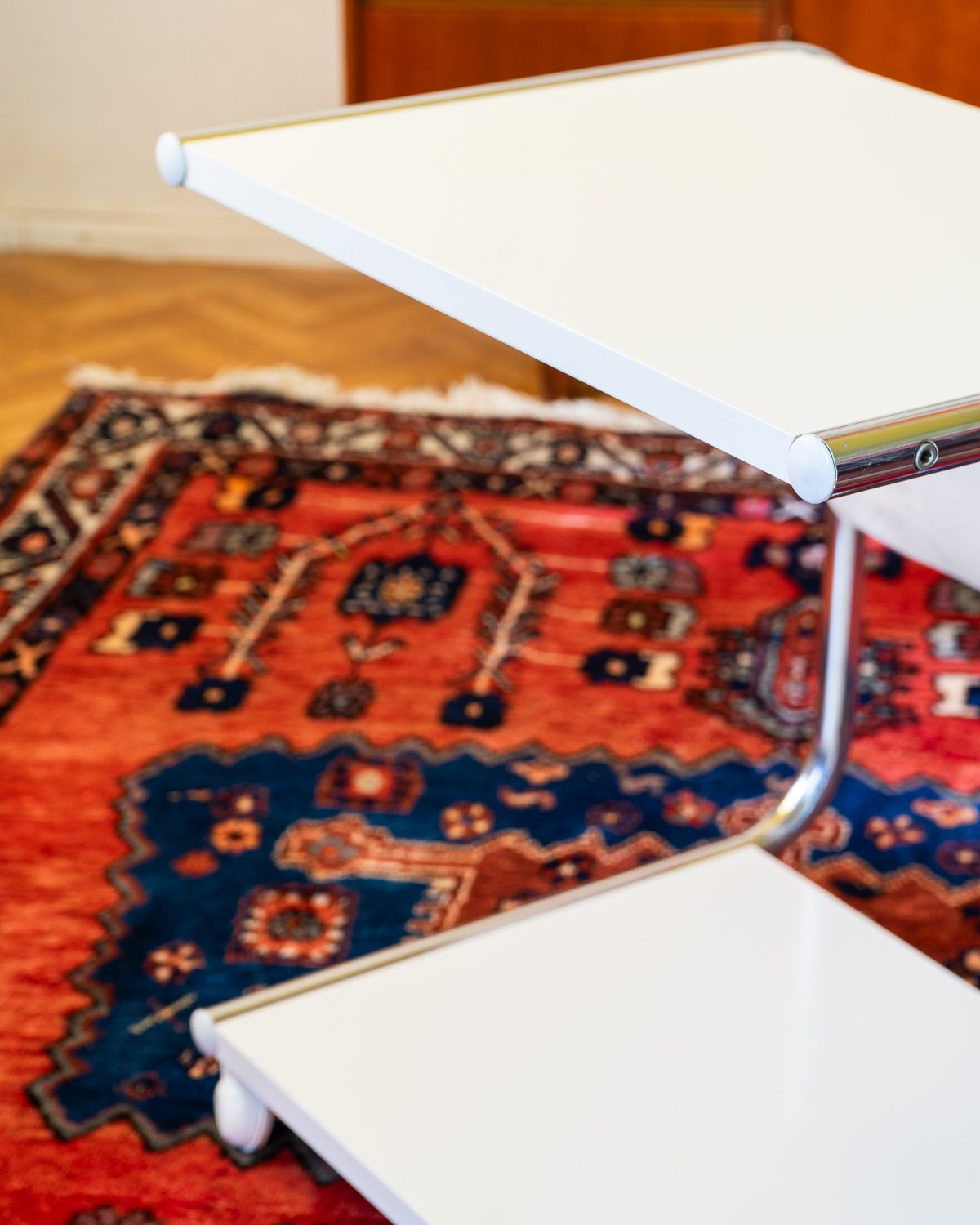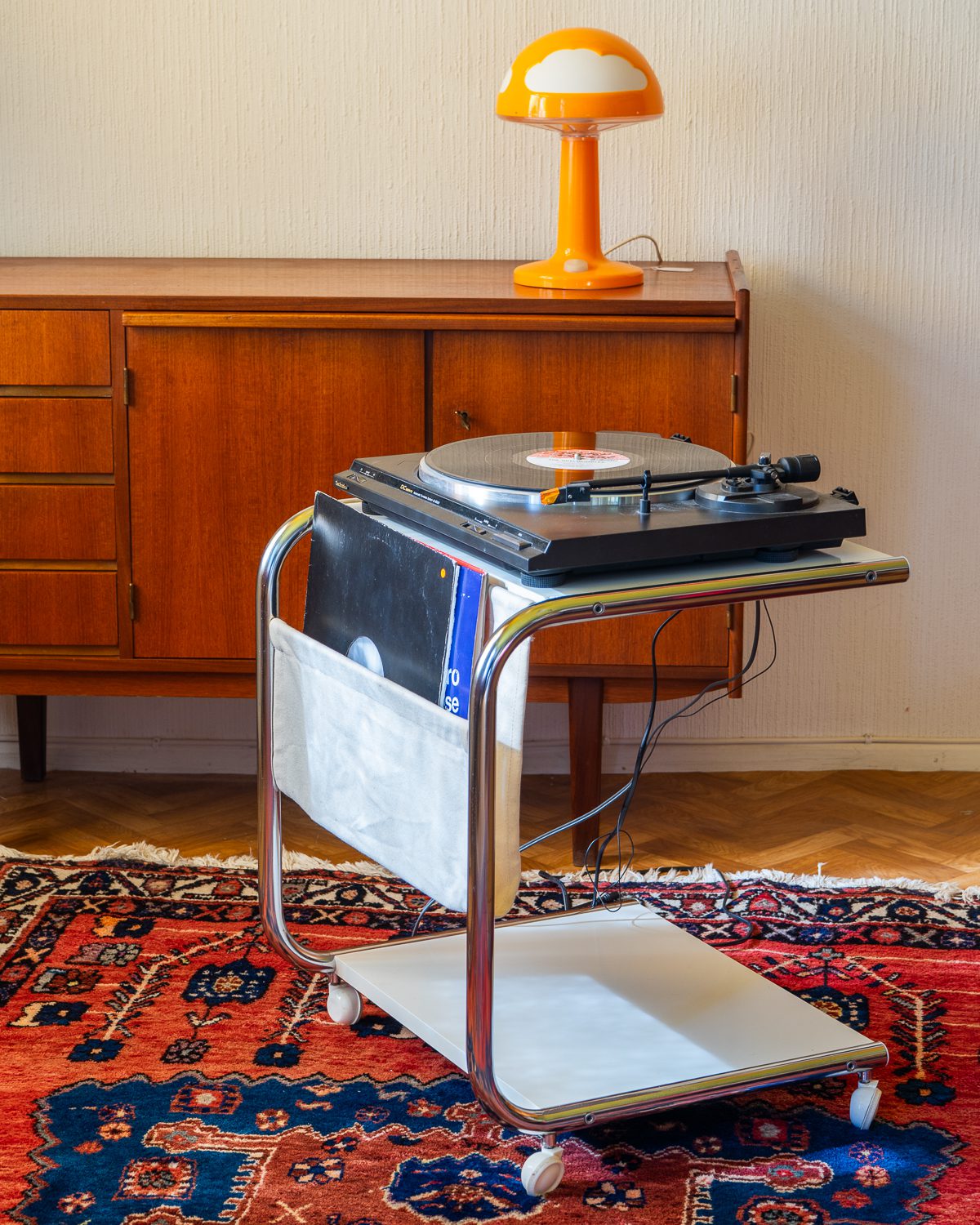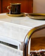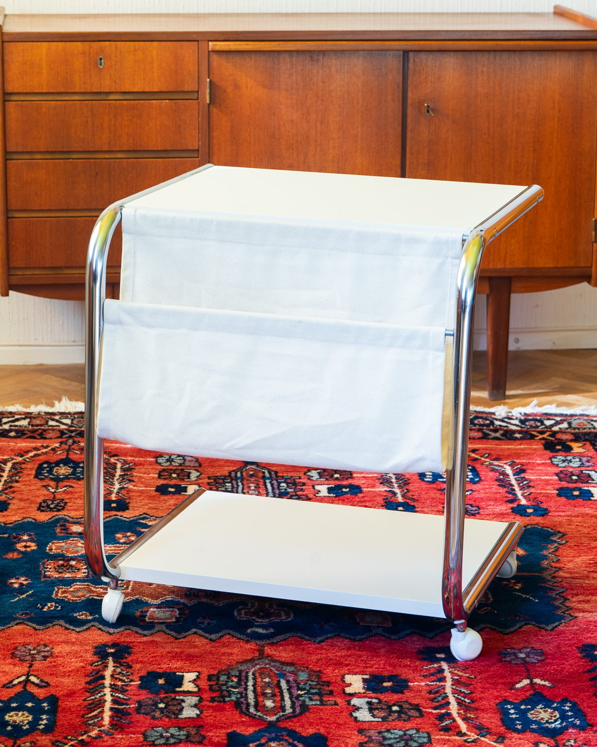 Thomas Jelineki poolt 1975. aastal IKEA-le loodud abilaud “STRAJK”. Bauhausi stiilist inspireeritud disain on minimalistlik ja funktsionaalne, pakkudes mitmekülgset kasutust. Laual on kroomitud terastorudest raam, kangast ajakirjahoidja ja lamineeritud riiluplaadid. Heas vintage seisukorras.