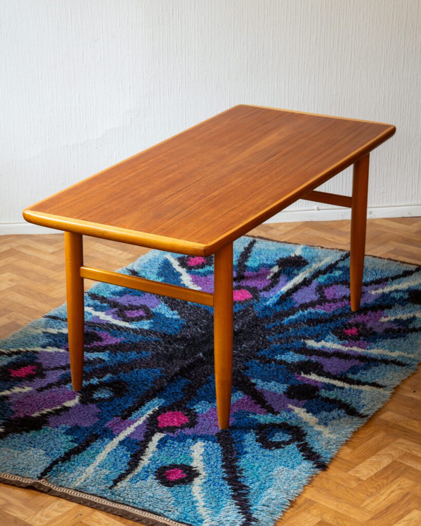 Diivanilaud Rootsi tootjalt Alberts. Keskelt kaetud tiigipuu spooniga, ääred ja jalad täispuidust. Jalgade otstes messingust detailid. Pealisplaat restaureeritud ja heas korras kuid leidub ka vanusele vastavat kulumist.
