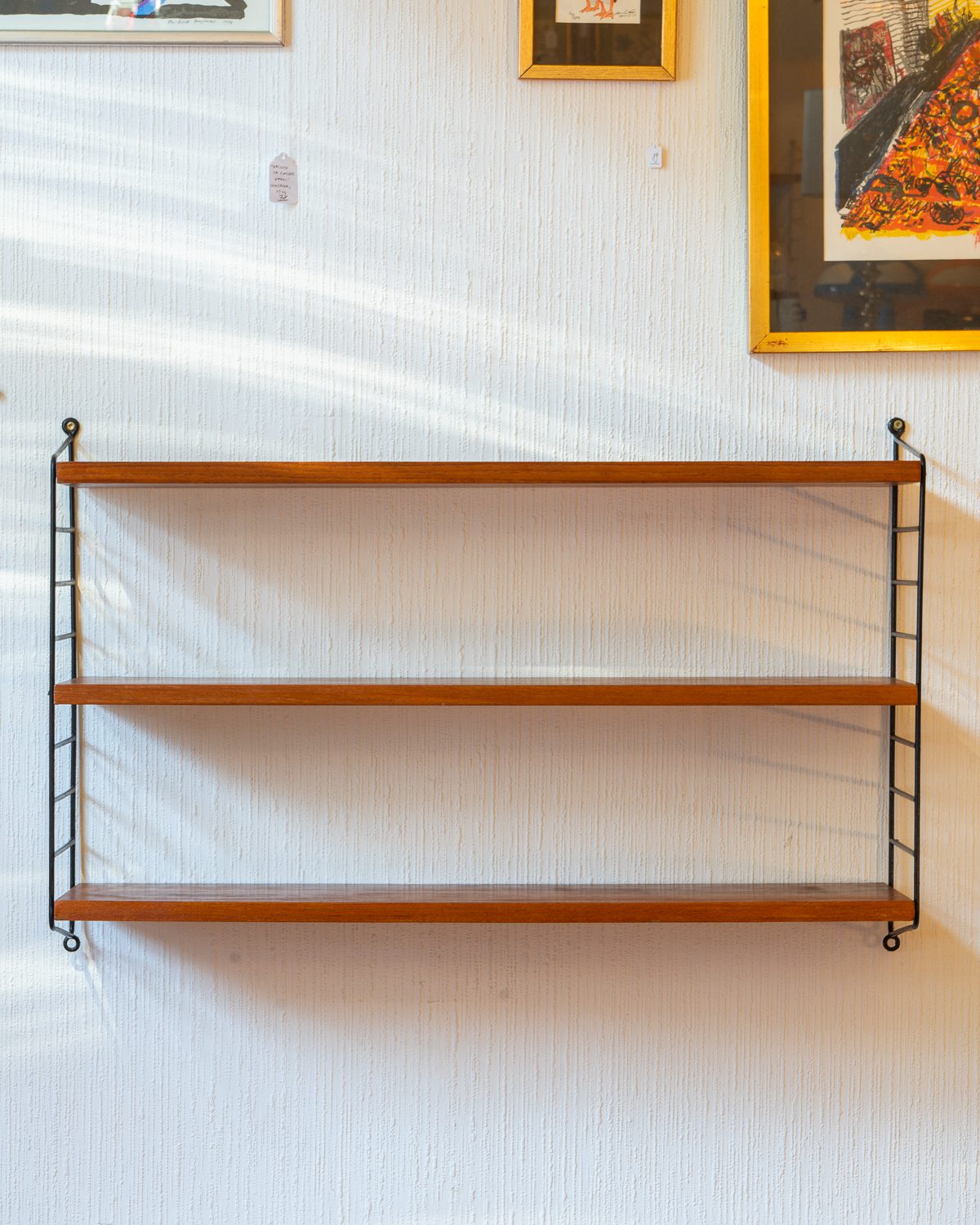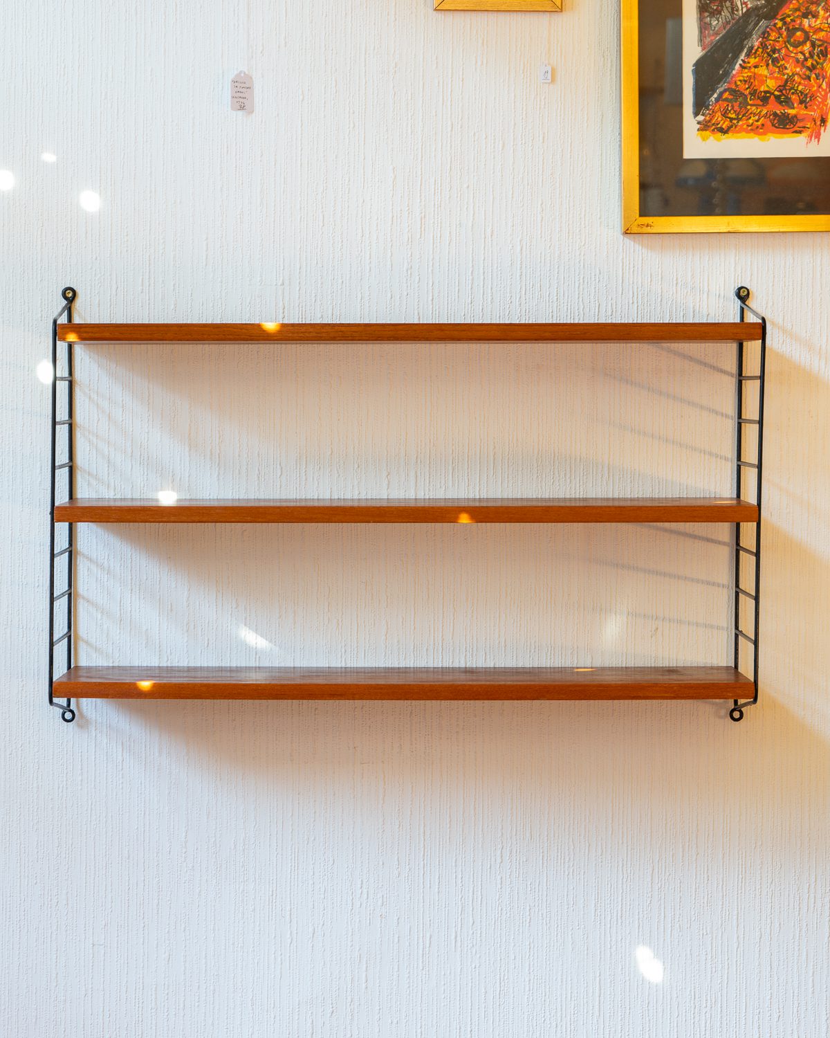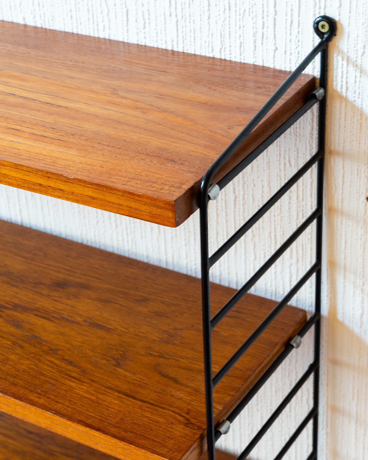 Nisse ja Kajsa Strinningu poolt disainitud vintage “Stringhylla” riiul, valmistatud ja disainitud 1950ndatel Rootsis. Riiulil on kolm täispuidust riiuliplaati, mille kõrgused on reguleeritavad. Riiuliplaadid on restaureeritud ja väga heas korras.
