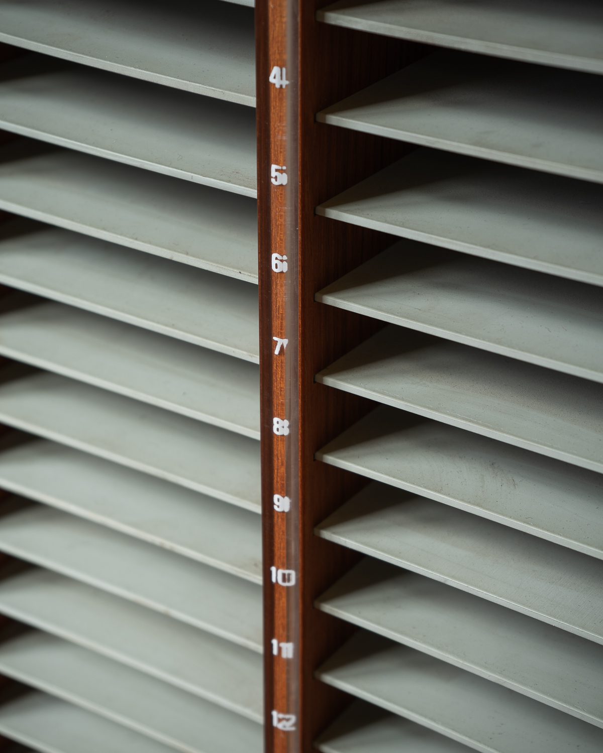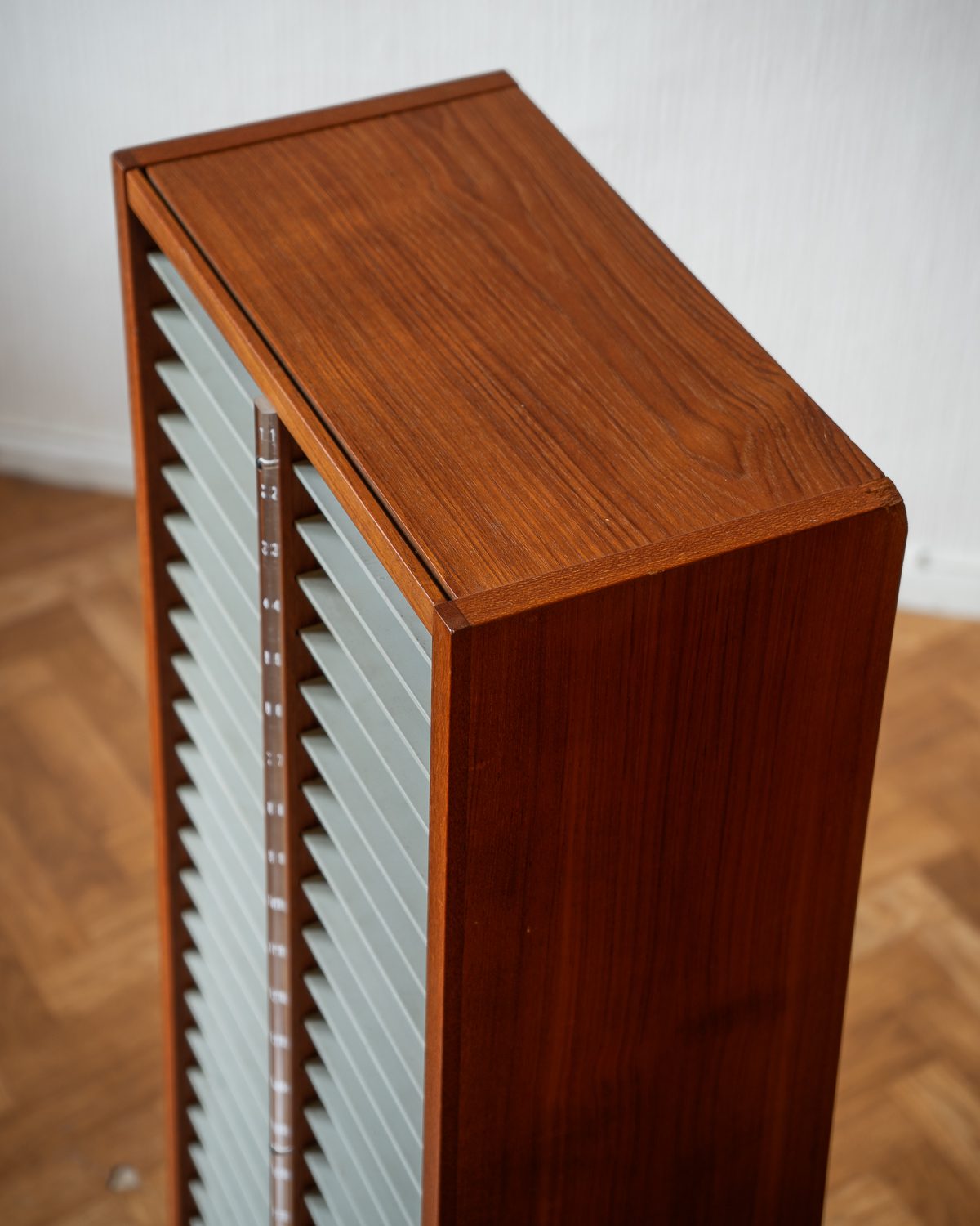 Tiigipuu spooni ja metallist riiuliplaatidega seinariiul, tõenäoliselt 1970ndatest. Loodud lintmaki kassettide hoiustamiseks, kuid mahutab hästi ka CD plaate. Üks nurk veidi kahjustunud (vt. pilte), muidu heas korras.