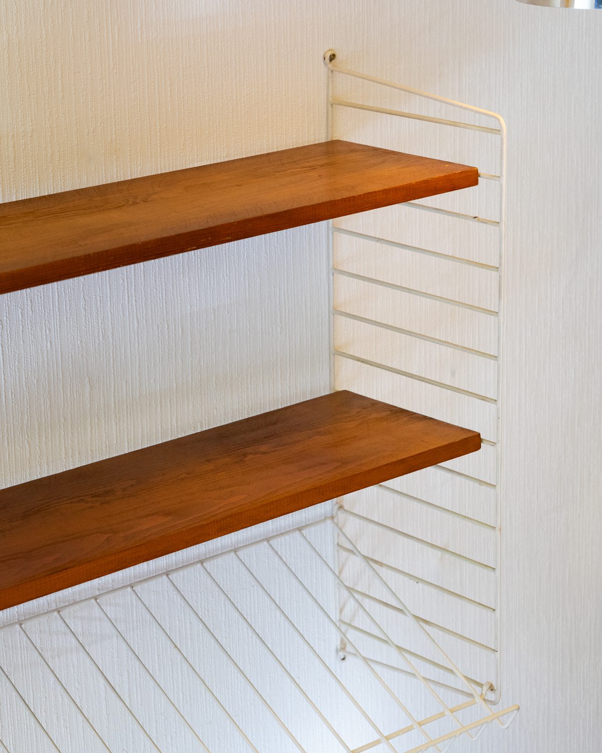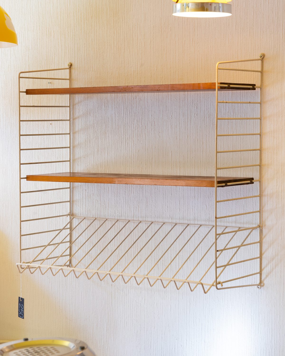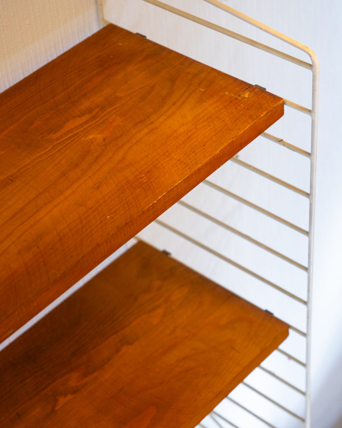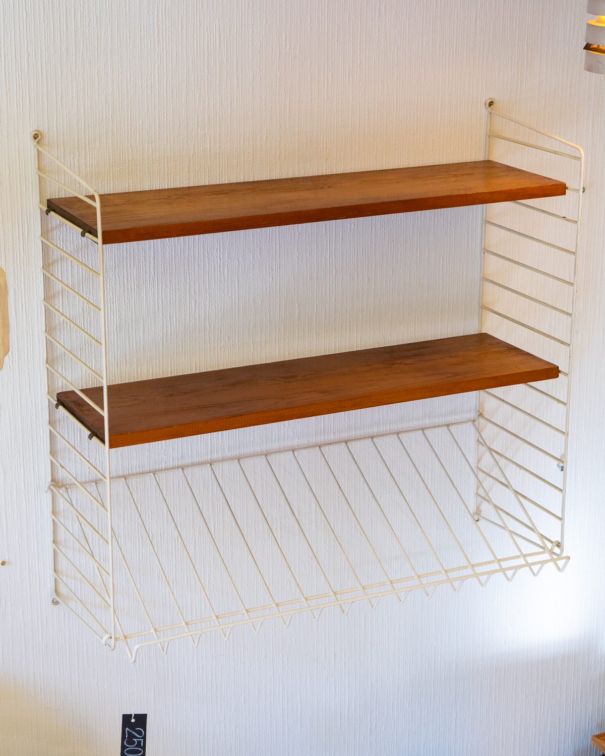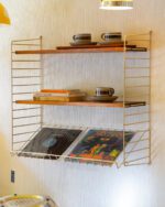 Vintage String riiul, disaininud Nisse ja Kajsa Strinning. Kaks täispuidust riiuliplaati ja ajakirjahoidja/vinüüli string riiul, kõrgused on reguleeritavad.
