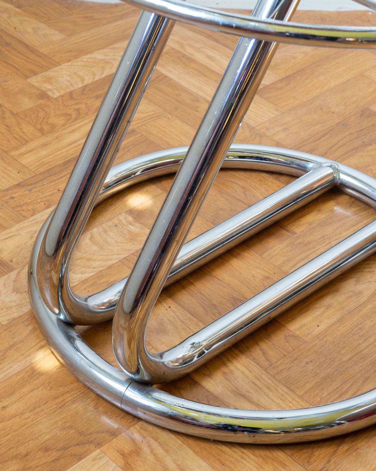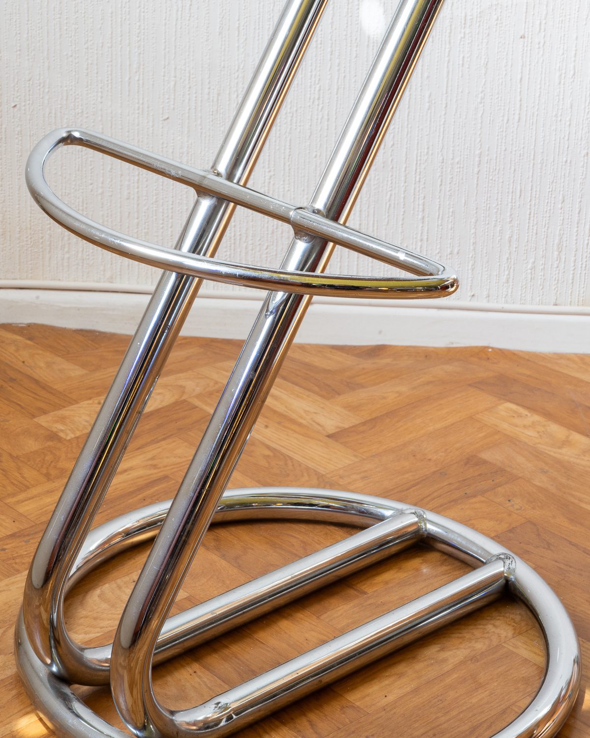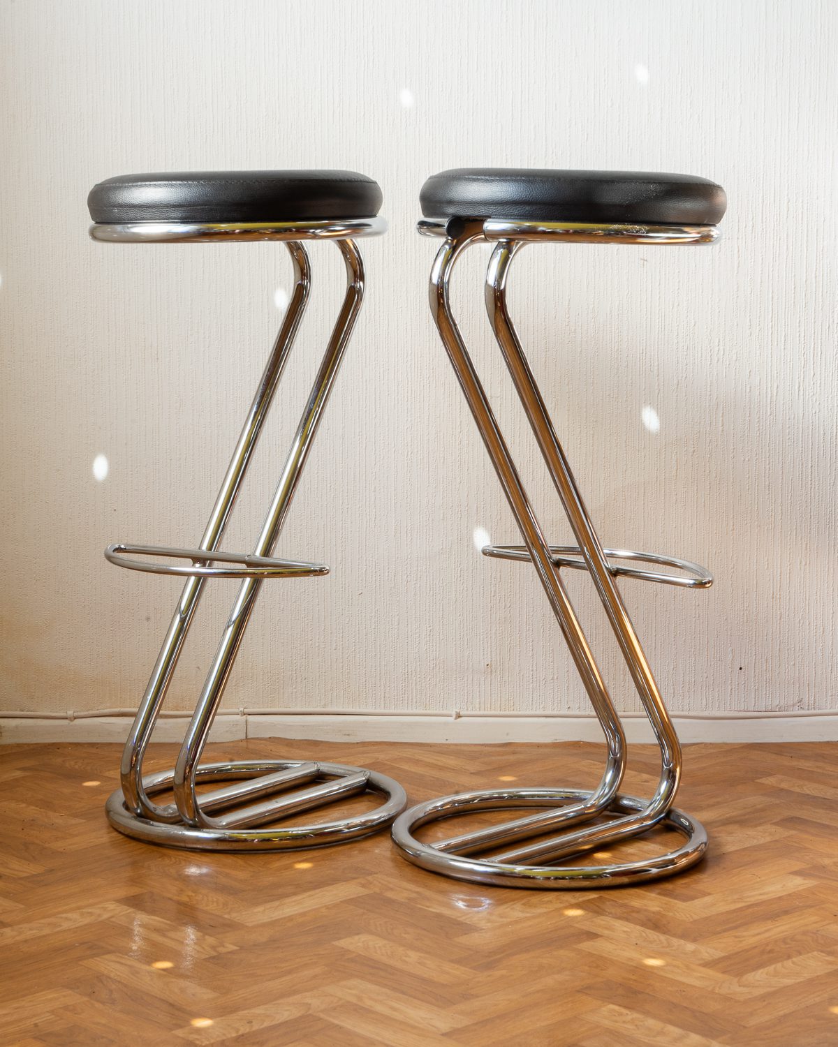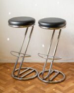C. Nilssoni poolt disainitud ja Itaalias 1990ndatel valmistatud Effezeta “Z” mudeli baaritoolid. Toolid püüavad pilku oma minimalistliku ja graafilise vormiga. Raam on valmistatud kroomitud metallist ning istumispadi on mustast kunstnahast. Toolid on hästi säilinud originaalseisukorras.
