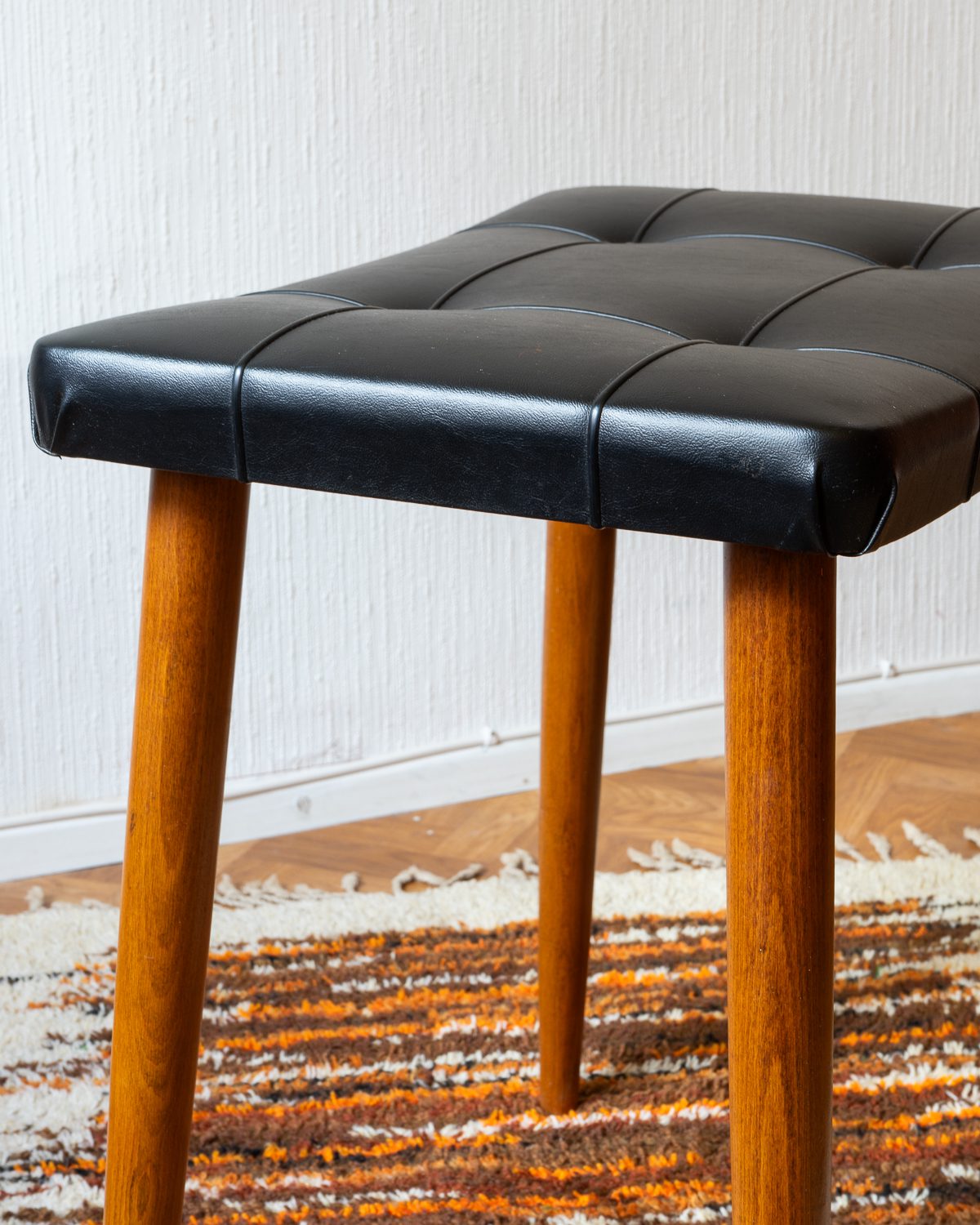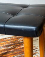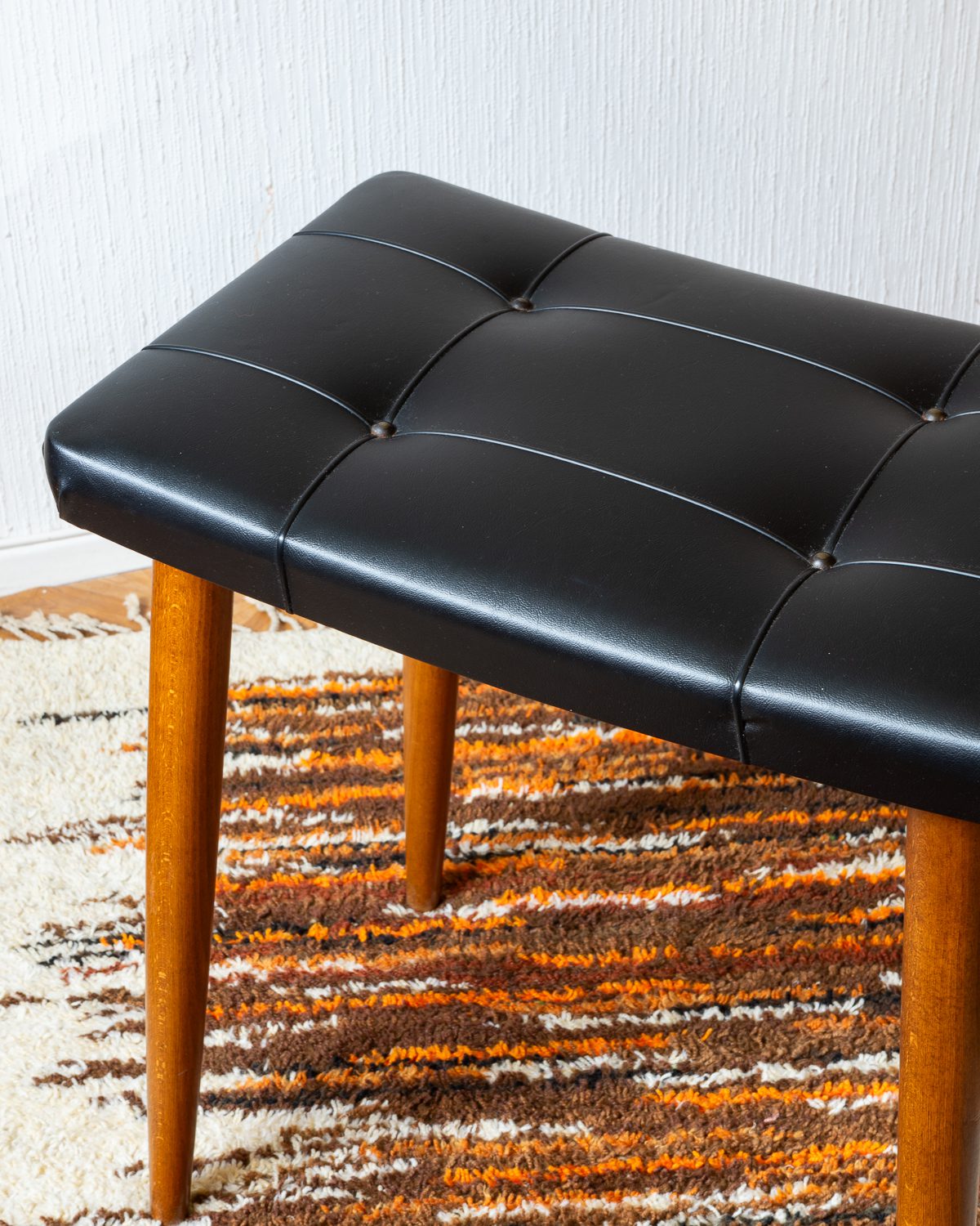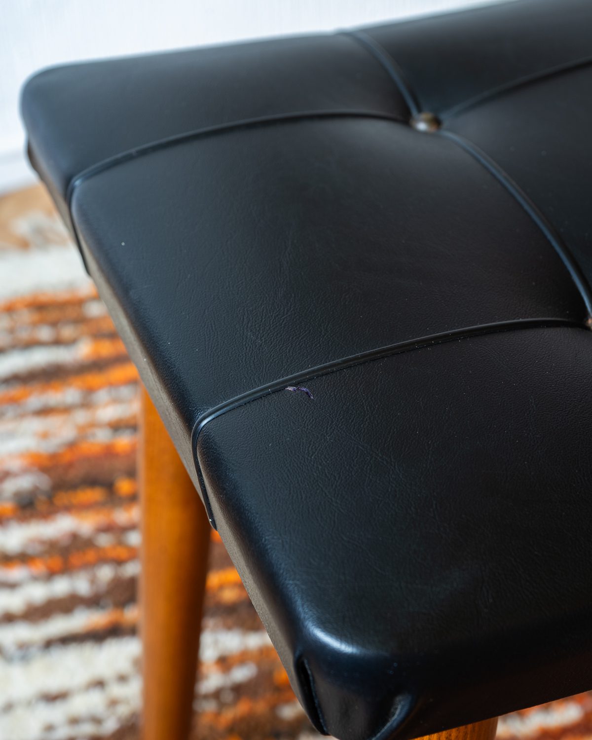 Kunstnahast istme ja puidust jalgadega kõrge pink. Nahast istmel on üks pragu (vt pilti) ja paar väiksemat kulumist. Puidust jalad on väheste kulumisjälgedega. Üldiselt on heas vintage seisukorras.