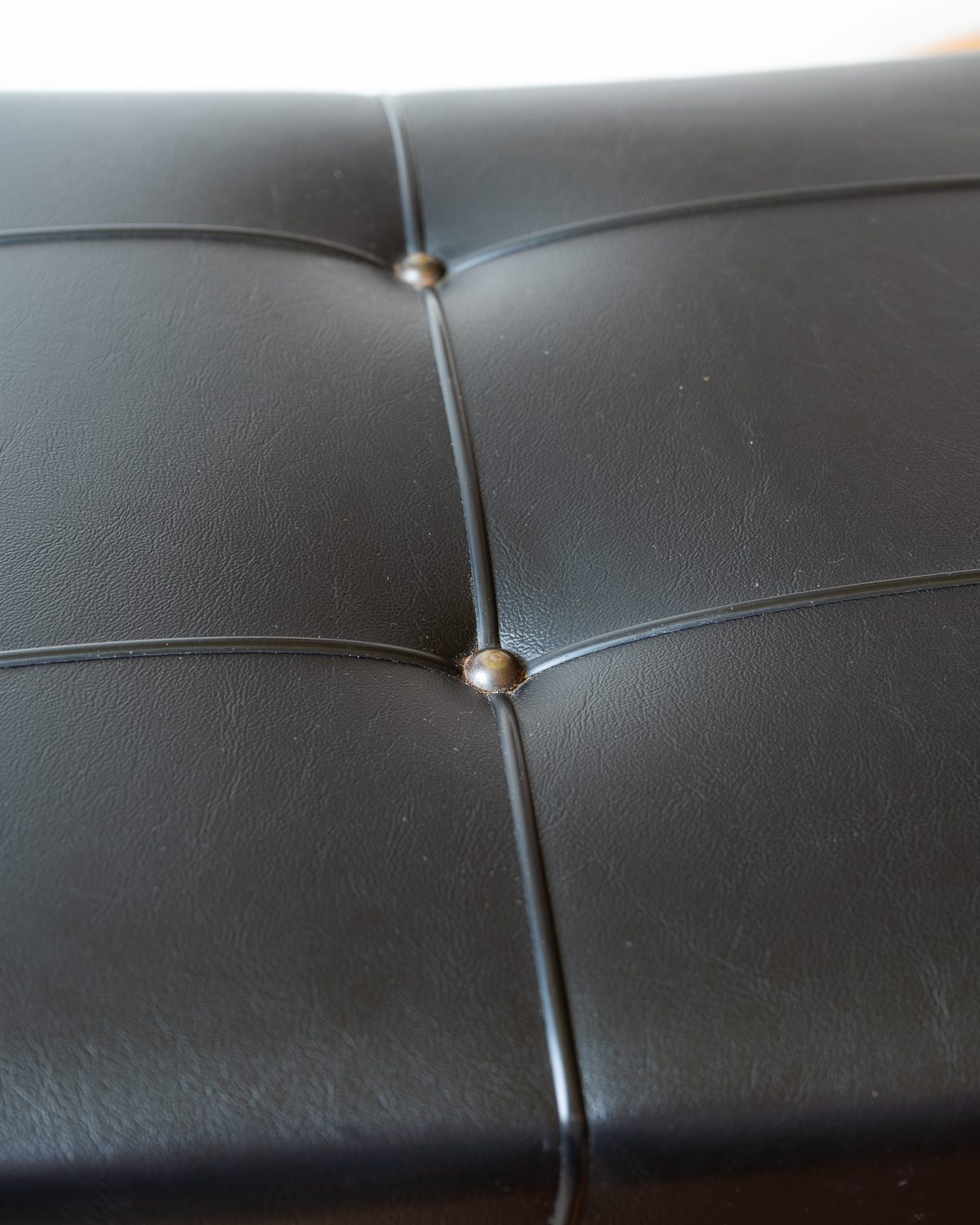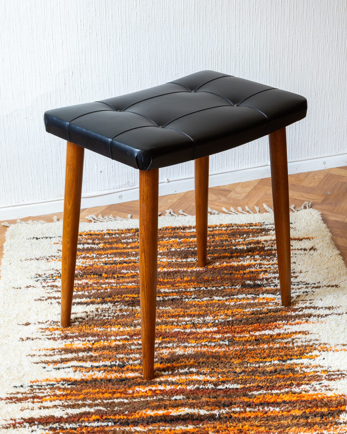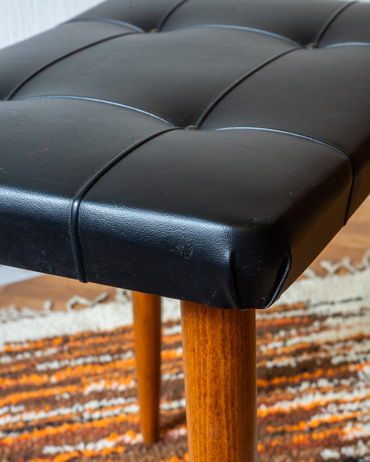 Kunstnahast istme ja puidust jalgadega kõrge pink. Nahast istmel on üks pragu (vt pilti) ja paar väiksemat kulumist. Puidust jalad on väheste kulumisjälgedega. Üldiselt on heas vintage seisukorras.
