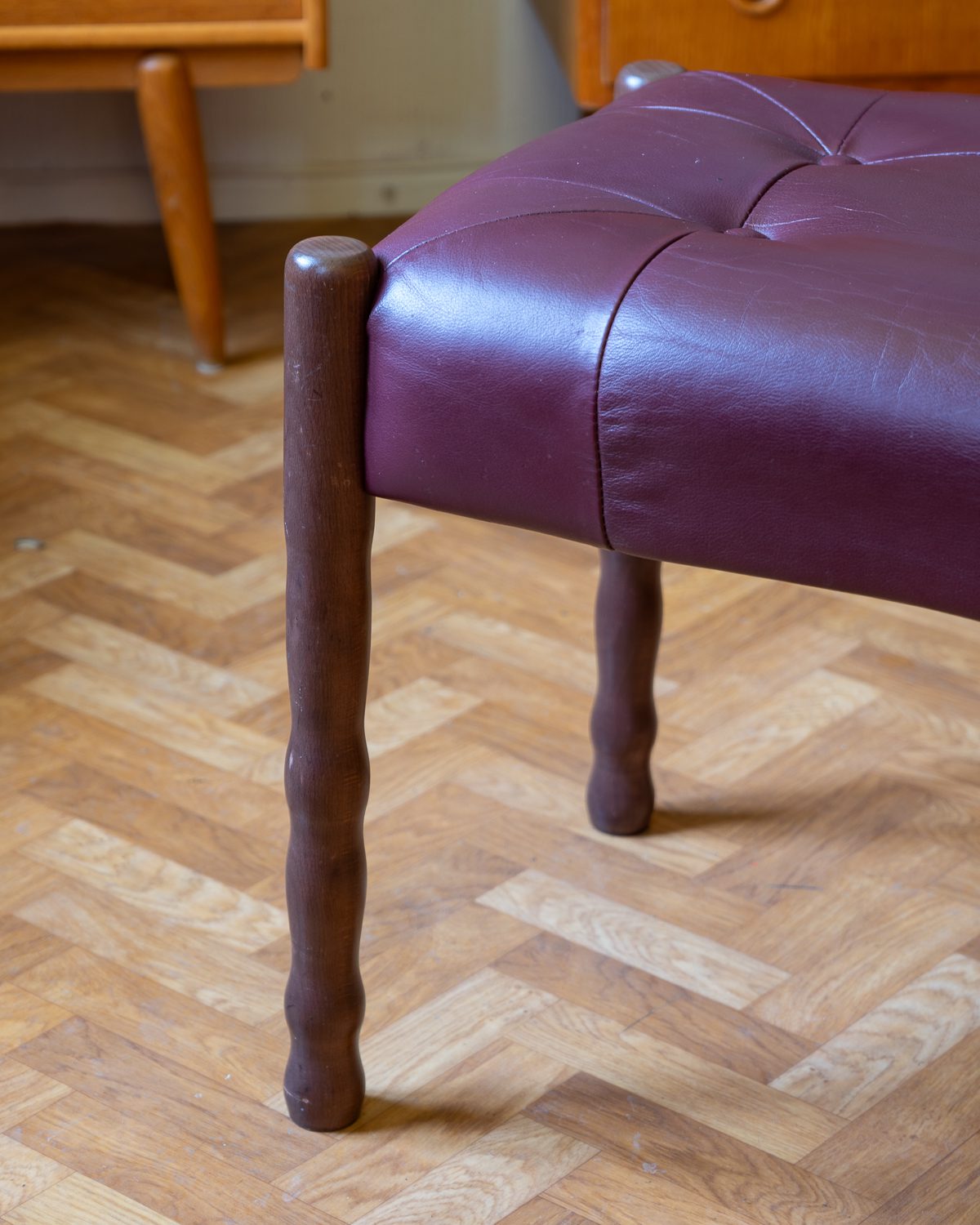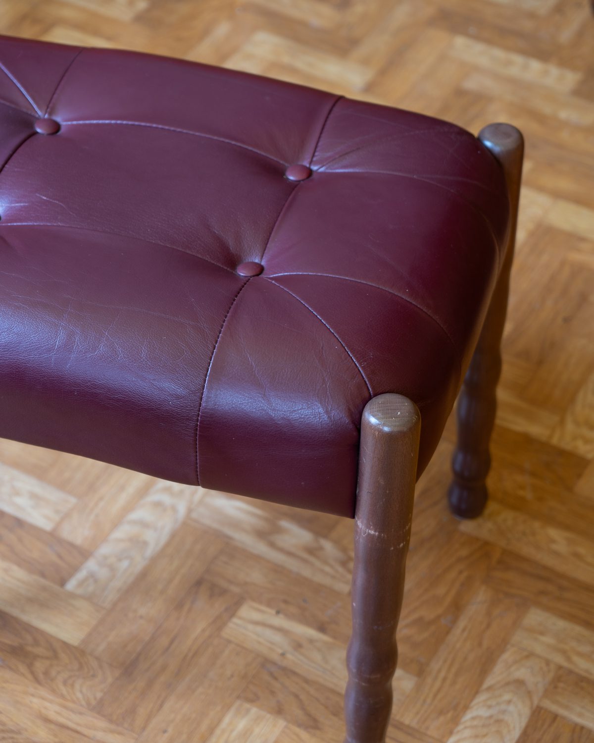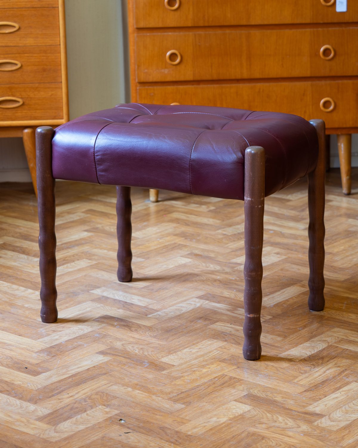 1960ndatest pärit nahast kattega pink. Katte värvus on pigem purpurpunane, mitte nii lilla nagu piltidelt tundub. Esineb vanusele vastavat loomulikku kulumist.