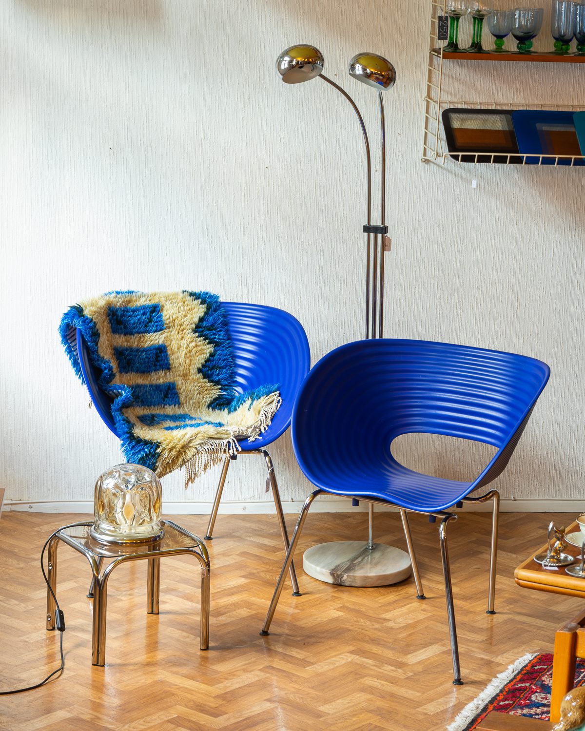 Kaks 1990ndate lõpus Ron Aradi disainitud Vitra “Tom Vac” virnastatavad tooli, plastist mugava isteosaga ja metallist jalgadega. Sobivad nii sise- kui ka välikasutuseks. Esineb kergemaid kriipse ja kraapse.