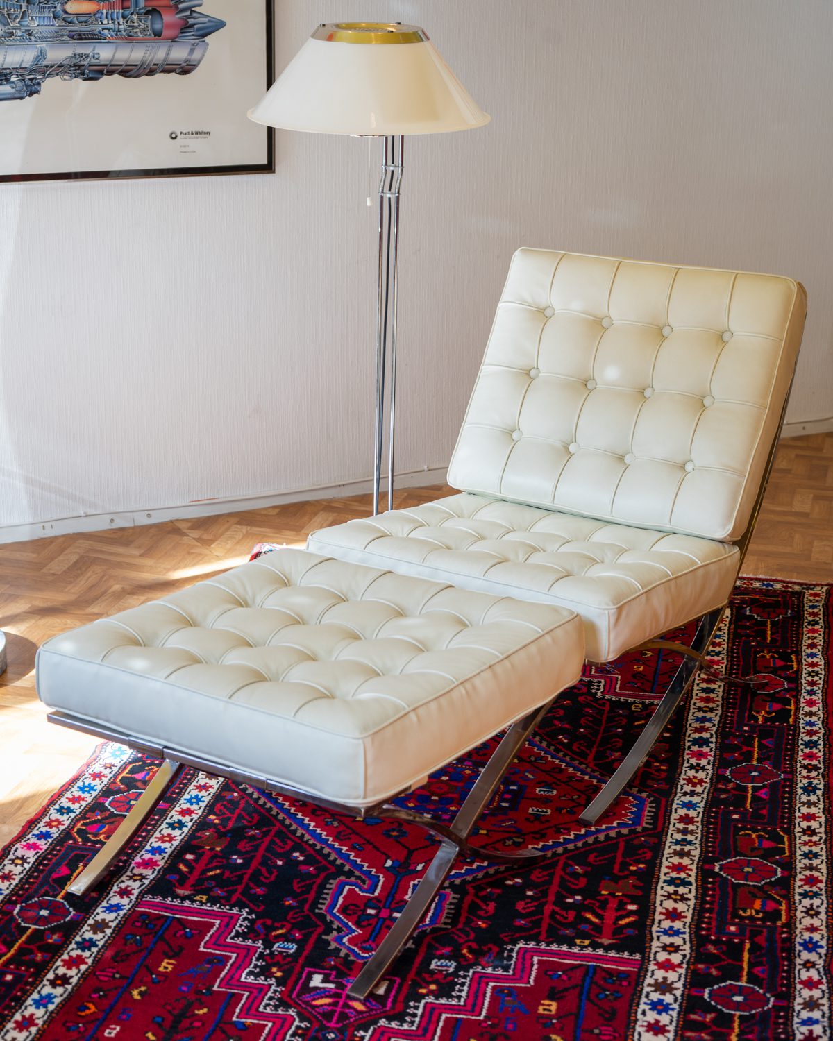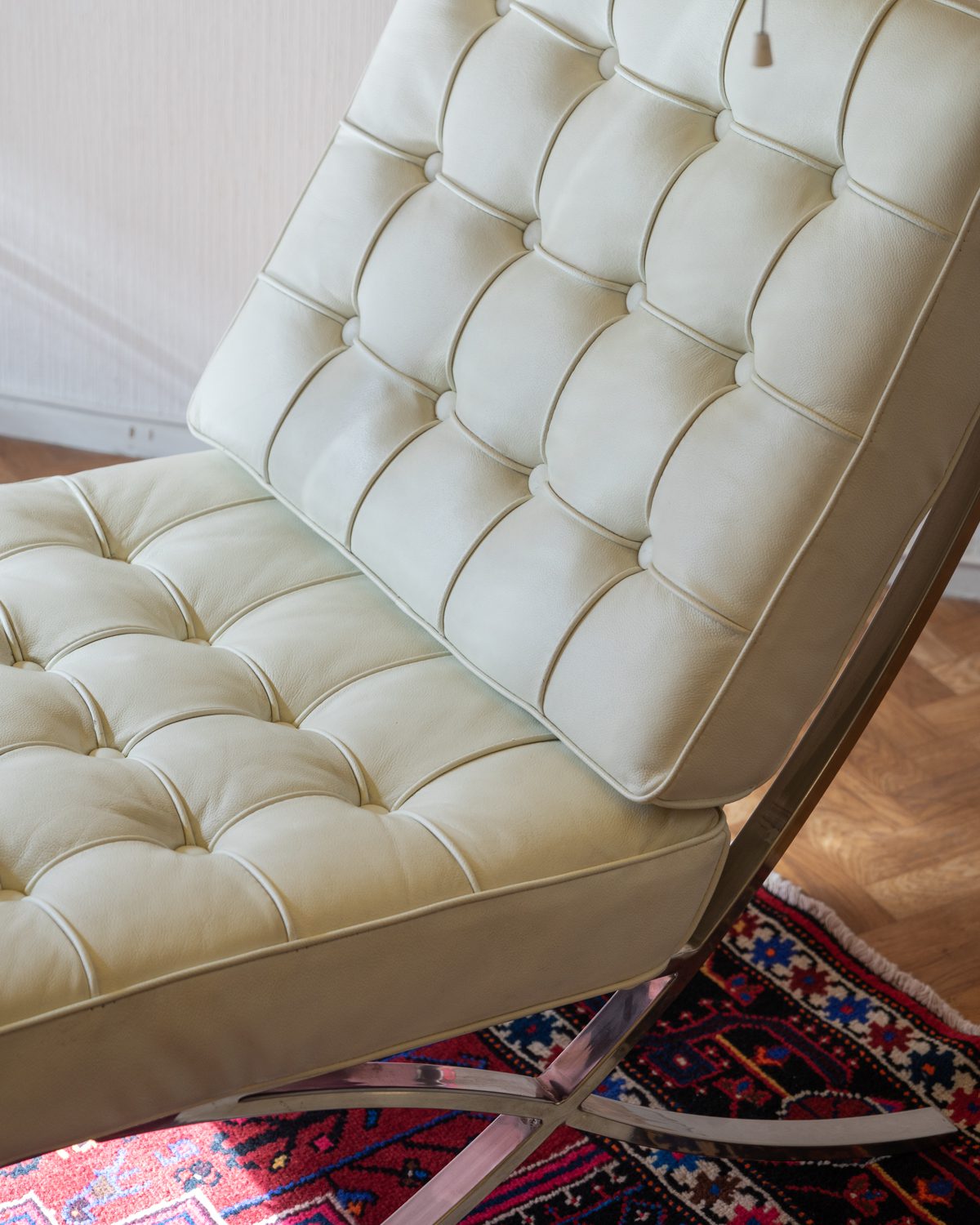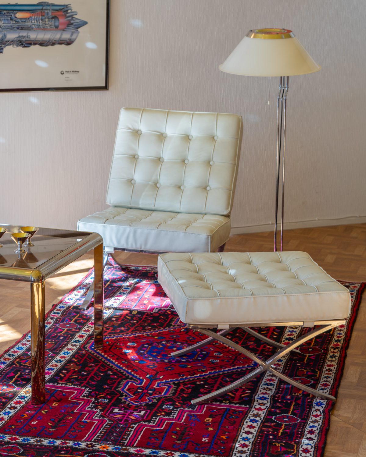 Replika ikoonilisest Barcelona toolist ja järist, mille disainisid Ludwig Mies van der Rohe ja Lilly Reich. Tooli algne disain loodi 1929. aasta Barcelona maailmanäituse jaoks, olles mõeldud kohaks, kus Hispaania kuninglik perekond saaks puhata. Tool ja järi on restaureeritud ja hooldatud ning heas seisukorras.