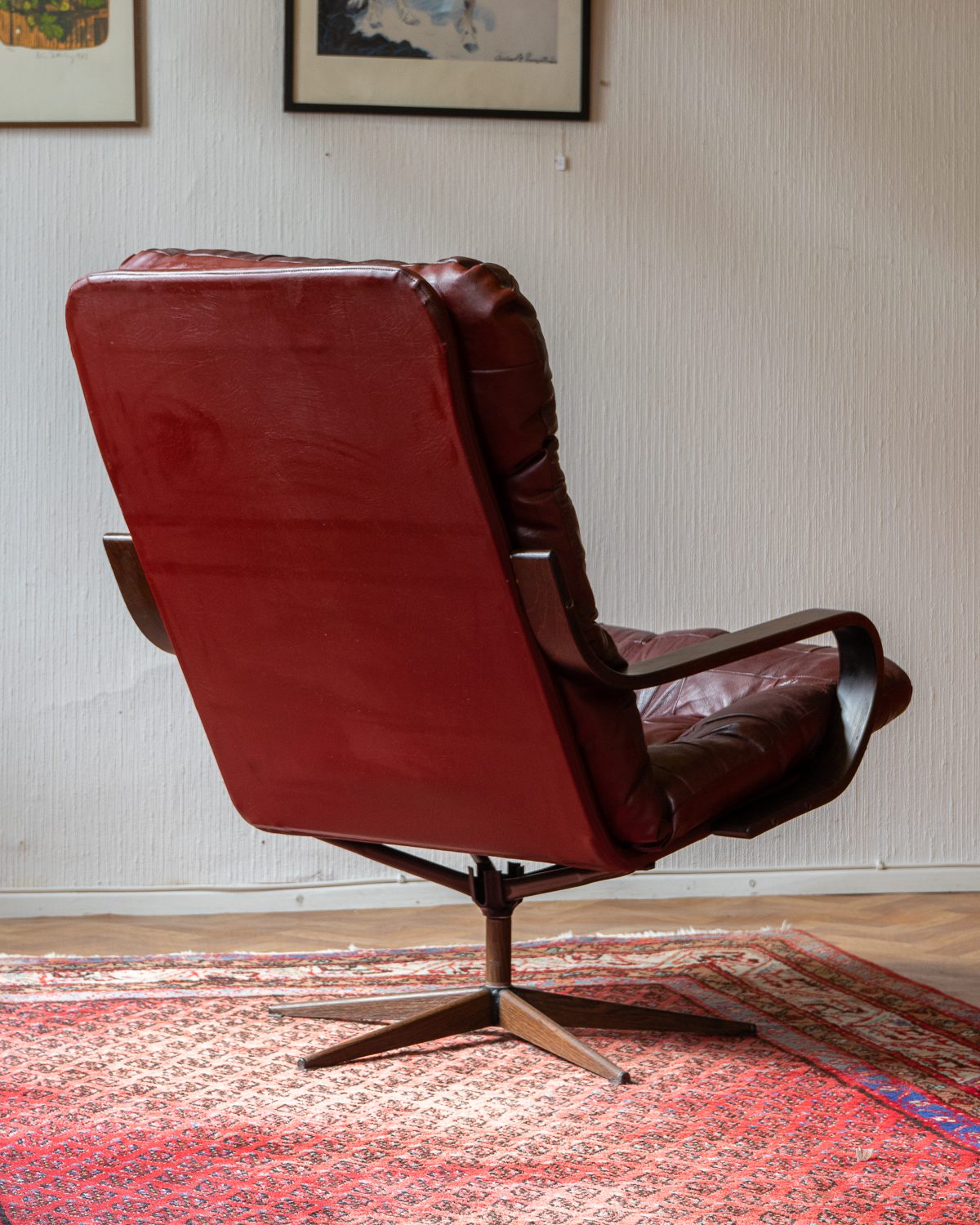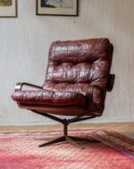 Tõenäoliselt 1970. aastatest pärinev pöörlev patchwork-stiilis nahaga tugitool. Tooli raam on metallist, mida on viimistletud puiduimitatsiooniga. Tool on läbinud puhastuse ja naha hoolduskuuri.  Heas korras, esineb paar üksikut kriimustust.