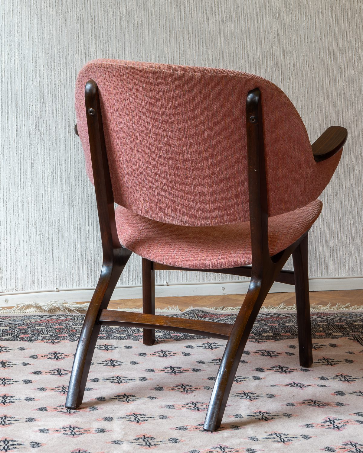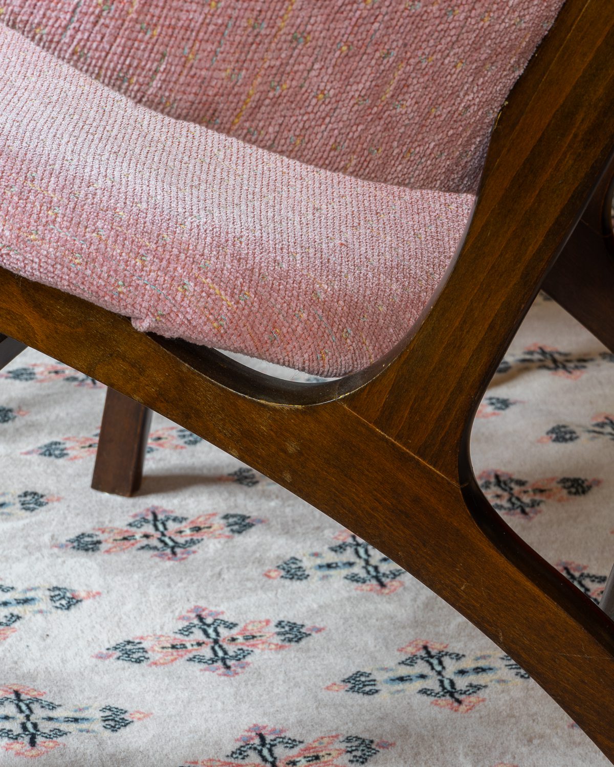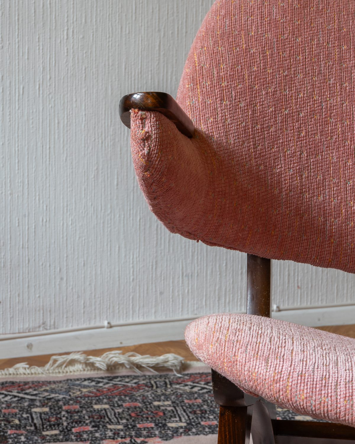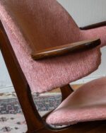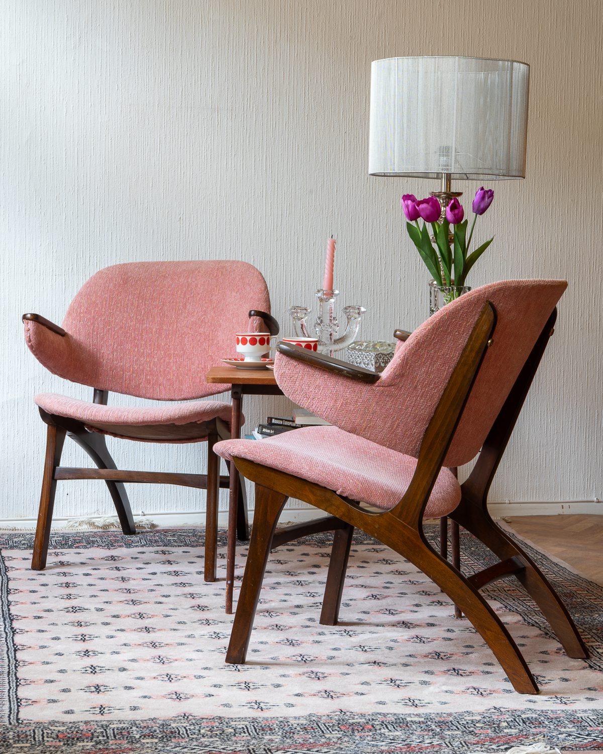 Kaks 1952. aastal Carl Edward Matthesi disainitud “Model 33” seeriast pärit tugitooli. Valmistaud CE Matthes Denmark mööbli väiketootja poolt Taanis 1950ndatel. Toolide raas ja kangas on heas originaalses seisukorras, raamil esineb vanusele omaseid kriime-kraapse ja kangal paar õrnemat plekki – proovime neid veel puhastada enne uude koju saatmist.