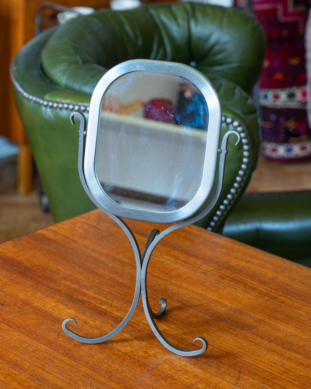 Skandinaavia mid-century sepistatud raamiga lauapeegel. Peegli kalle on reguleeritav. Heas vintage seisukorras, peegelpind ja raam on terved.