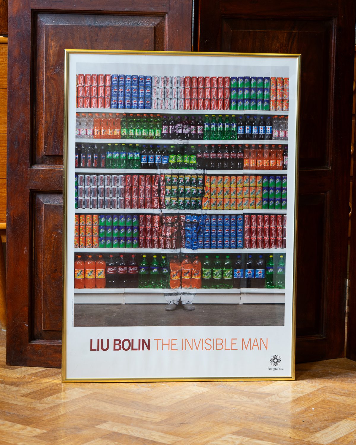 Fotografiska näituse “The Invisible Man” raamitud plakat, mille autor on Hiina kunstnik Liu Bolin. Nii raam kui ka pleksiklaas on heas korras.