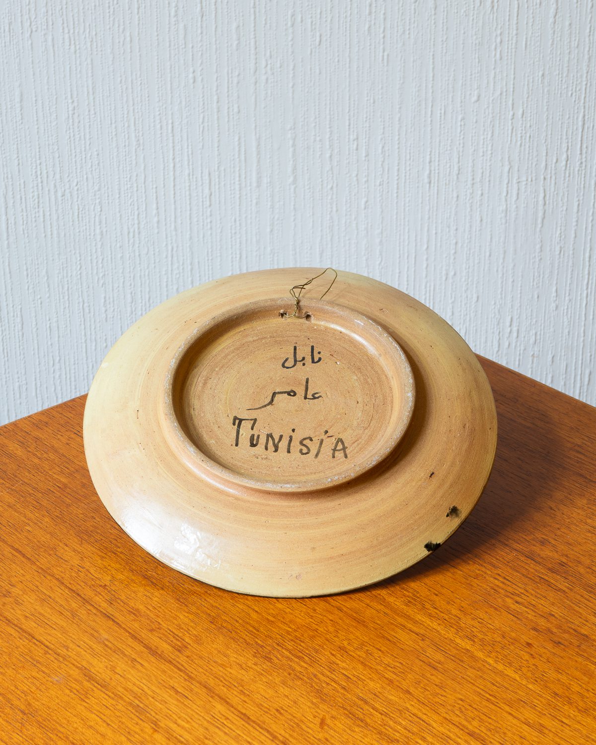 Meeleolukas keraamiline seinataldrik Tuneesiast. Taldrik on hästi hoitud ja väheste kriipsude-kraapsudega.