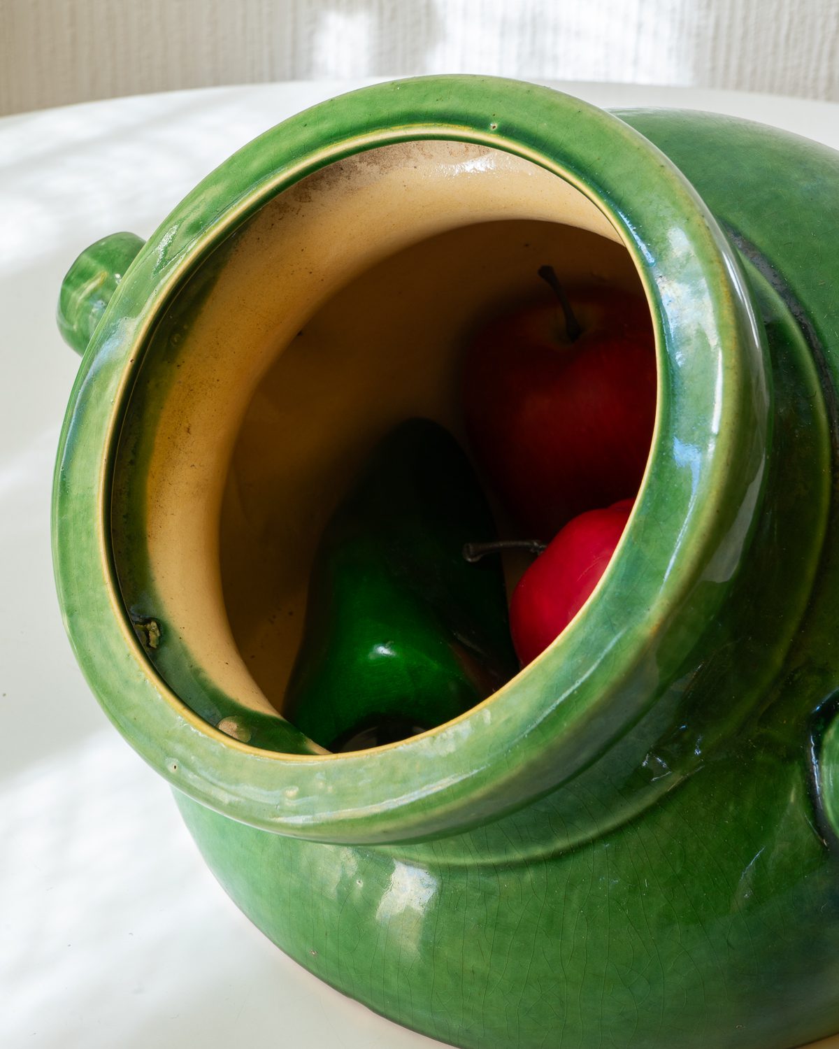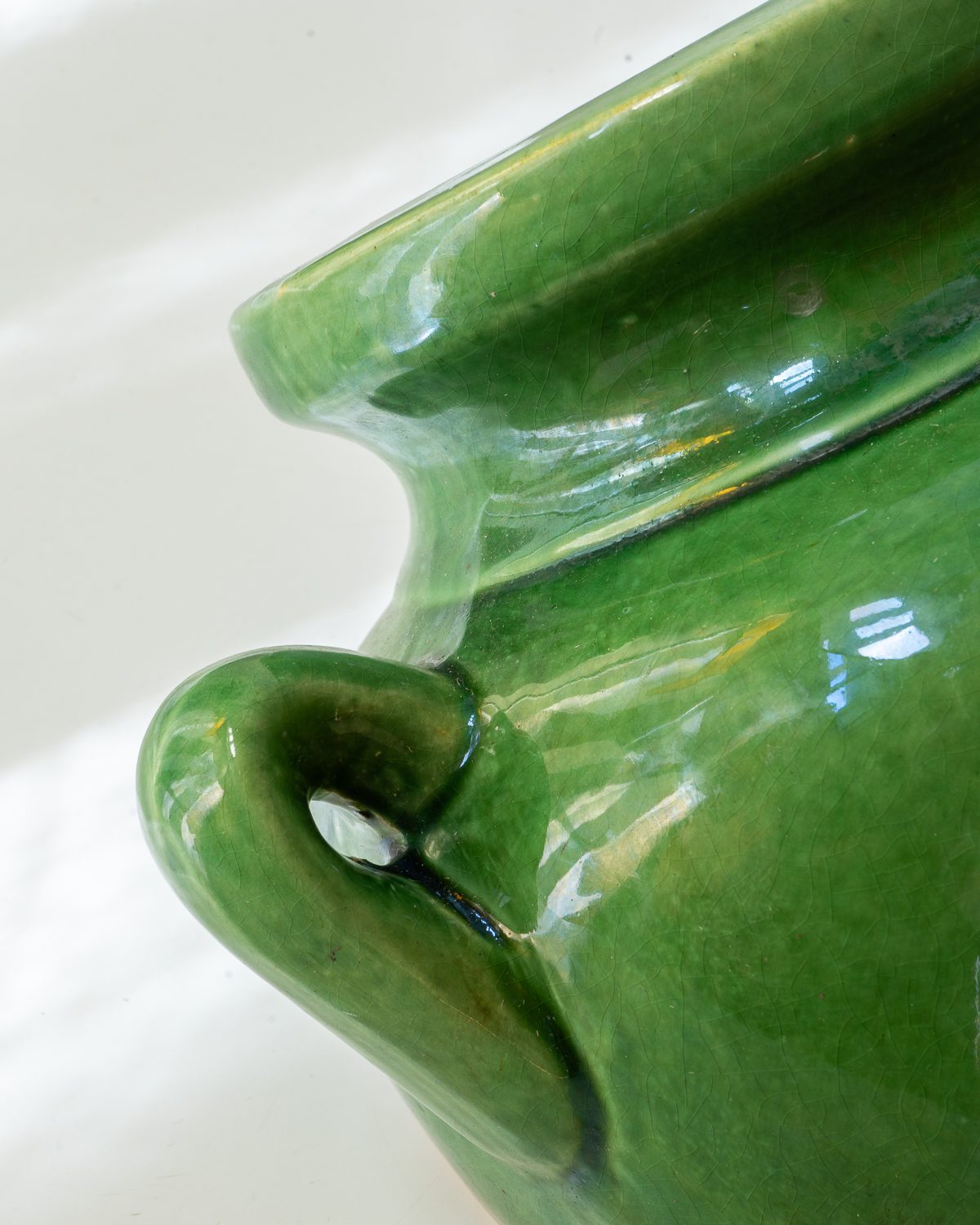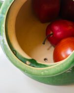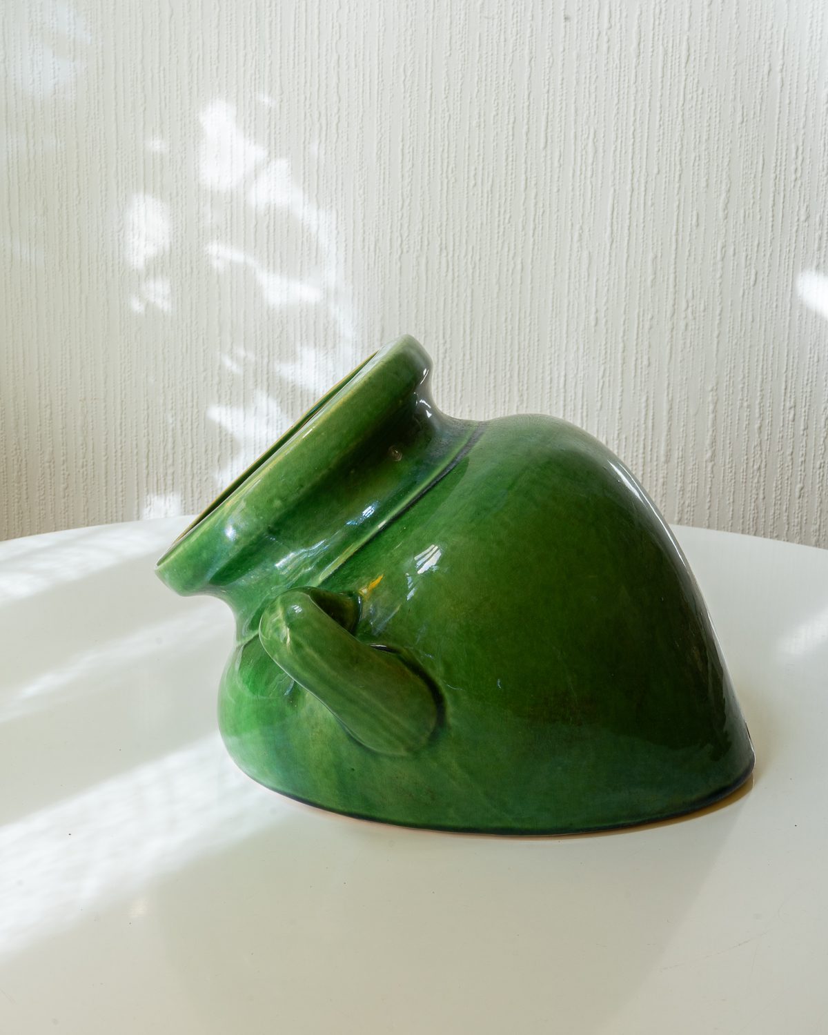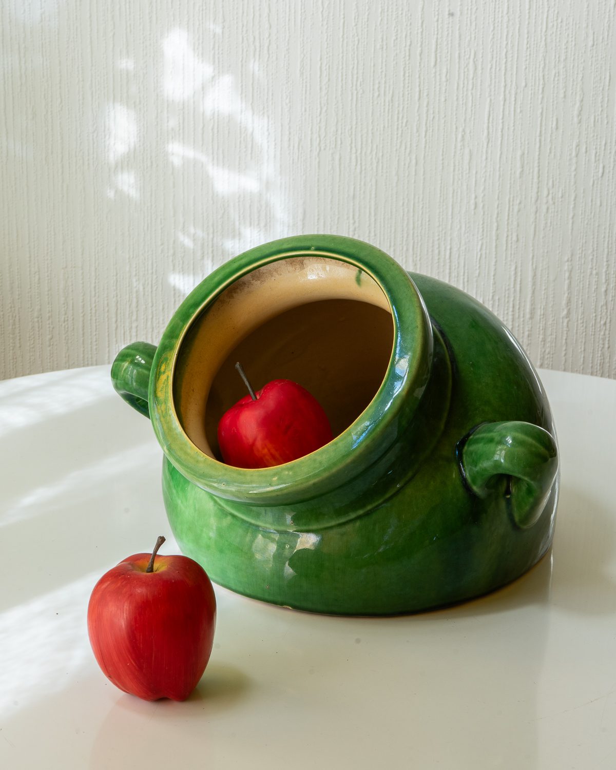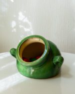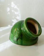 Särtsakalt rohelise ja läikiva glasuuriga keraamiline lillepott. Võimalus kinnitada seinale või kasutada dekoratiivselt laua peal. Sobib ka väliseks kasutamiseks. Heas seisukorras.