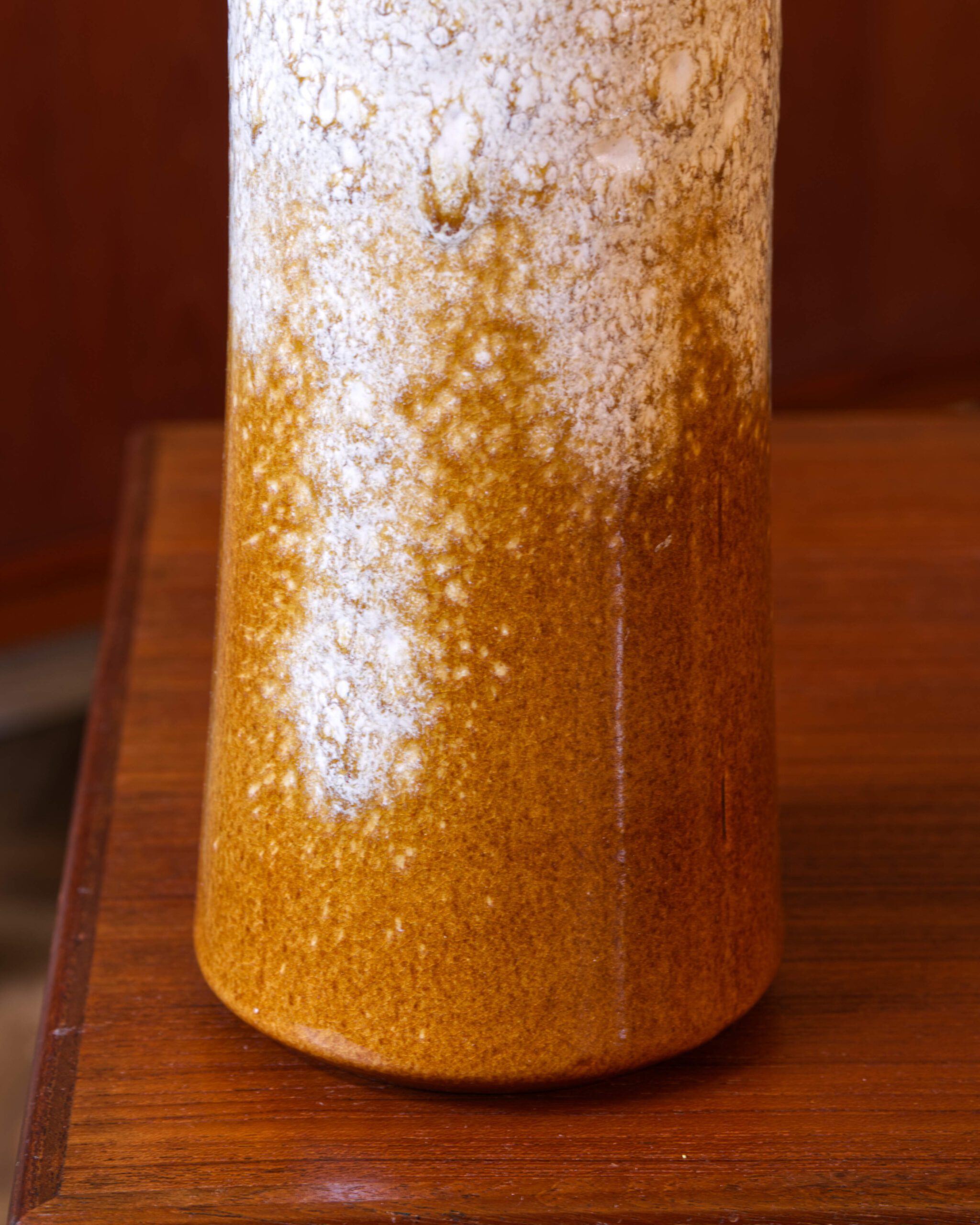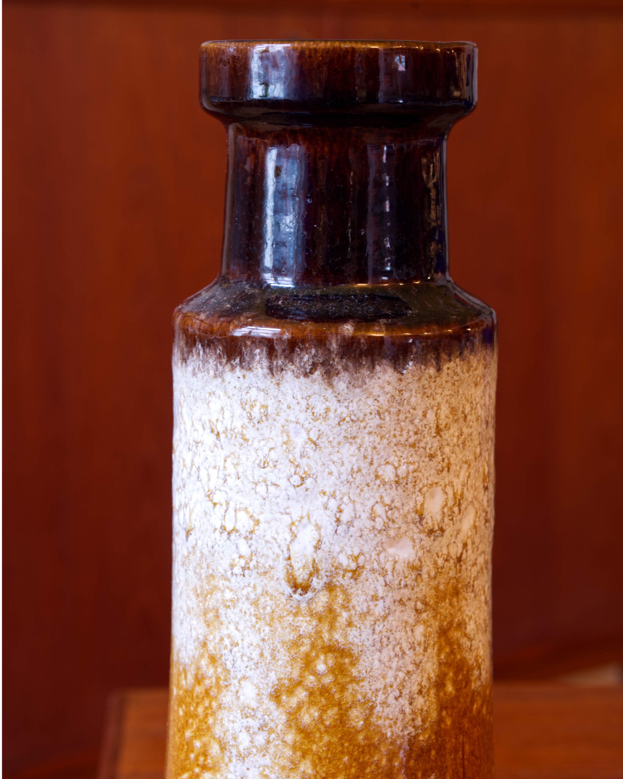 Keraamiline vaas Scheurichi keraamikatehase disainile iseloomuliku voolava glasuuriga. Valmistatud 1970ndatel Lääne-Saksamaal. Põhja all on pinnapealne täke.