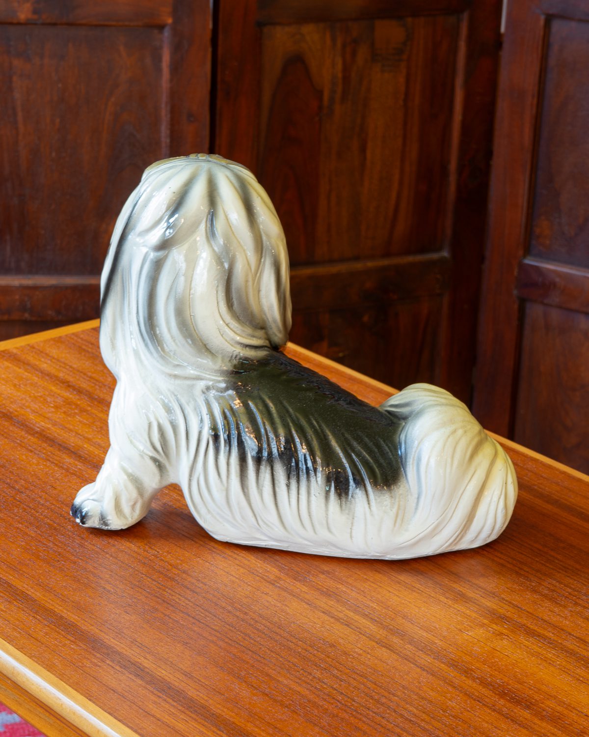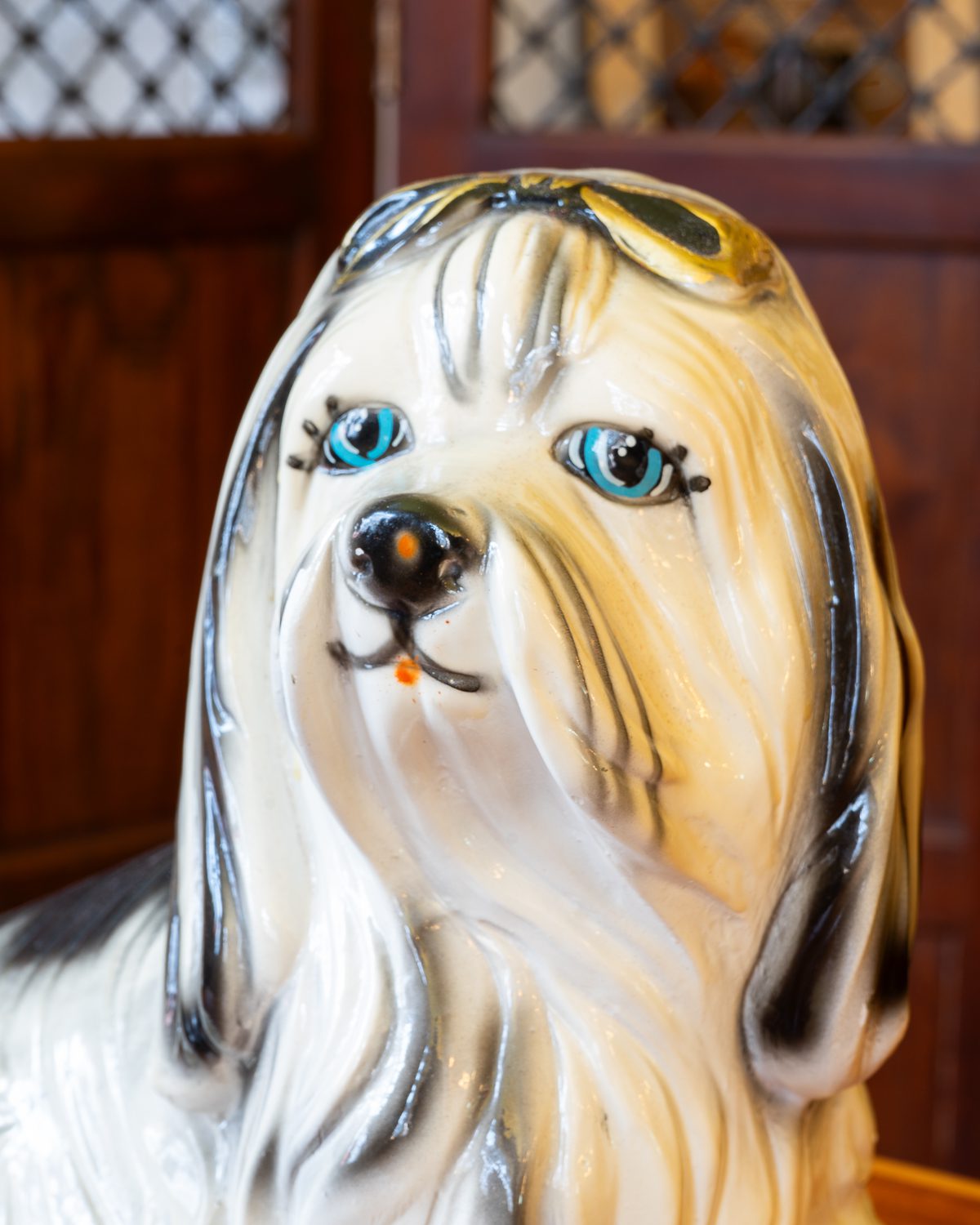 1960/1970ndatest pärit käsitsi maalitud kipsist koerakuju. Tõeliselt kitš aga armas sisustuselement. Koer on oma vanuse kohta heas korras, kuid esineb väikseid värvikahjustusi.