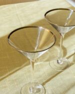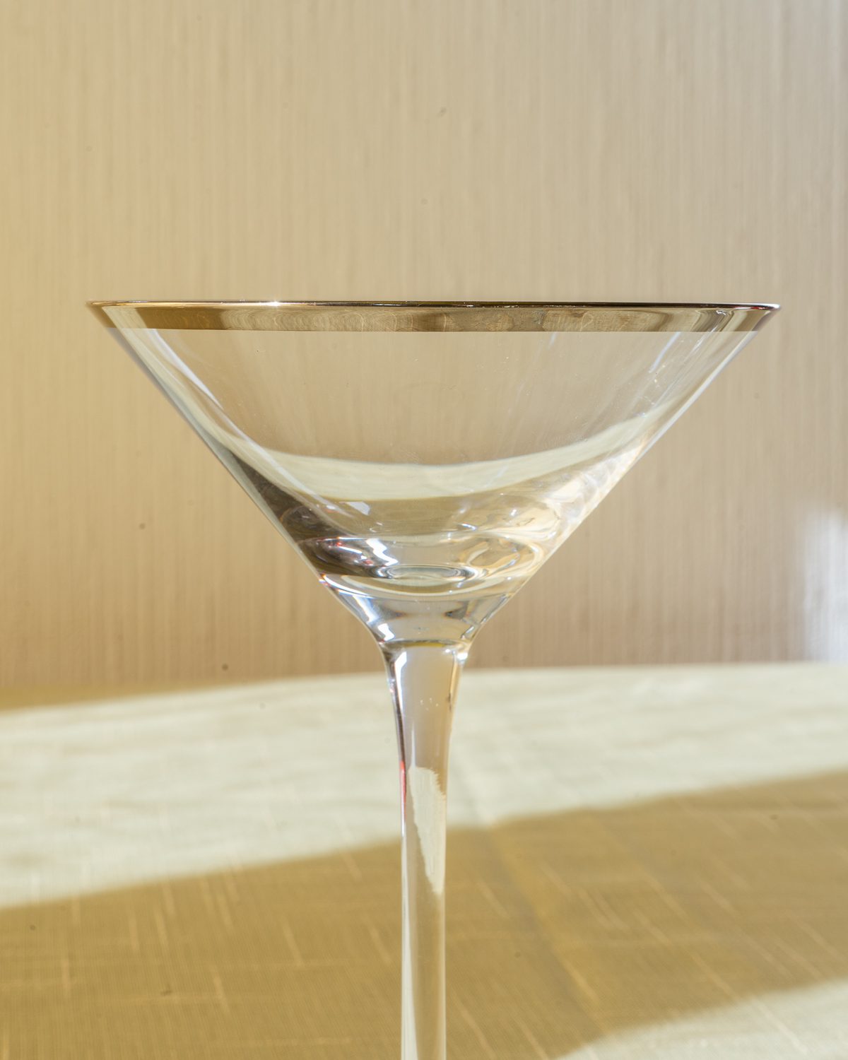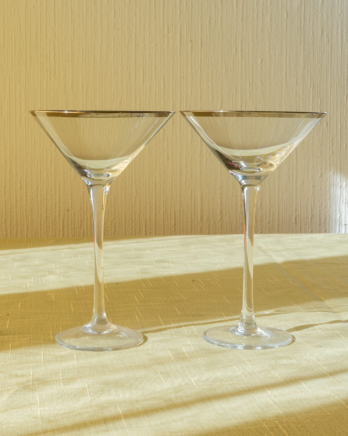 Hõbedase äärega kõrgete martiiniklaaside komplekt. Komplekti kuulub neli klaasi, hind kehtib kogu komplekti kohta. Klaasidel on näha väheseid kasutamisjälgi. Üldiselt on klaasid hästi hoitud.