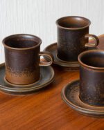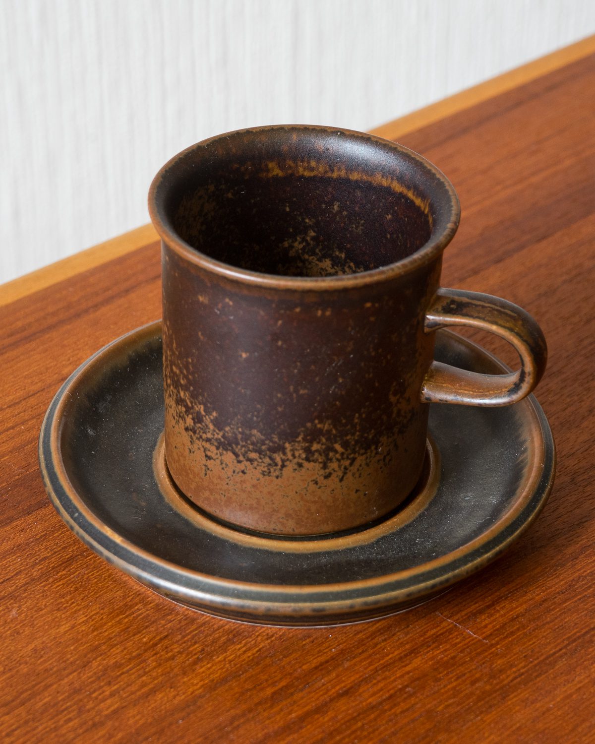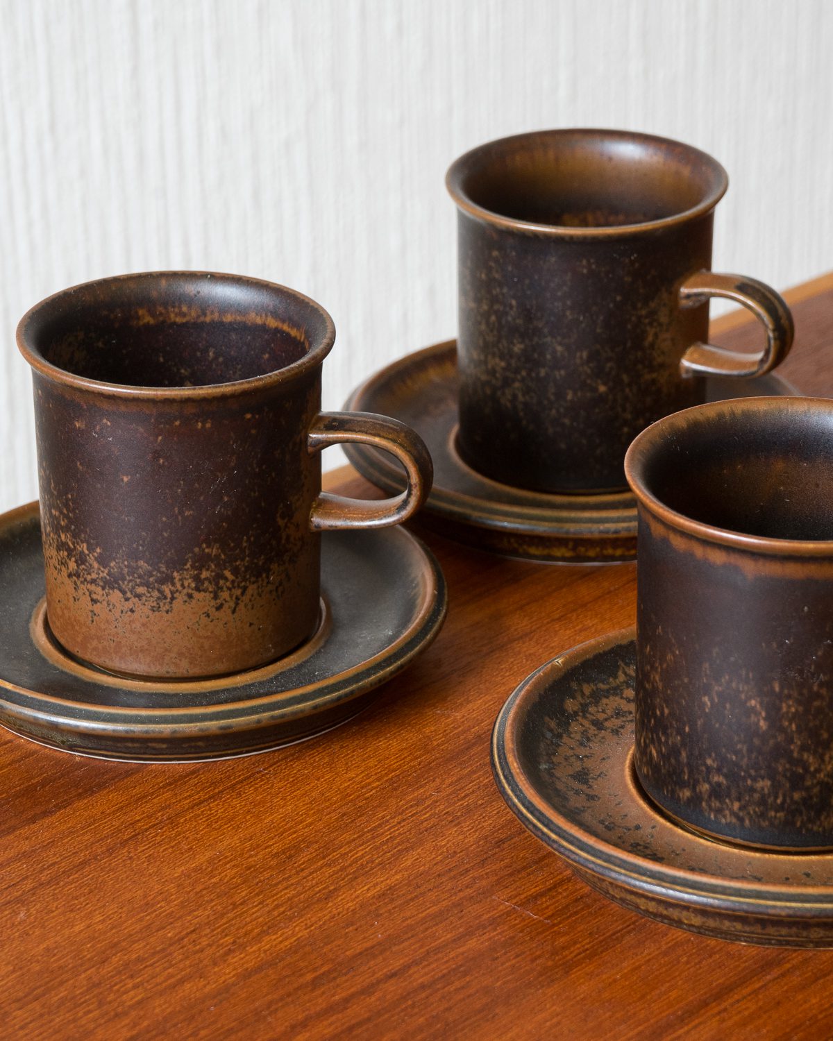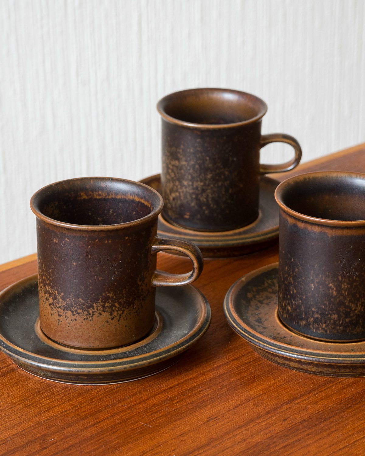 1960ndatel Ulla Procope disainitud “Ruska” seeriast pärit keraamiline serviis. Toodetud Soomes, Arabia portselanitehases. Komplekti kuulub kolm tassi ja kolm alustaldrikut.