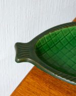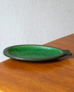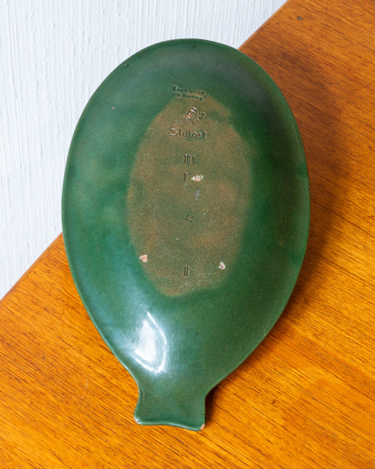 Käsitööna valminud keraamiline serveerimisalus. Kandik on kaetud glasuuriga ning on kuuma- ja toidukindel. Saba all, glasuuri sees on väike täke. Ülejäänud pinnal on näha väheseid kasutusjälgi. Valmistatud 1950-60ndatel Rootsis, Höganäsi linnas.