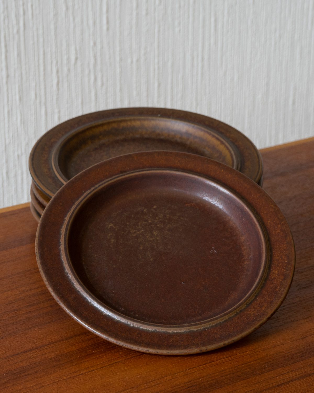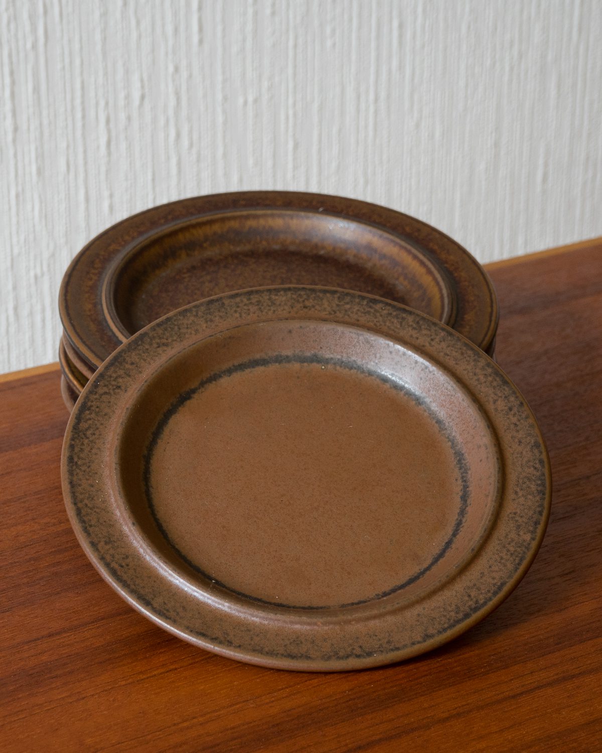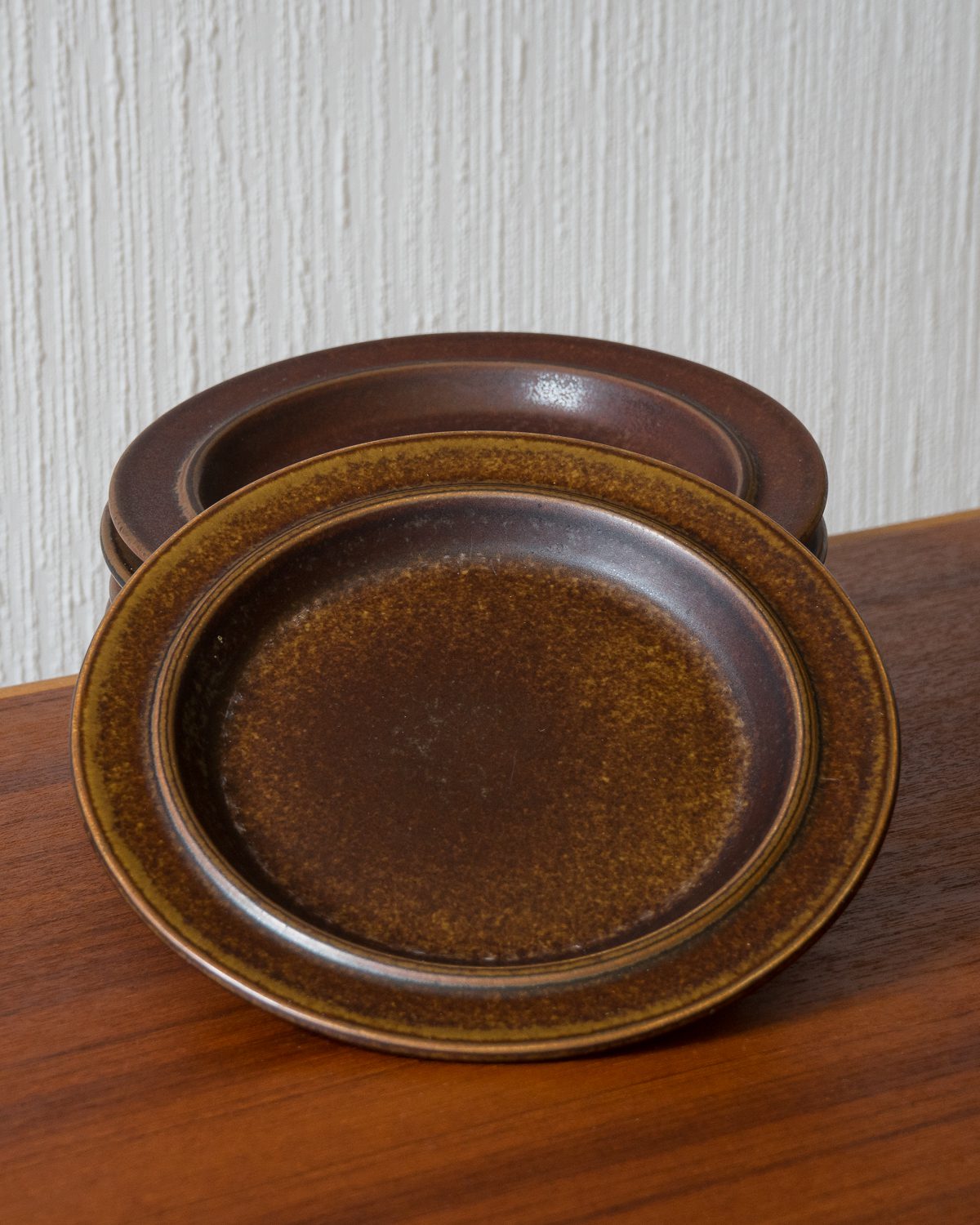 1960ndatel Ulla Procope disainitud “Ruska” seeriast pärit keraamilised taldrikud. Toodetud Soomes, Arabia portselanitehases. Kokku on 12 taldrikut, müügis ka ühekaupa