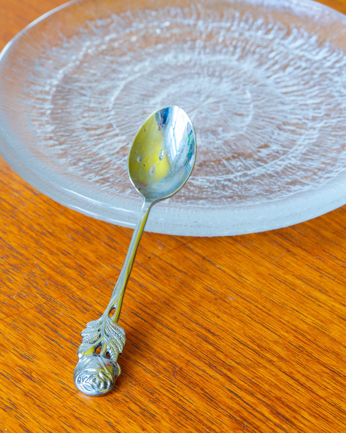 Roosimotiiviga kaunistatud teelusikad. Komplekti kuulub kuus hästi hoitud ja vanusele omaste kulumisjälgedega lusikat. Hind kehtib kogu komplekti kohta.