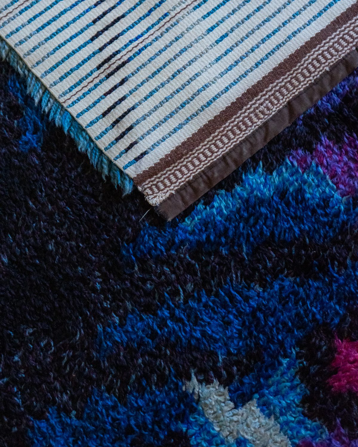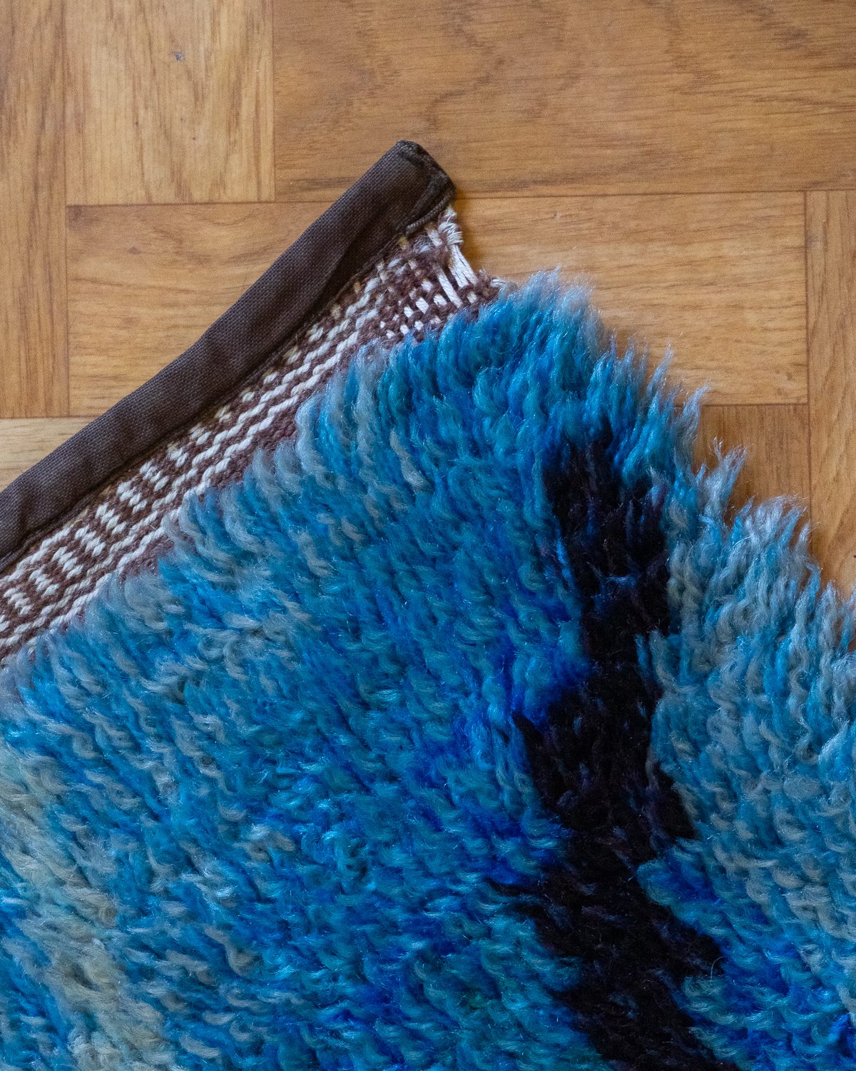 1960ndatel Rootsi tekstiilikunstniku Ingrid Jagarzi disainitud kõrge karvaga rüiuvaip “Tibet”. Ühest otsast on äär hargnenud.