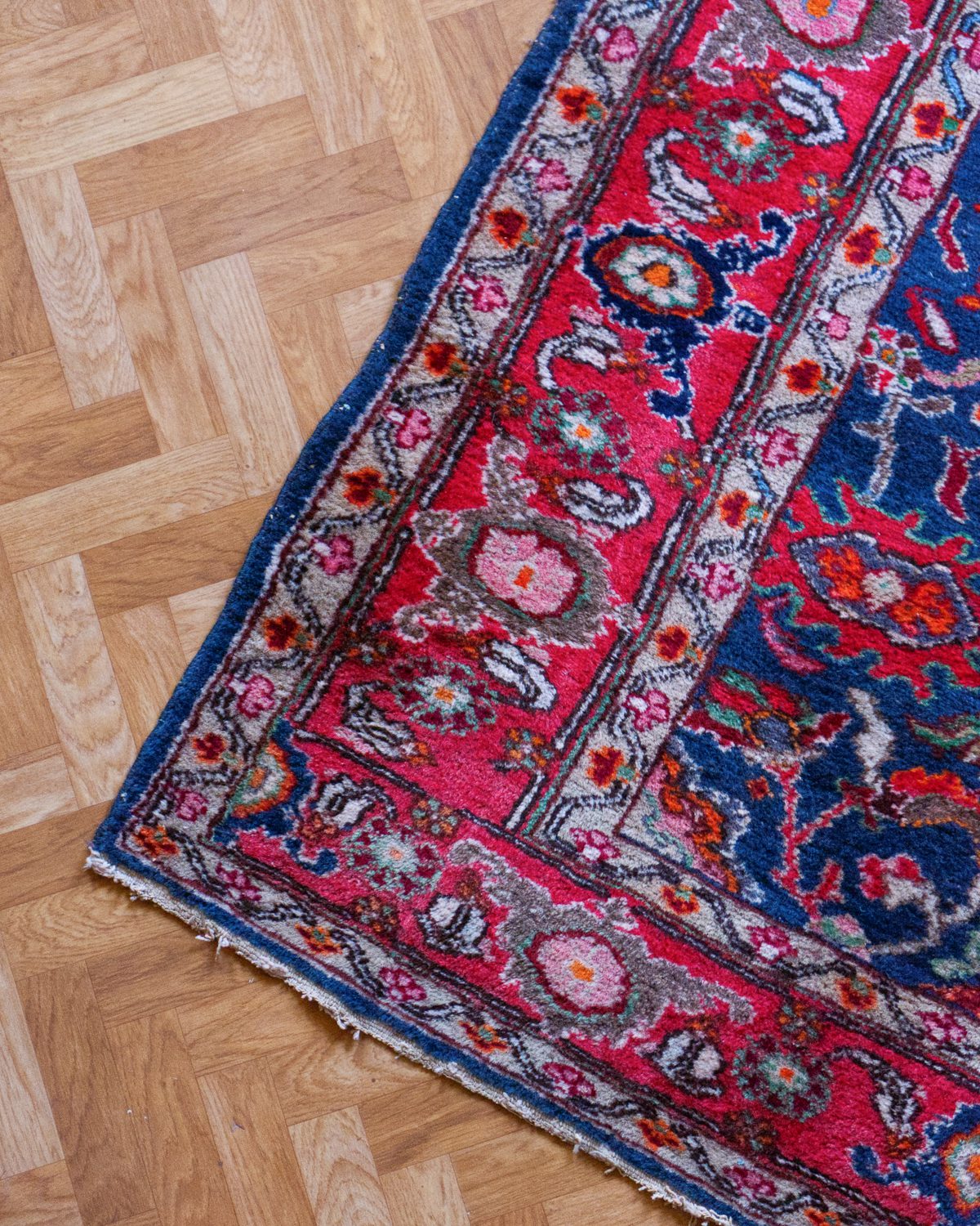 Erksates toonides Kasahhi villane käsitöövaip. Heas vintage seisukorras, esineb loomulikku kulumist. Pesumajas märgpuhastatud.