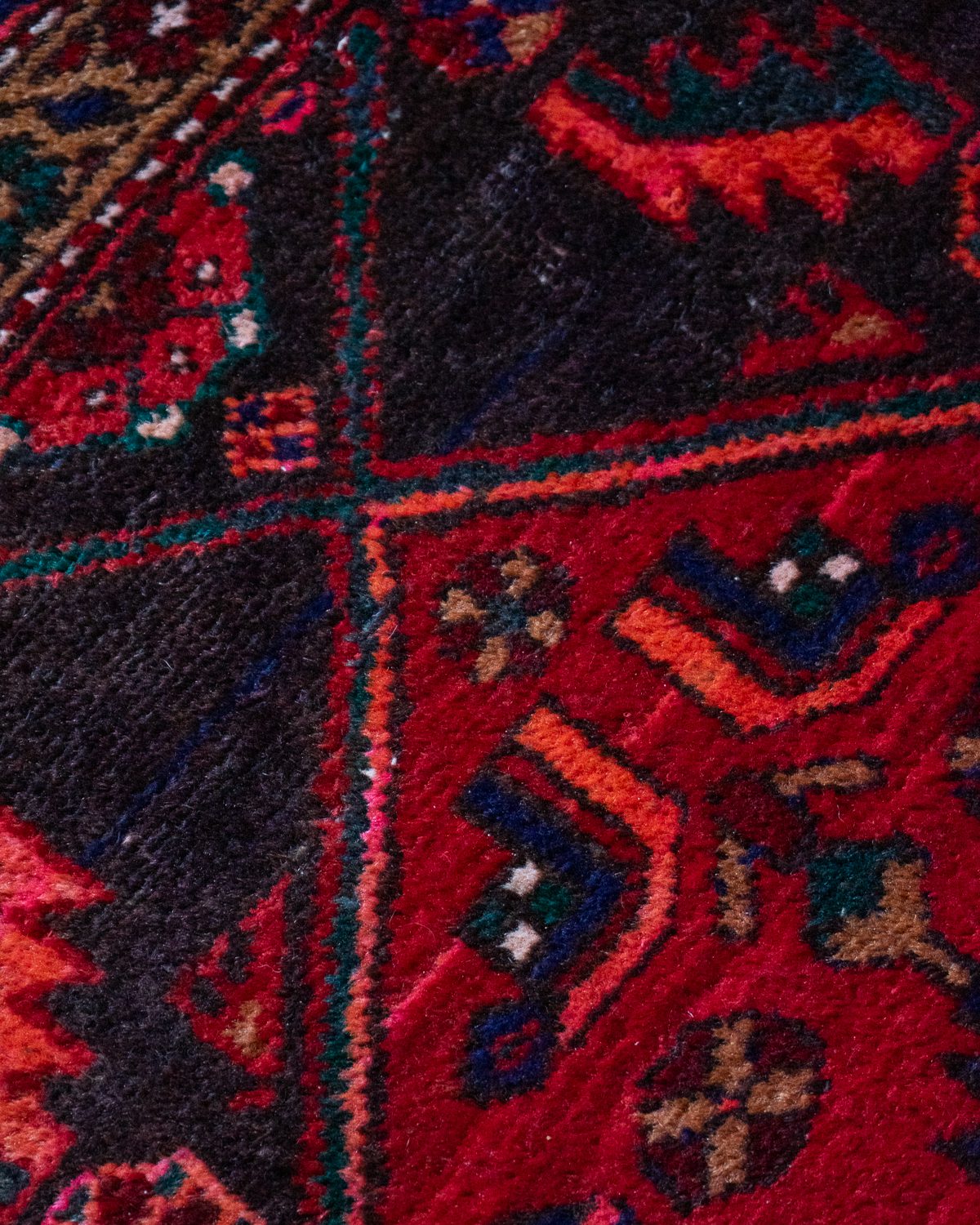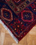Keskmise mustri tihedusega tumedates toonides Hamadani stiilis Pärsia käsitöövaip. Heas vintage seisukorras, laius ebaühtlane.