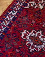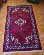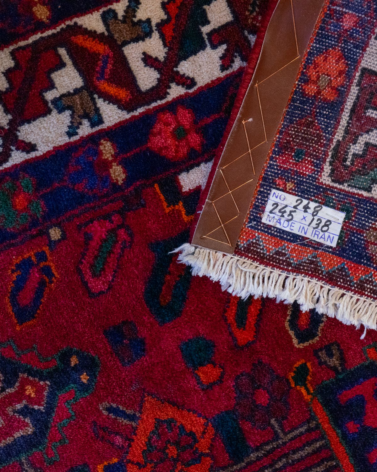 Pärsia käsitöövaip, mille alumisel küljel on tugevduseks nahast ribad. Vaip on väga heas korras. Hetkel on vaip märgpuhastuses ja saabub peagi poodi.