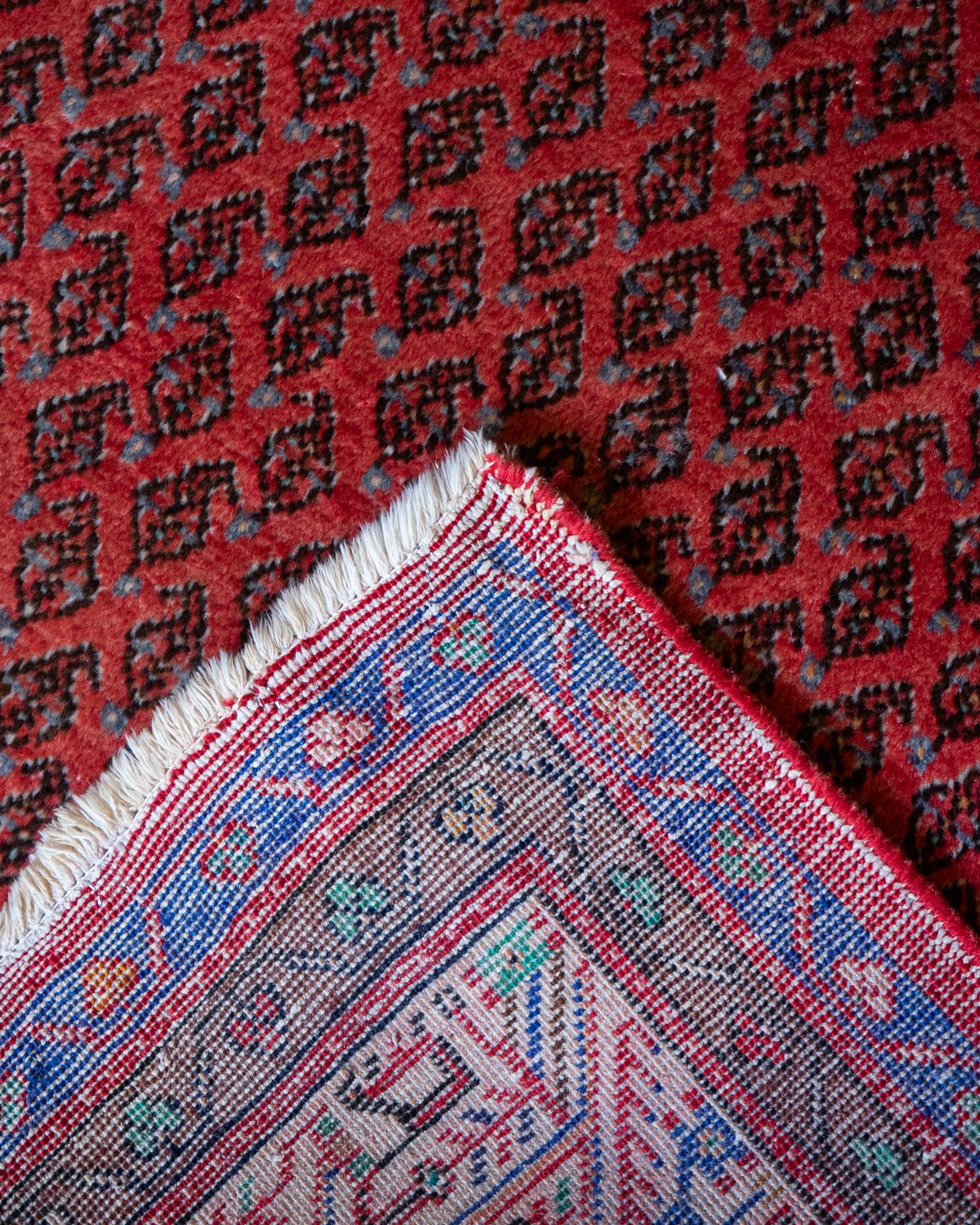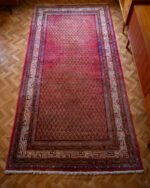 Seraband villane käsitöö Pärsia vaip, mir mustriga. Keskmisest paksem ja pehmem vaip. Üks vaiba nurk on kergelt pleekinud roosakamaks ja ühest küljest on äär kulunud.
