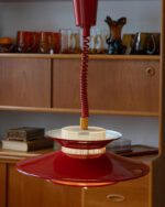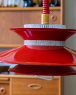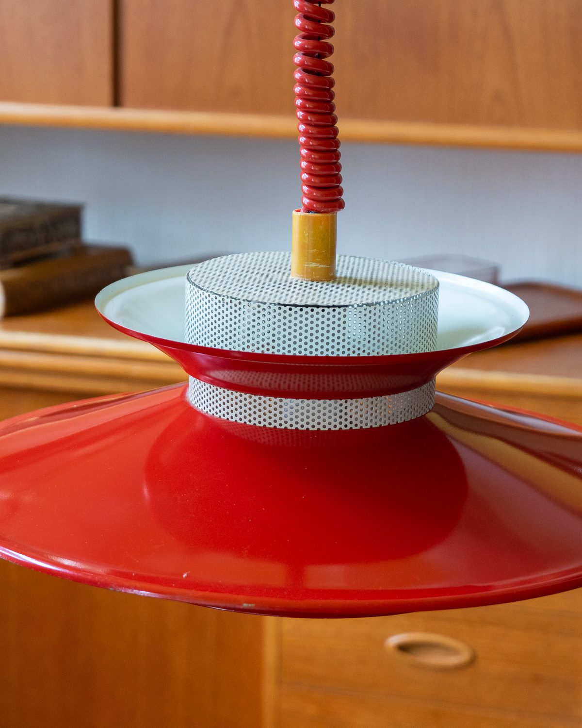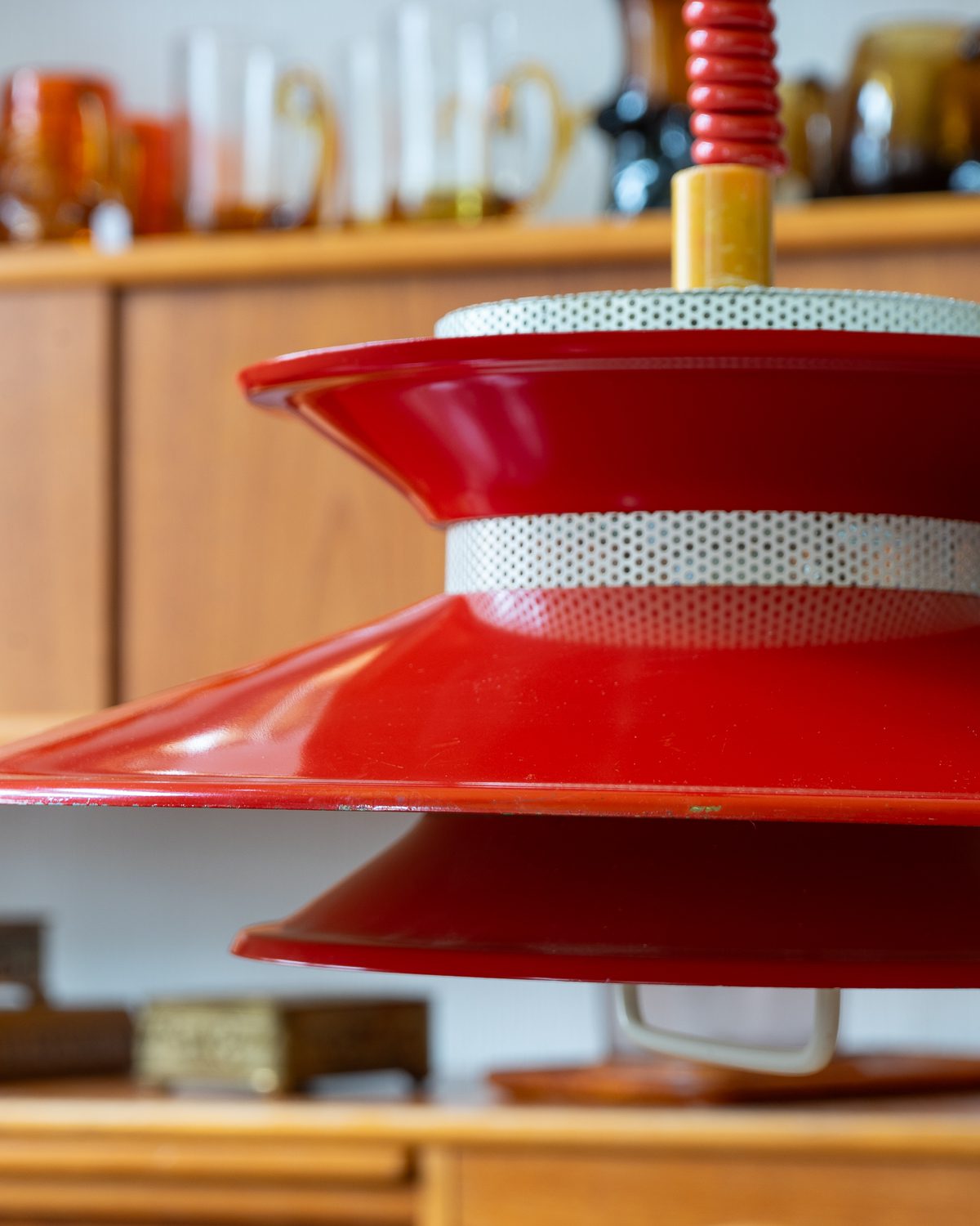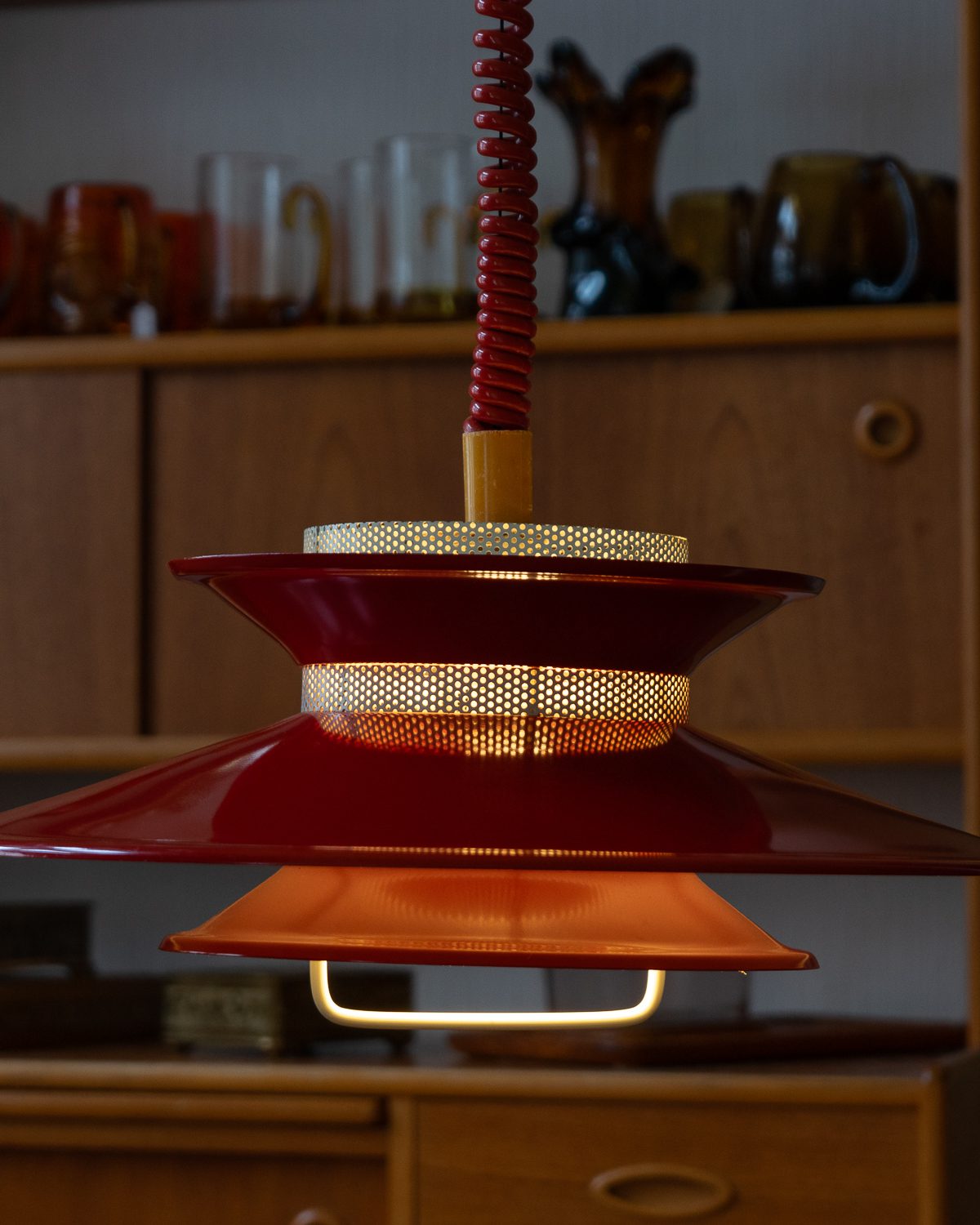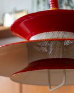 Taani tootja Abo Randers poolt 1980ndatel valmistatud punane metallist laelamp. Klassikaline köögilamp ja puhas värvitoon sobivad hästi nii modernsesse kui ka vintage kööki või söögituppa. Äärtes esineb kergelt värvi kulumist ning üks detail on ajaga kolletunud ja kulunud, muidu on valgusti heas korras.
