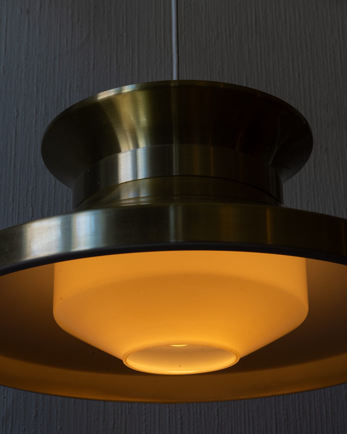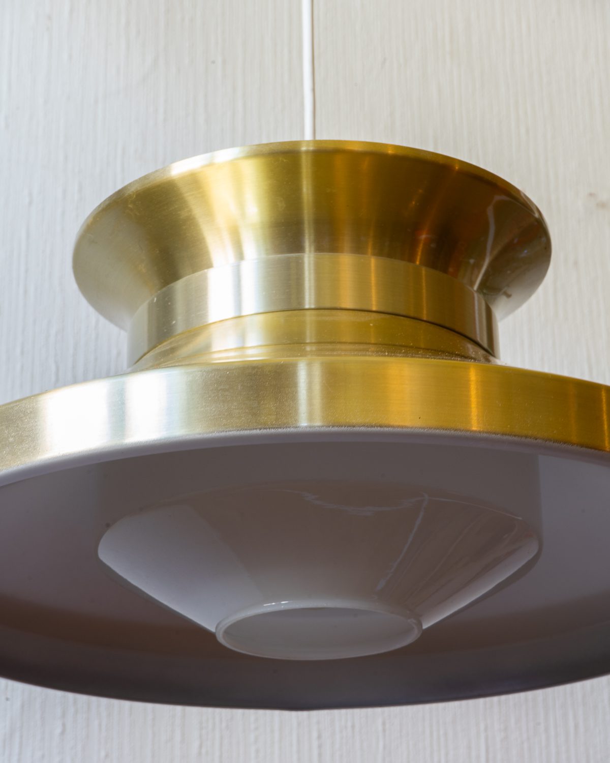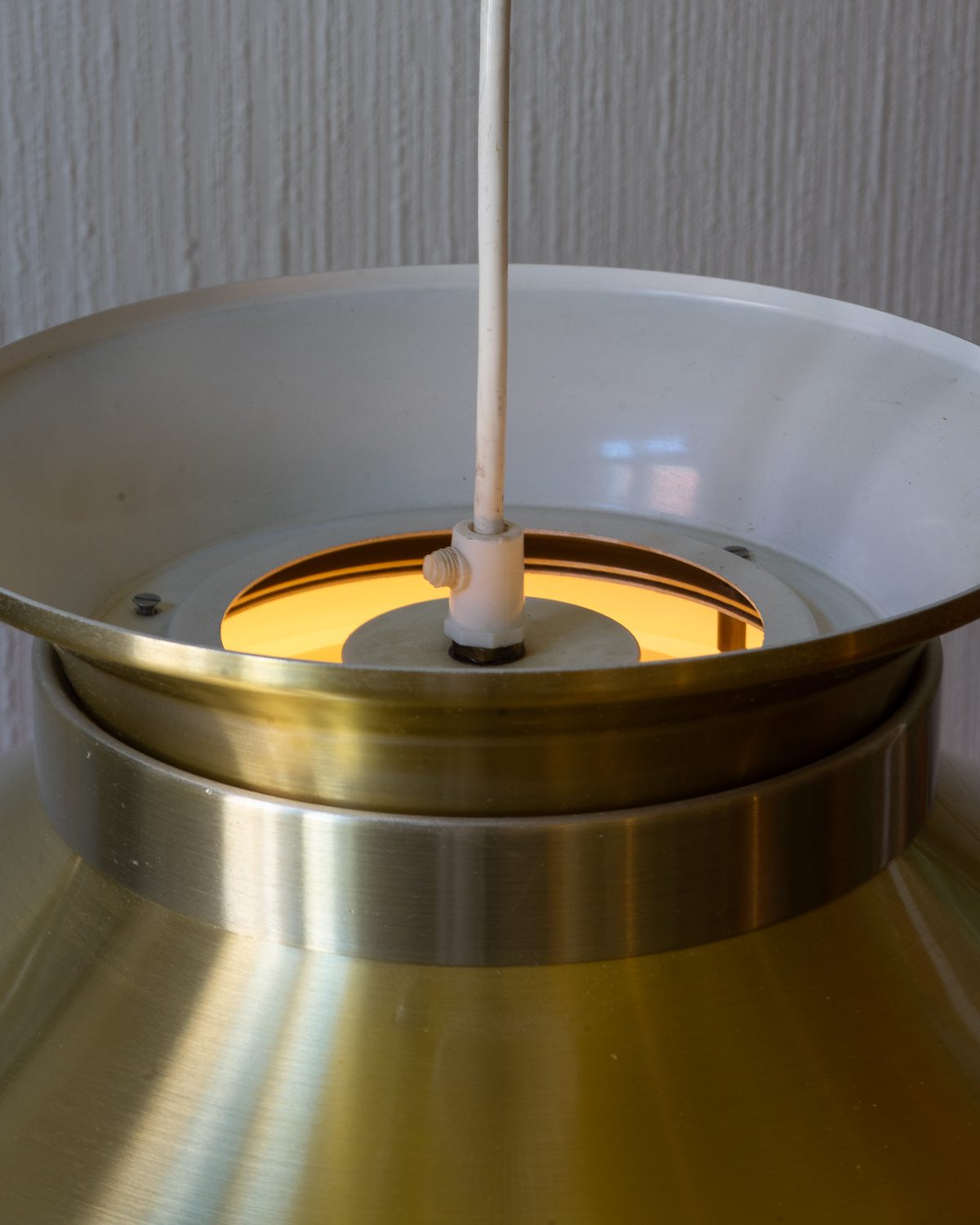 Taani valgustidisaineri Carl Thore metallist kuldse kupli ja klaasist sisekupliga stiilipuhas laevalgusti 1960–1970ndatest. Haruldane mudel, sest üldiselt on sellel lambil plastikust difuuser, kuid sellel eksemplaril on klaasist kuppel, mis hajutab valgust. Valgustil esineb vanusele iseloomulikke pindmisi kriime, kuid üldpildis on lamp heas vintage seisukorras.