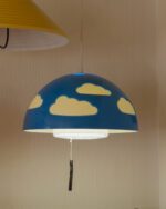 1990ndate Ikea lastesarjast pärit mängulise pilvemustriga laelamp. Sobivad hästi nii lastetuppa kui ka rõõmsameelsesse interjööri.