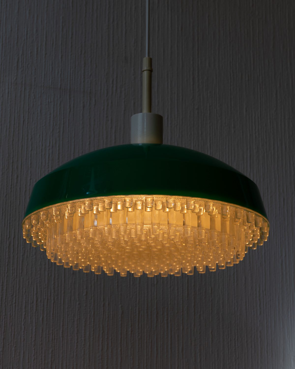 Rohelisest ja läbipaistvast plastikust efektne Space Age stiilis laevalgusti. Valgustil esineb vanusele iseloomulikke pindmisi kriime, kuid üldpildis on lamp heas korras ning säilitanud oma ajastutruu ja futuristliku välimuse. Tootja teadmata.
