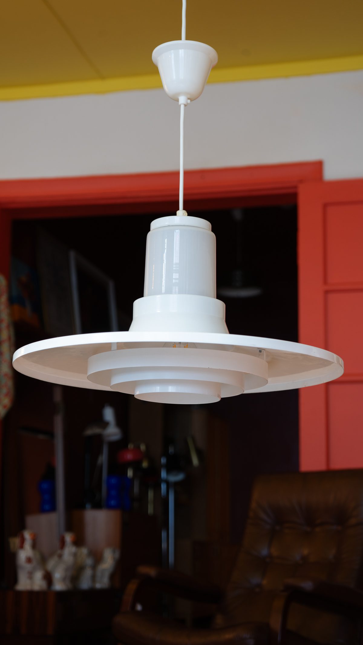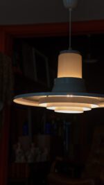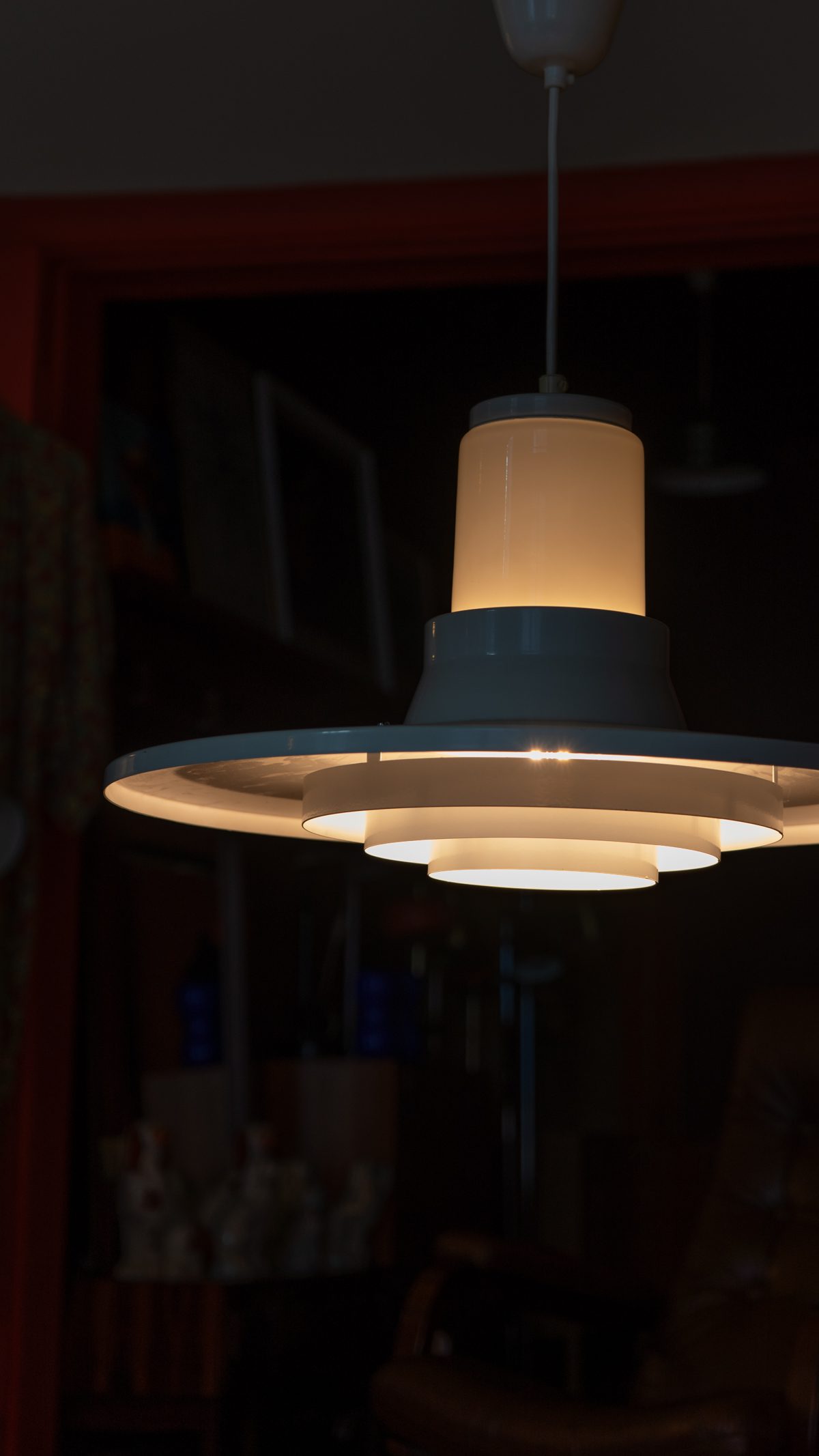 Metallist mitmekorruseline laelamp Soome tootjalt Valinte, eelmise sajandi lõpust. Läbimõõt 47 cm, kõrgus 27 cm.