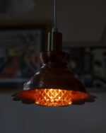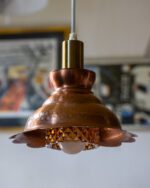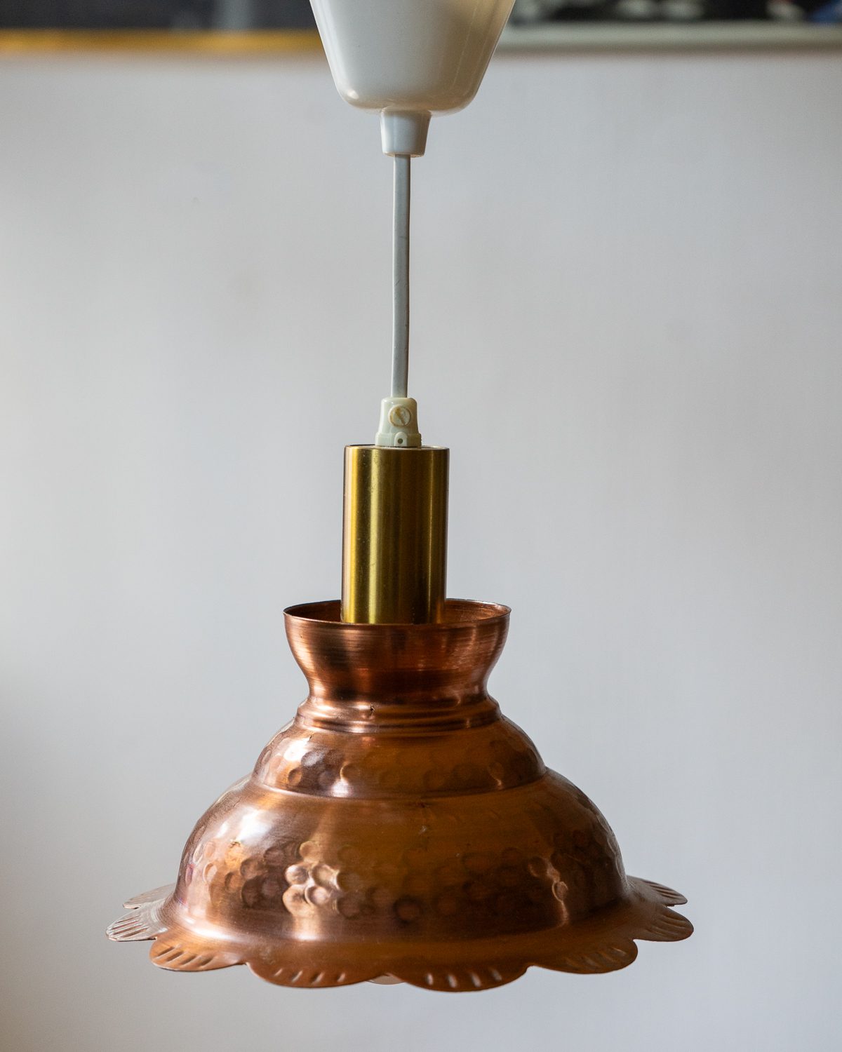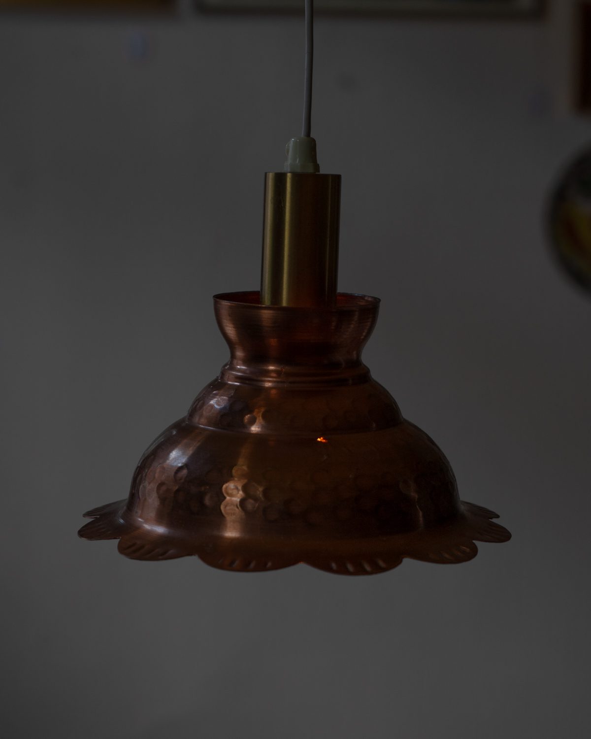 Tõenäoliselt skandinaavia päritolu ja 20. sajandi keskpaigast pärinev väike, kuid isikupärane laelamp. Valgusti kuppel on valmistatud vasest, mille serva ehib tagutud muster. Lambi südames on mustriga klaasist kuppel. Lamp on heas vintage seisukorras, kuid vasest osas on väike auguke (vt pilti).